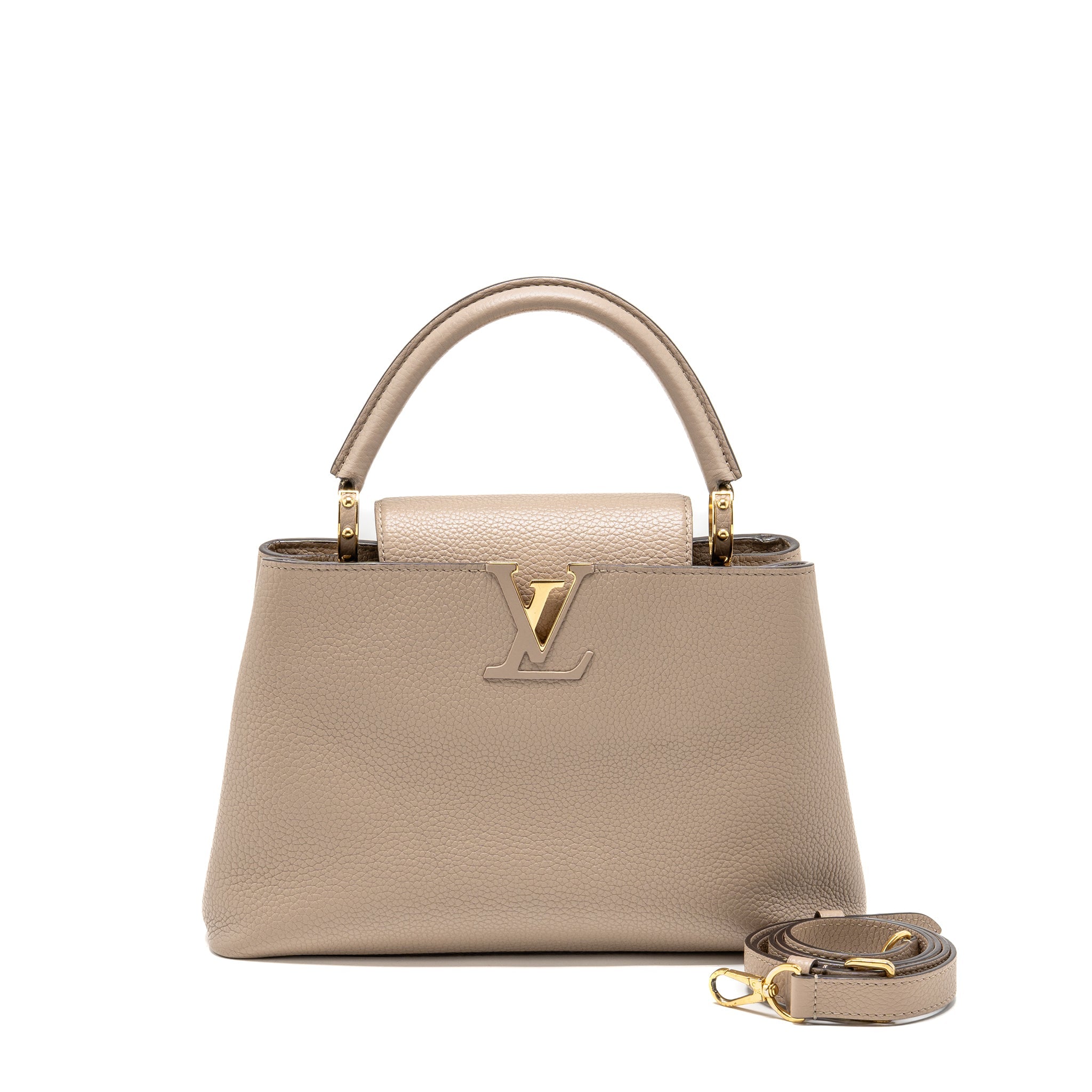 LOUIS VUITTON CAPUCINES MM TAURILLON LEATHER LIGHT GREY GHW
