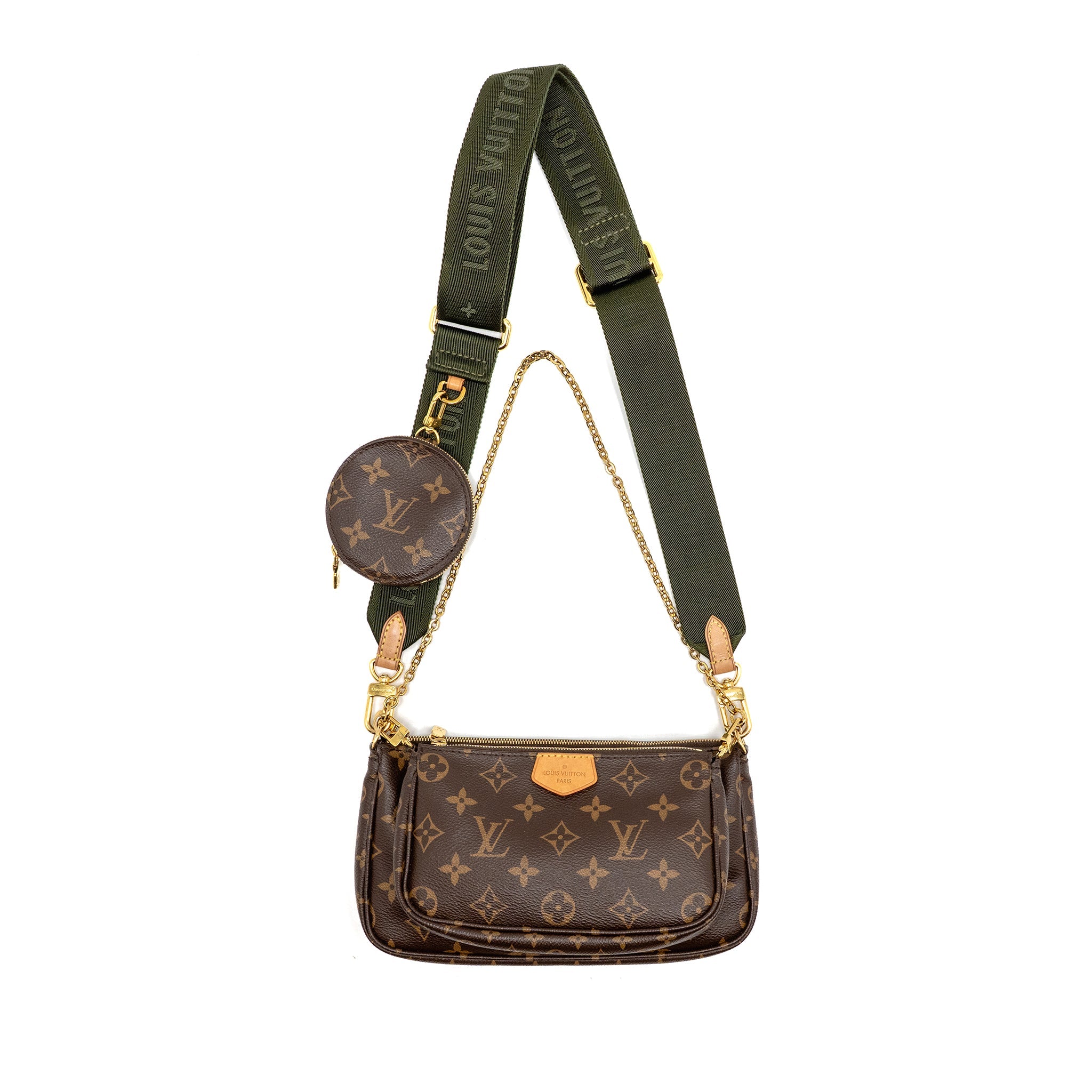 LOUIS VUITTON MULTI POCHETTE ACCESSORIES MONOGRAM CANVAS KHAKI STRAP GHW