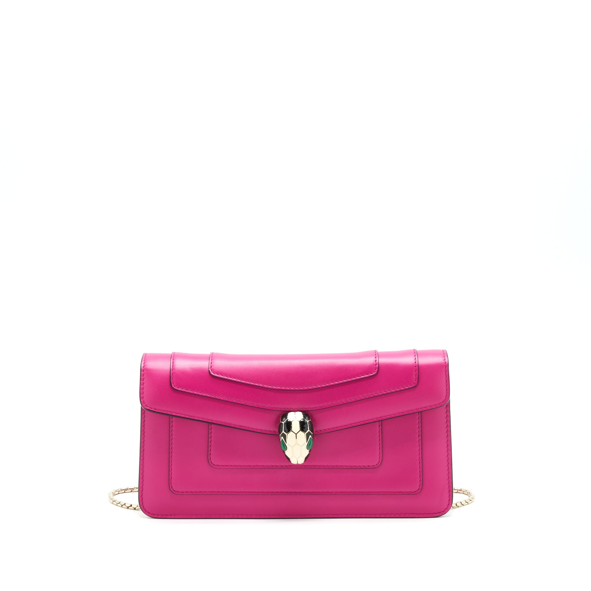 BVLGARI SERPENTI FOREVER CHAIN WALLET PATENT DARK PINK
