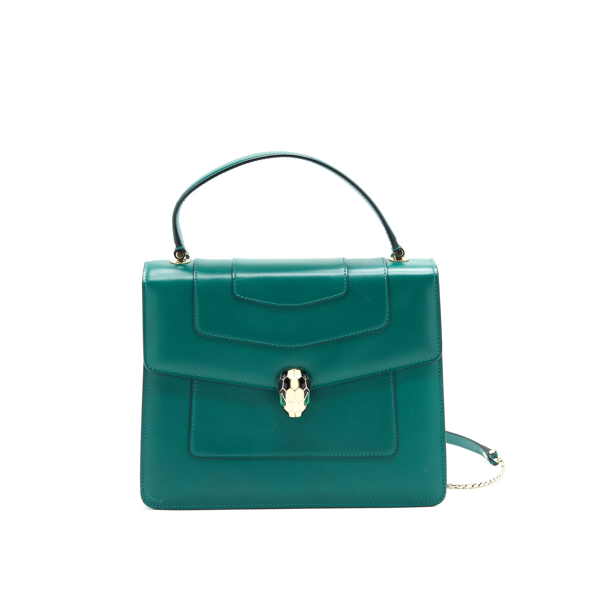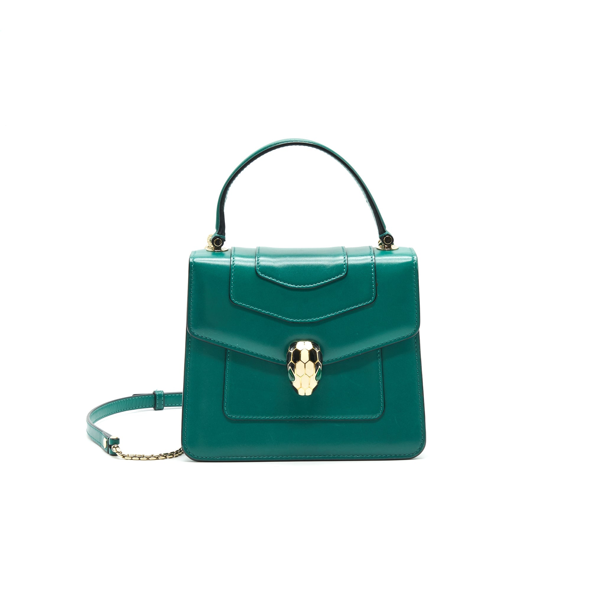 BVLGARI SERPENTI FOREVER SHOULDER BAG FOREST EMERALD GREEN SHINY KARUNG SKIN