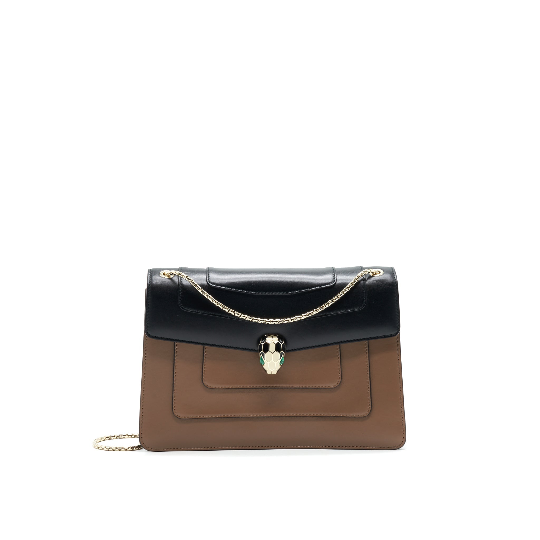 BVLGARI SERPENTI FOREVER SHOULDER BAG IN DARK BEIGE AND BLACK