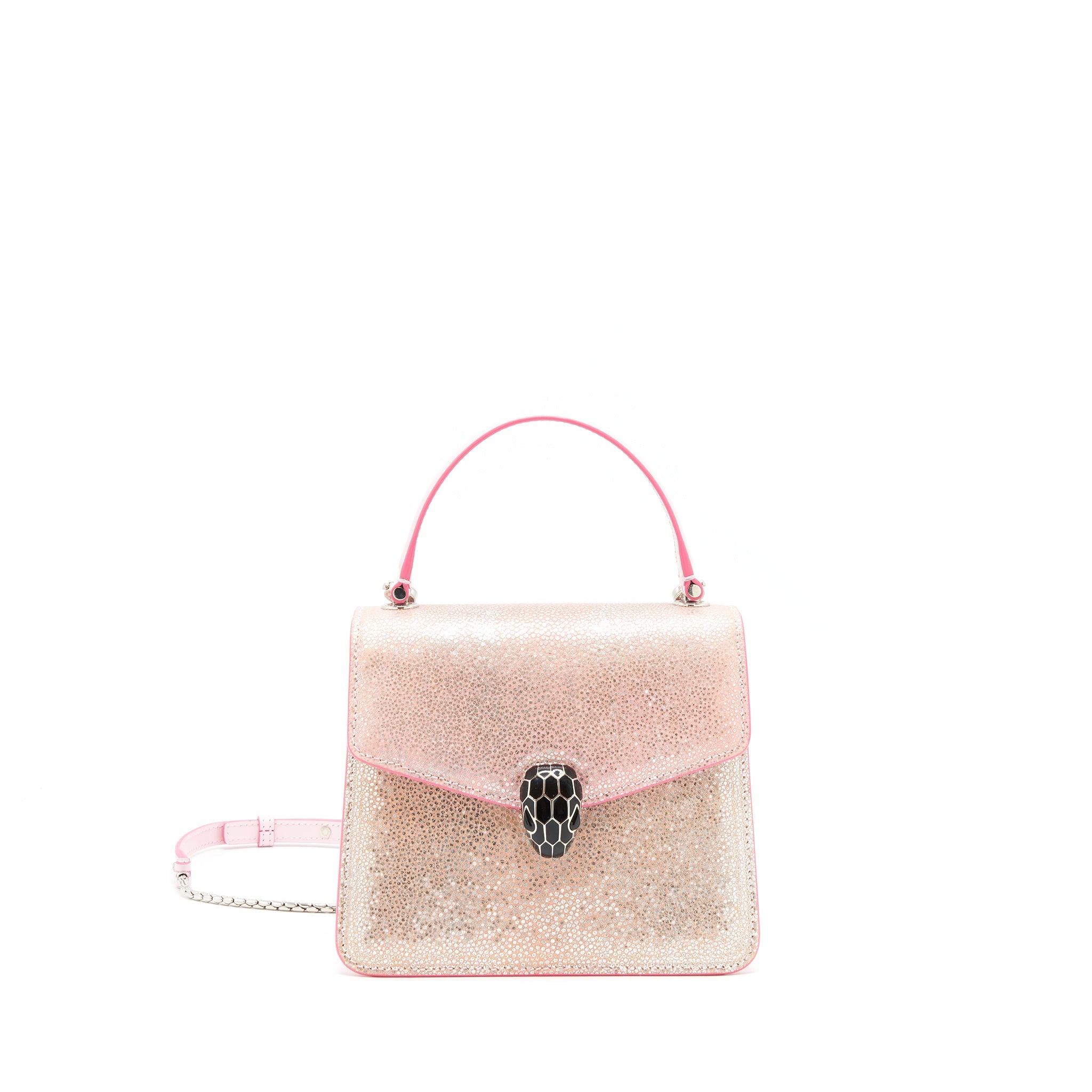 BVLGARI SERPENTI FOREVER TOP HANDLE IN ROSA DI FRANCIA CRYSTAL GALUCHAT SHW