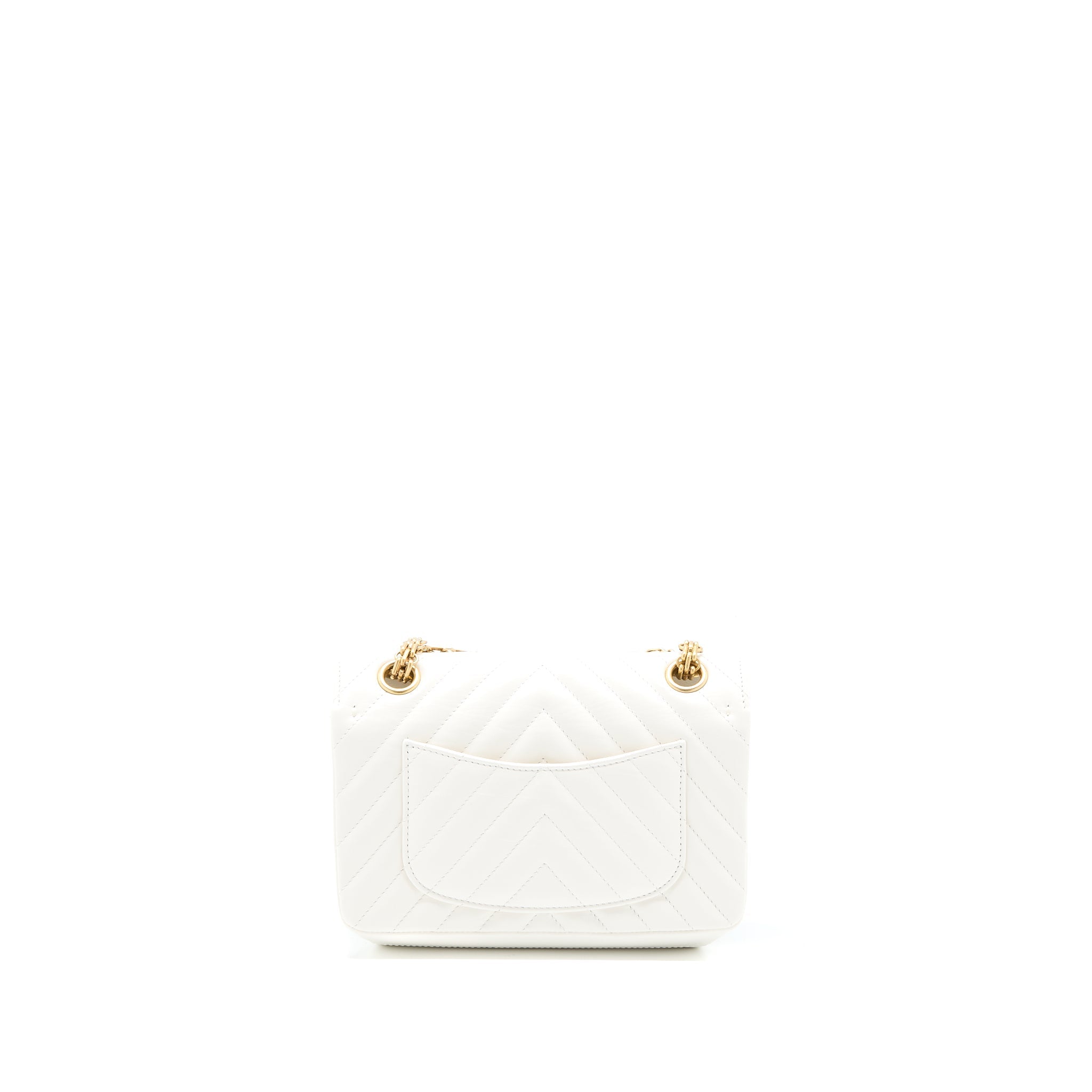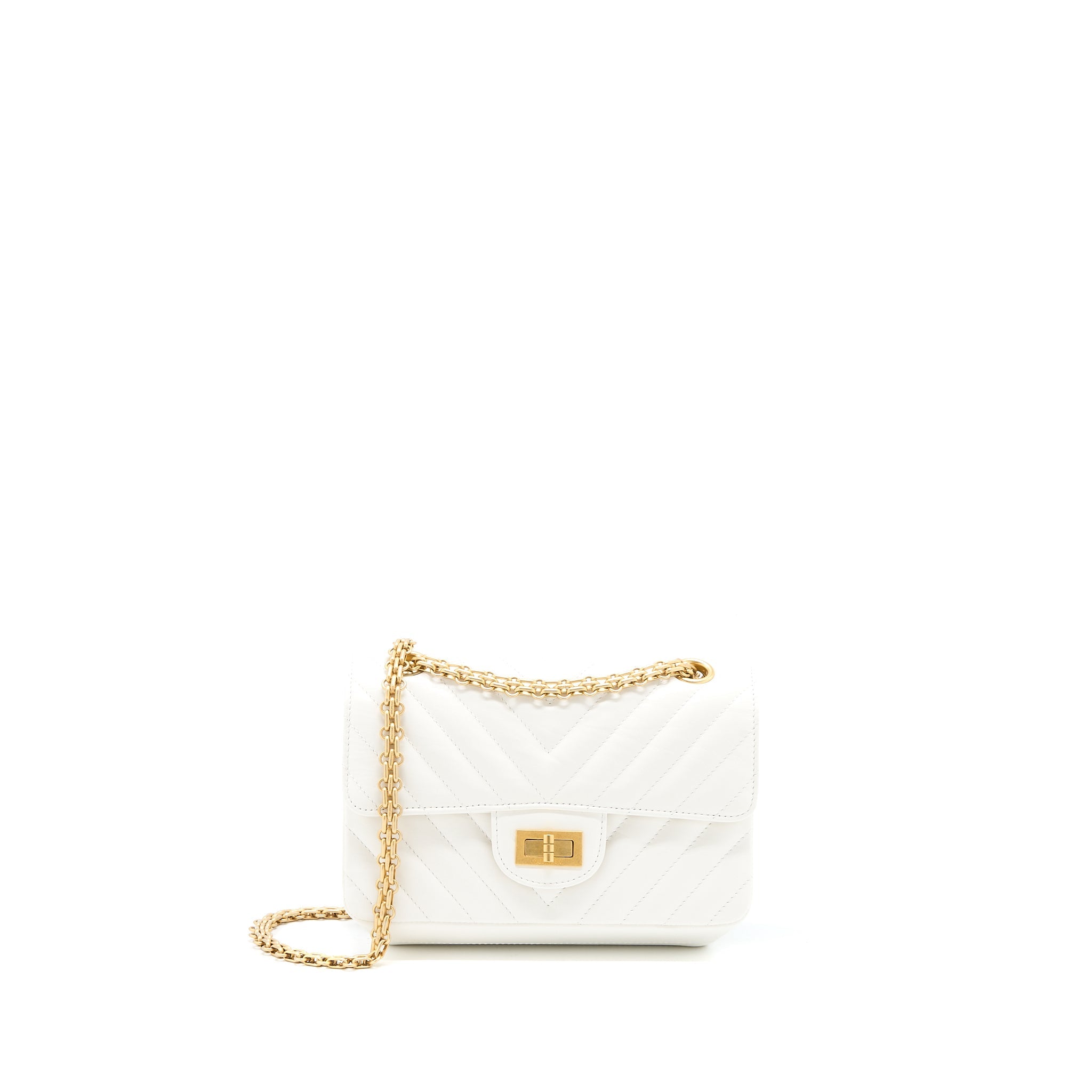 CHANEL MINI 2.55 REISSUE CHEVRON FLAP BAG AGED CALFSKIN WHITE BRUSHED GHW (MICROCHIP)