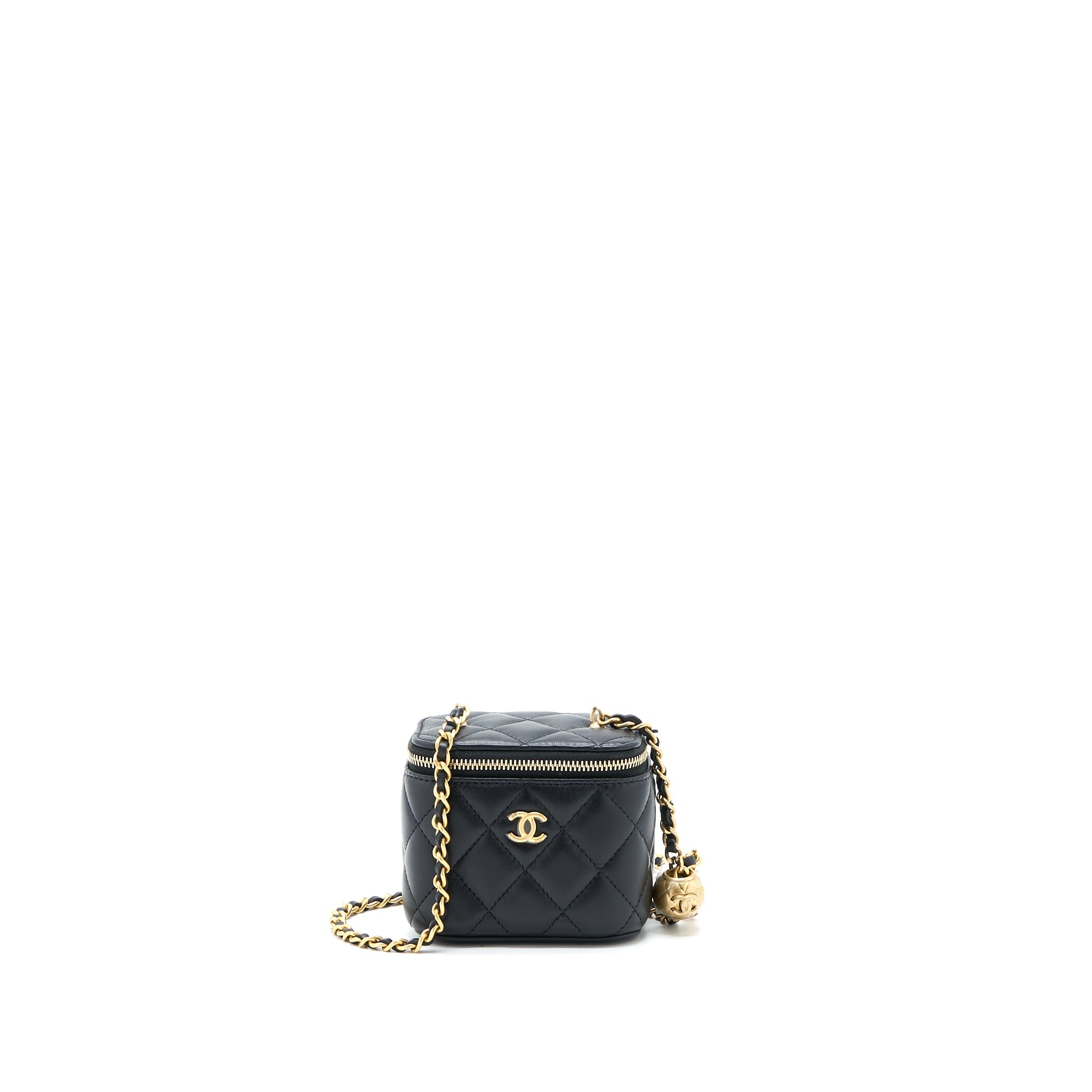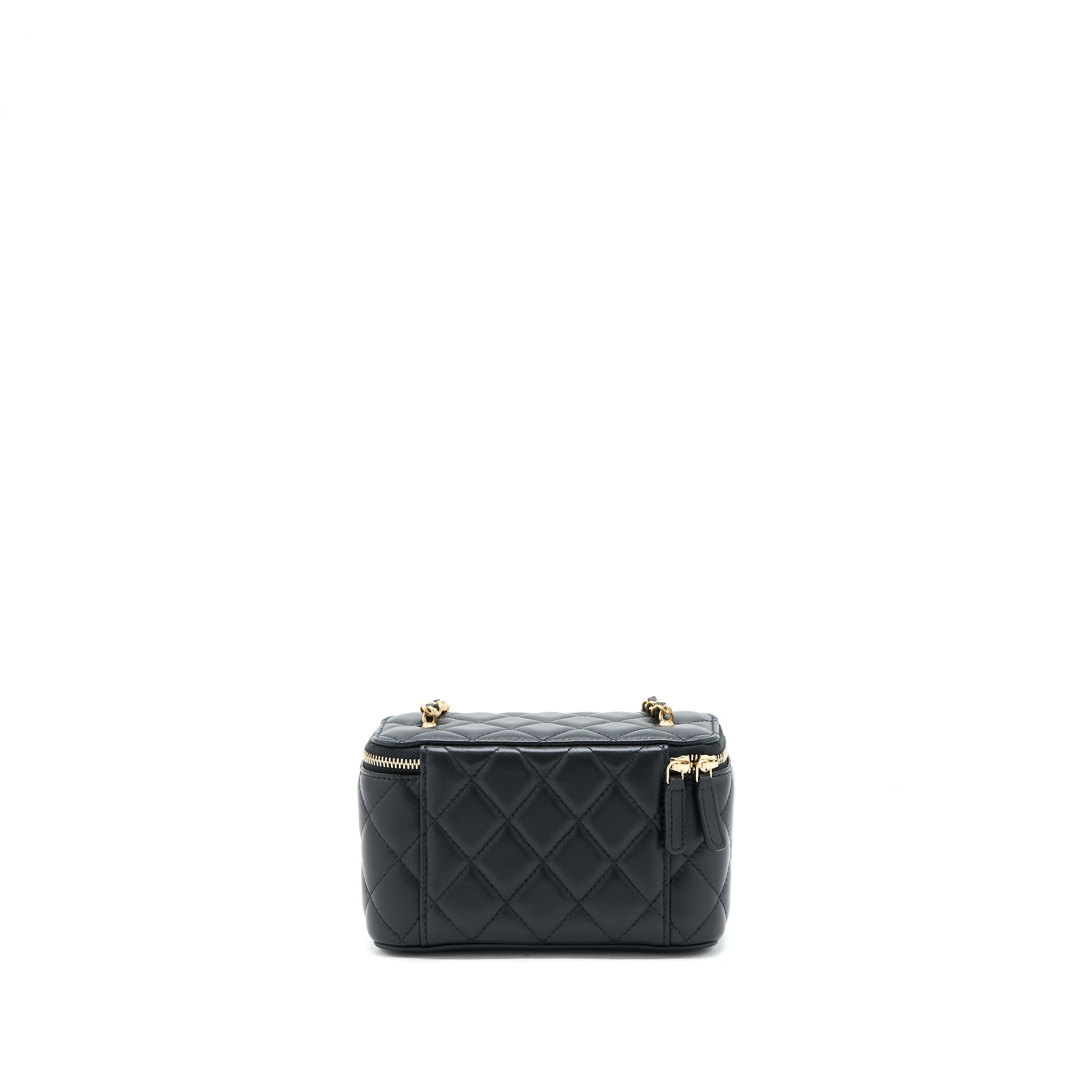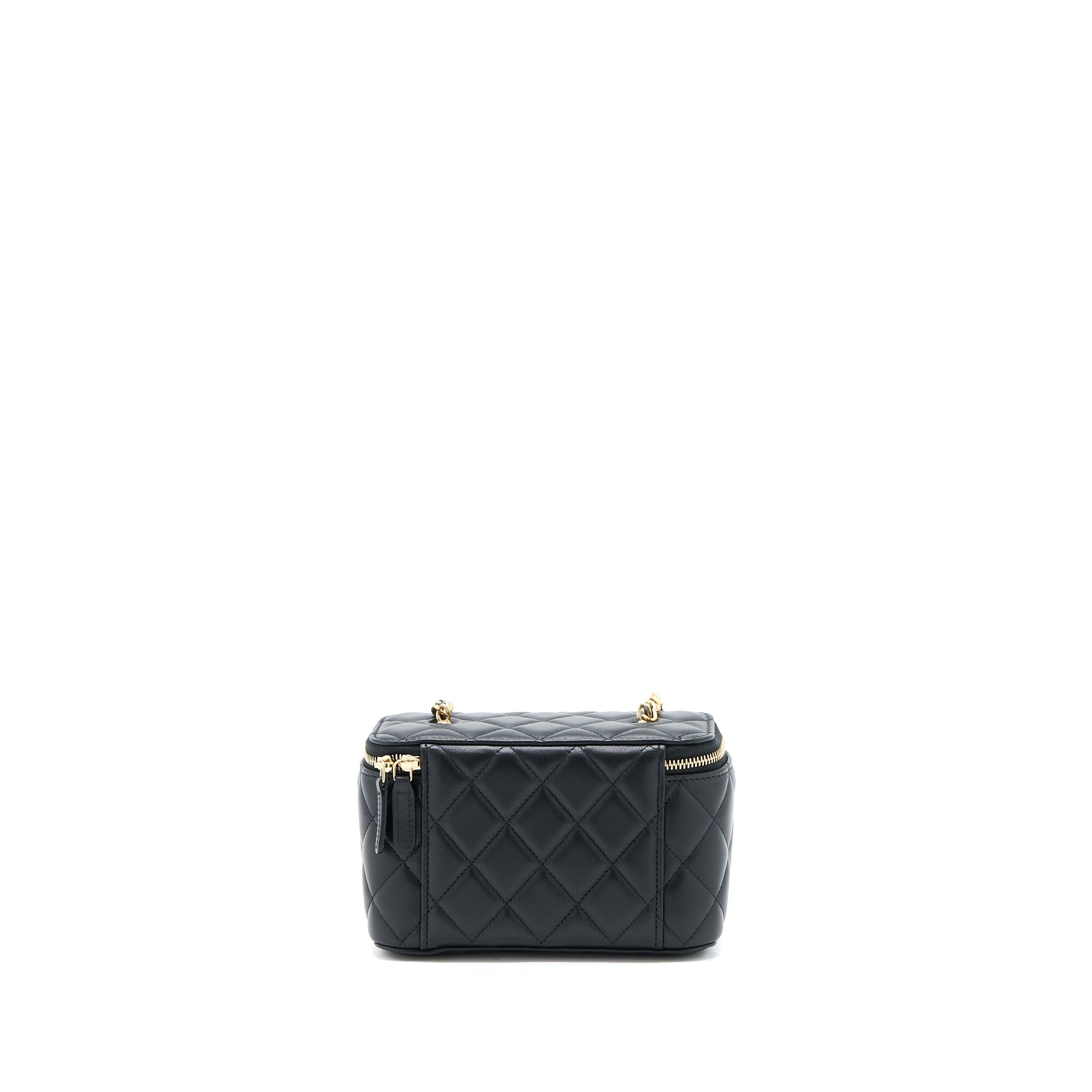CHANEL PEARL CRUSH MINI VANITY WITH CHAIN LAMBSKIN BLACK GHW (MICROCHIP)
