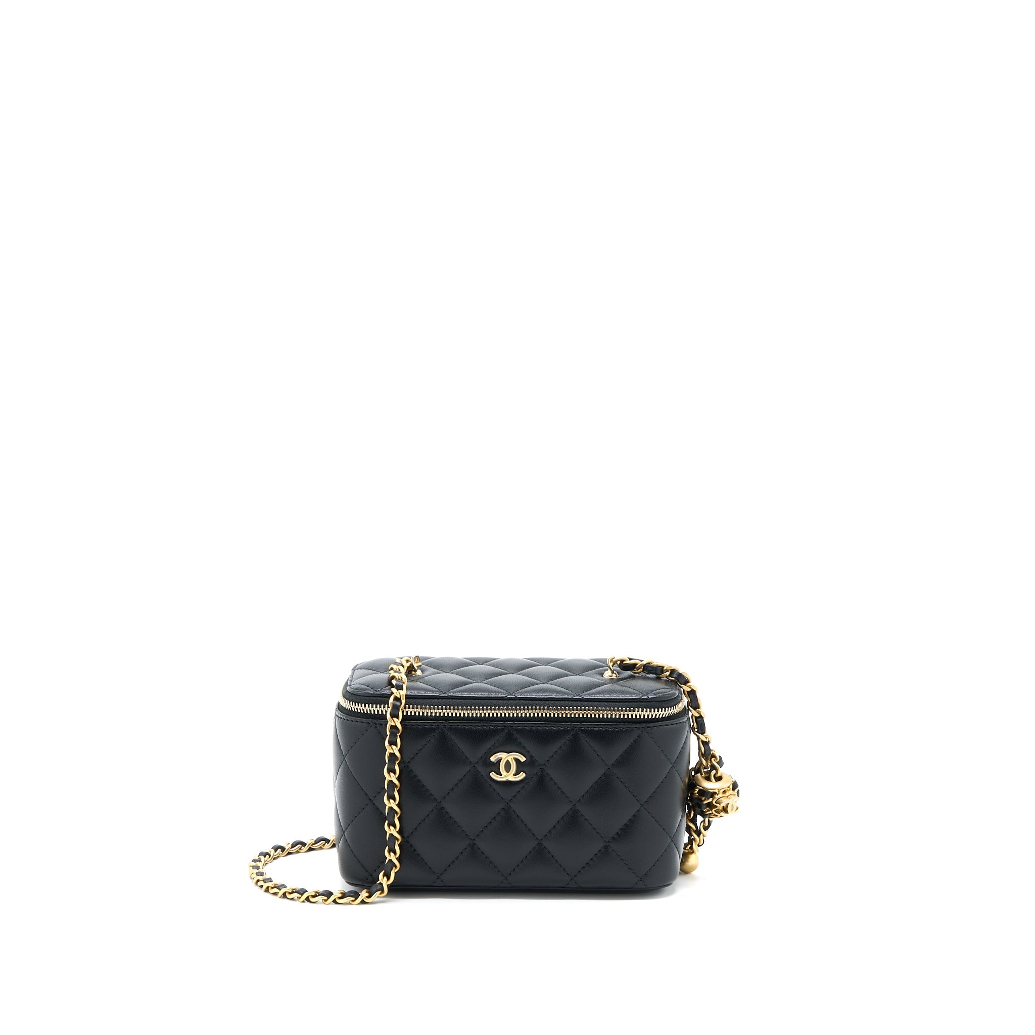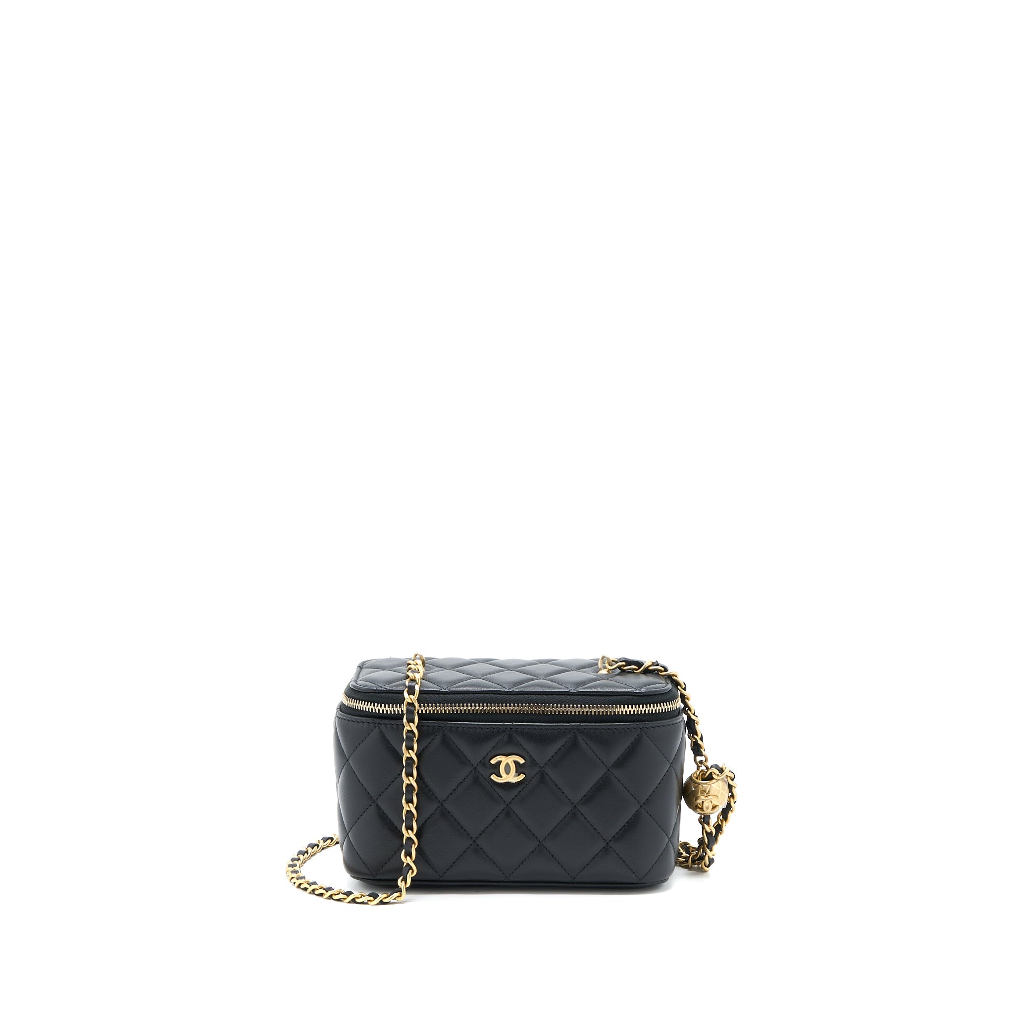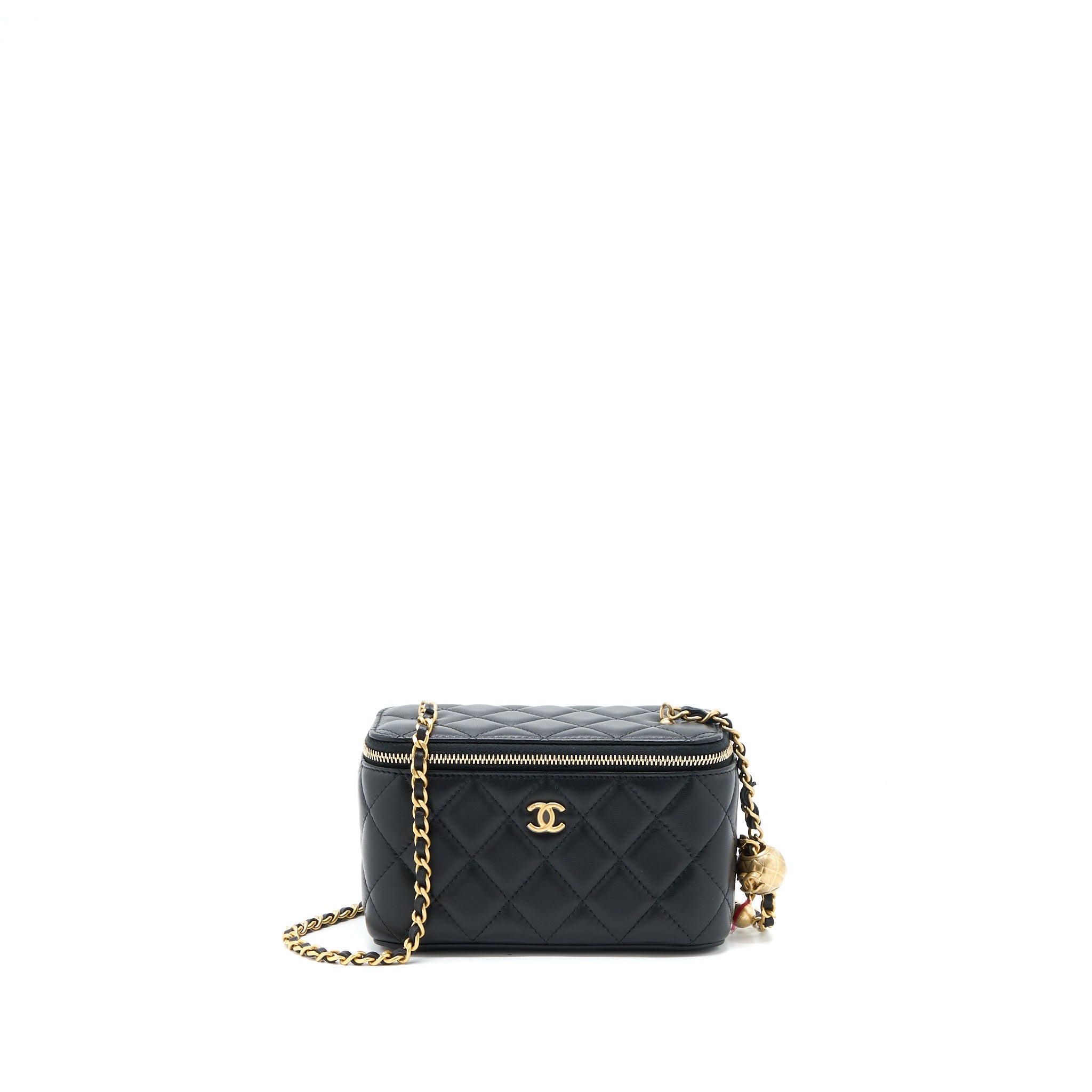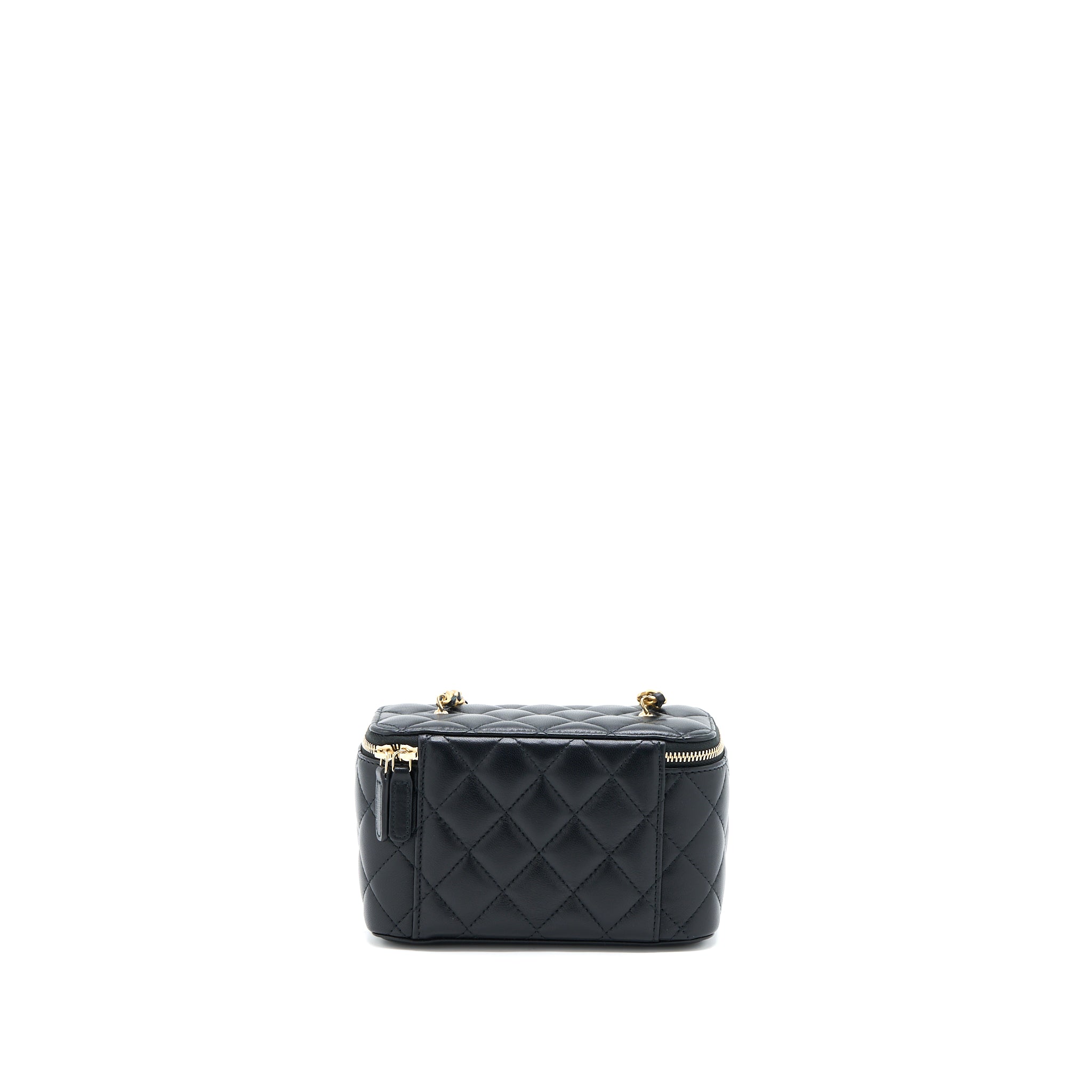 CHANEL PEARL CRUSH MINI VANITY WITH CHAIN LAMBSKIN BLACK GHW (MICROCHIP)