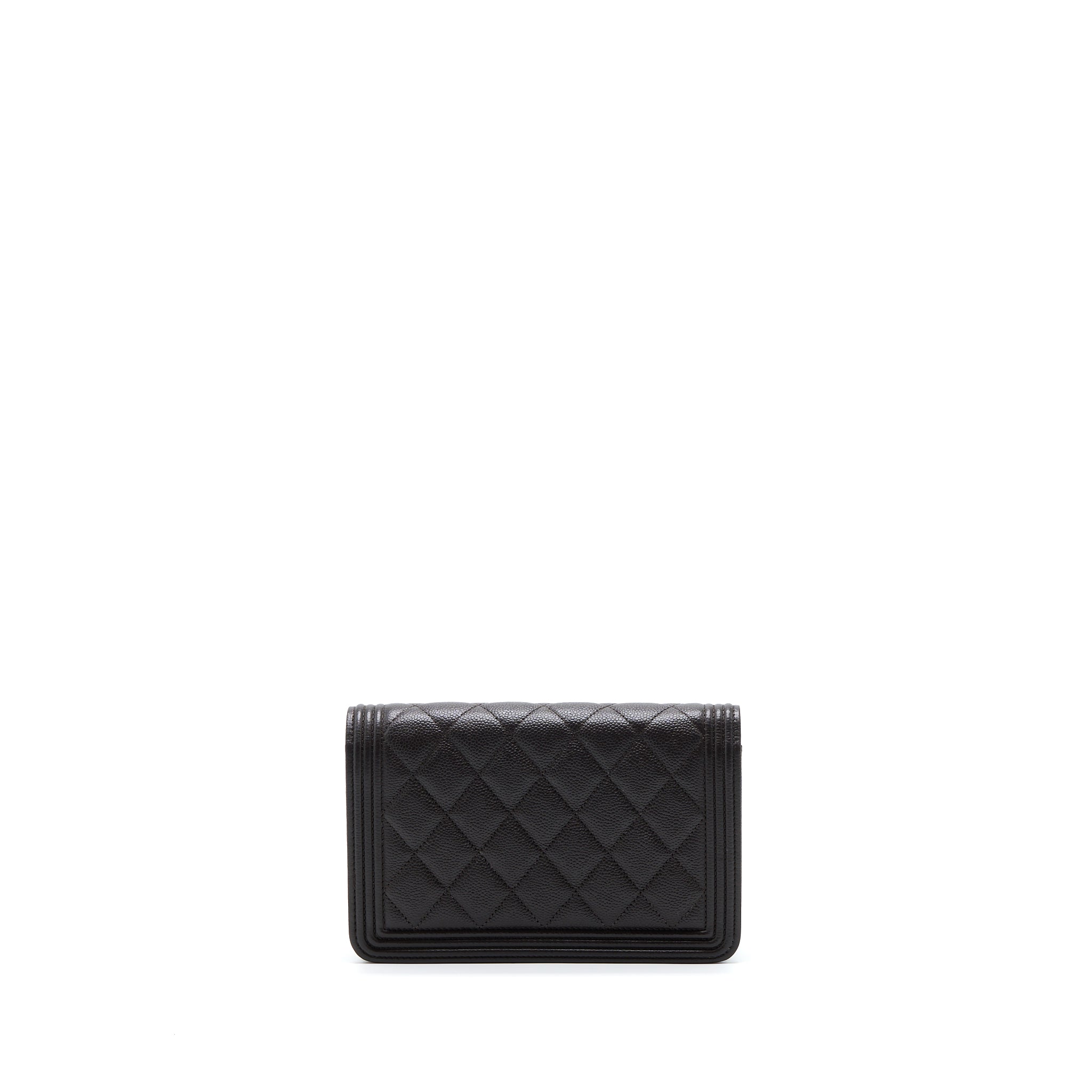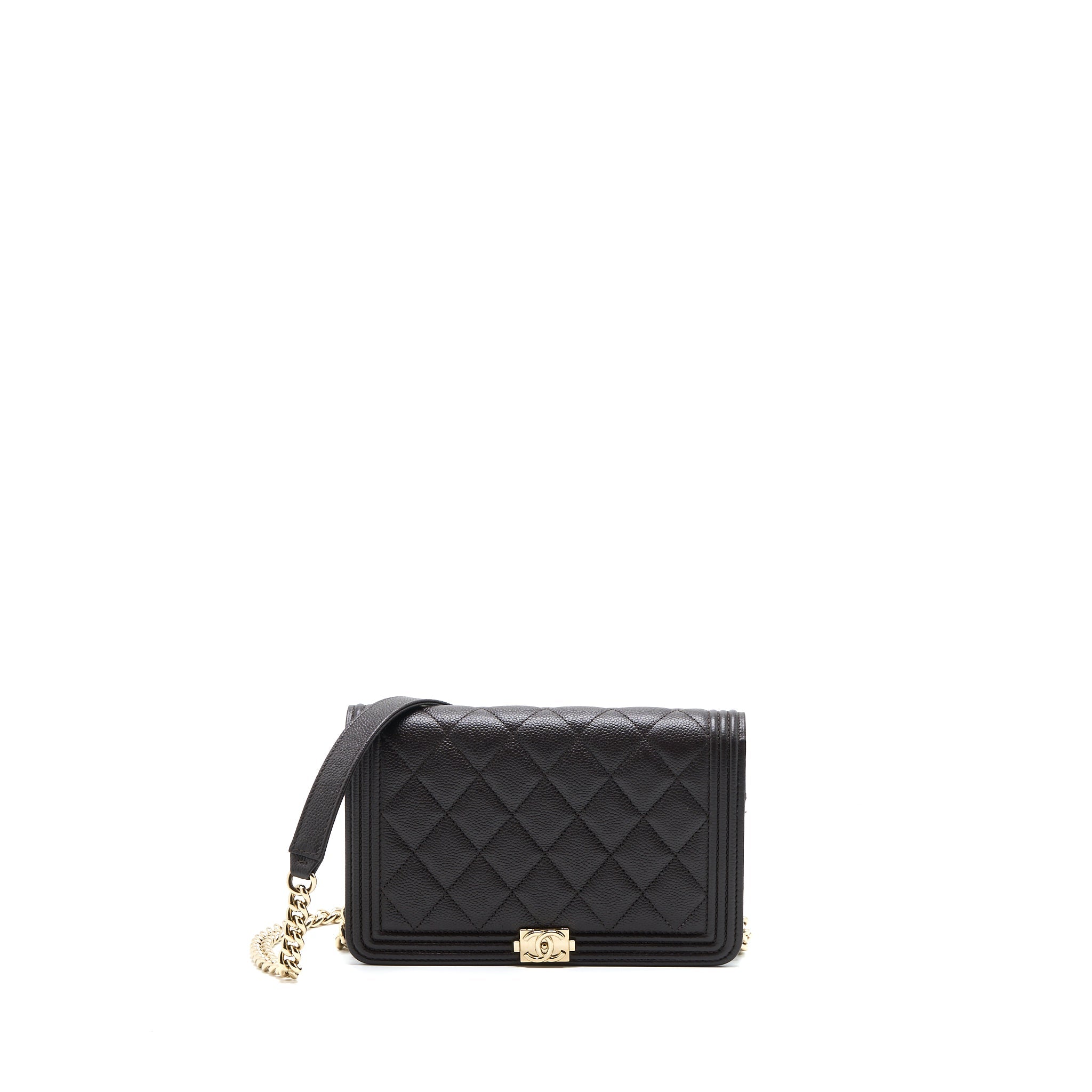 CHANEL BOY WALLET ON CHAIN GRAINED CALFSKIN BROWN LGHW (MICROCHIP)