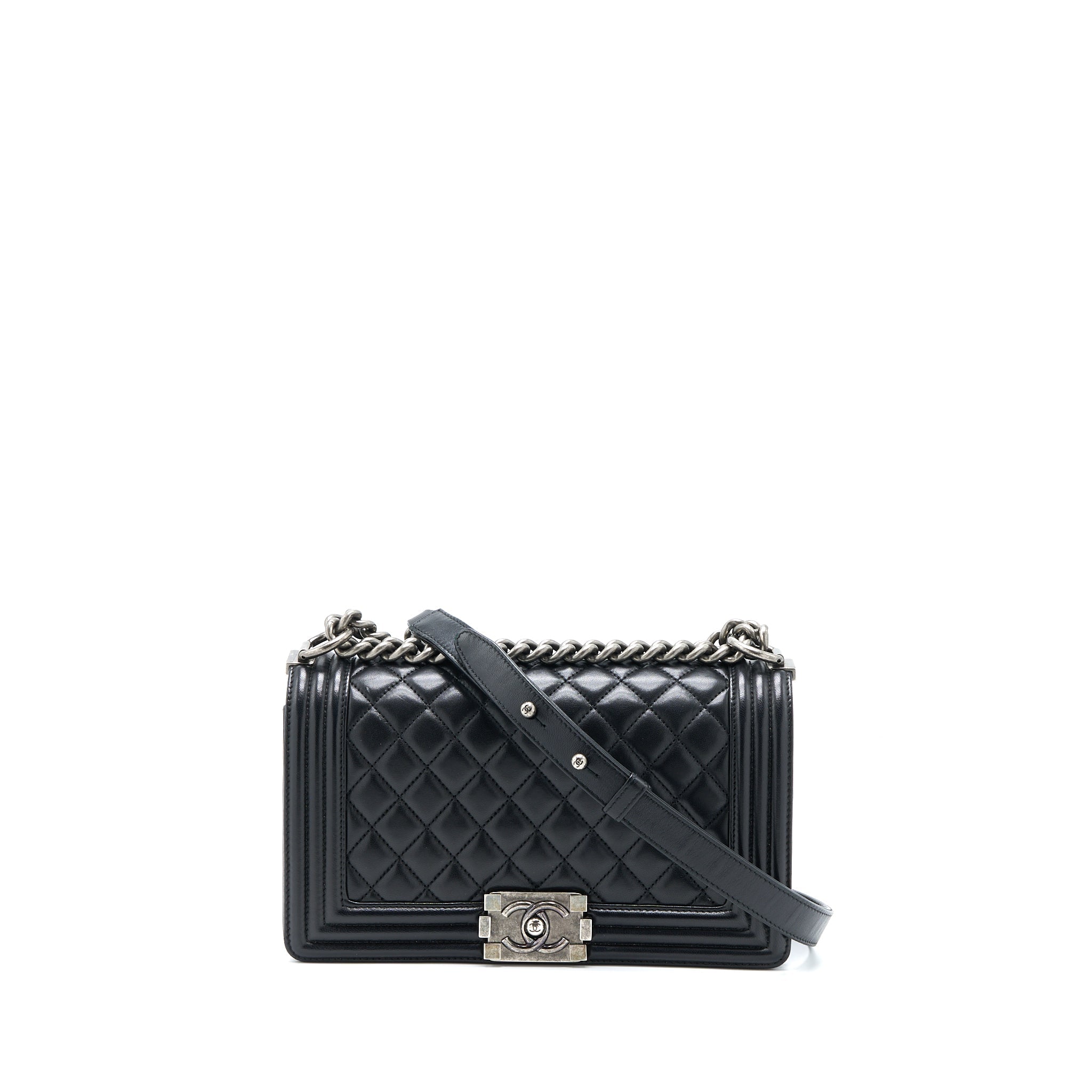 CHANEL MEDIUM BOY BAG LAMBSKIN BLACK RUTHENIUM SHW
