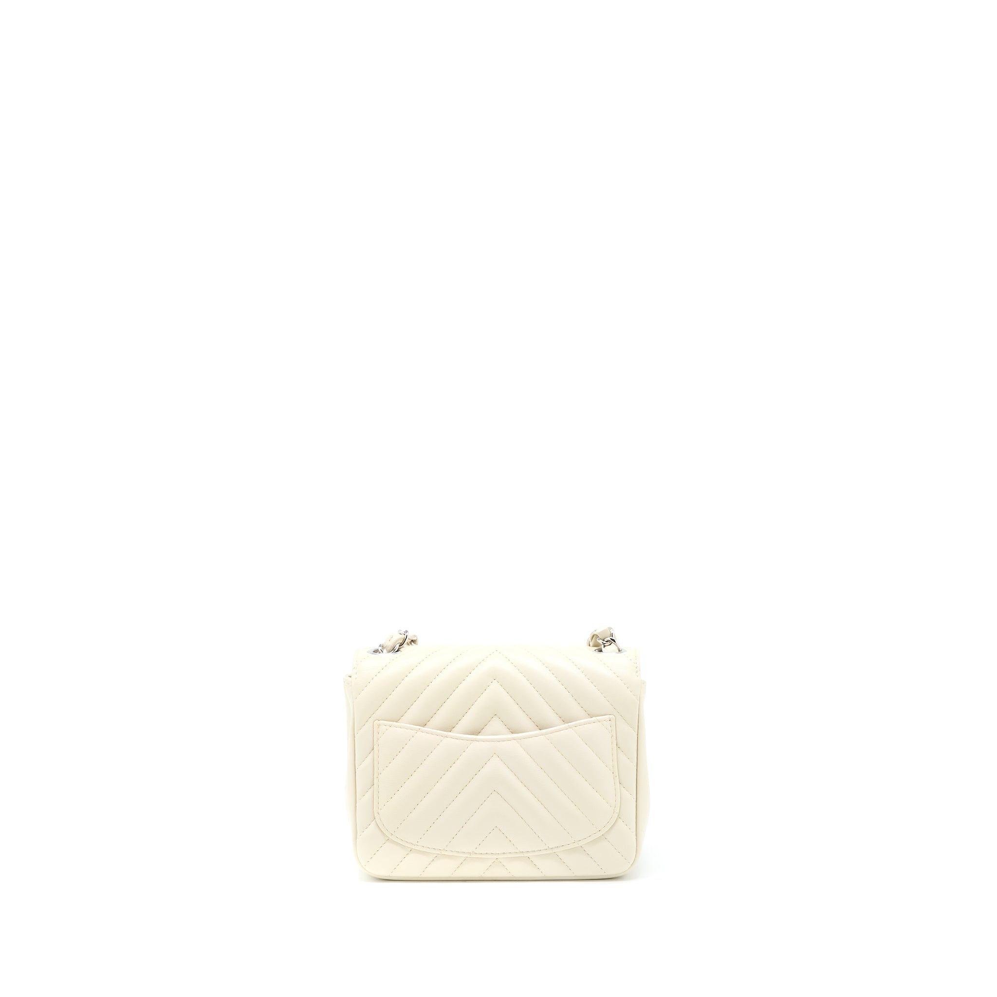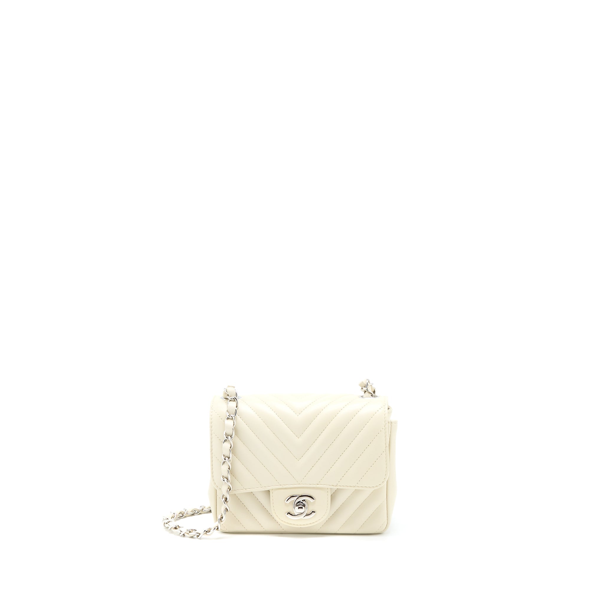 CHANEL 21C MINI SQUARE FLAP BAG CHEVRON LAMBSKIN BEIGE SHW