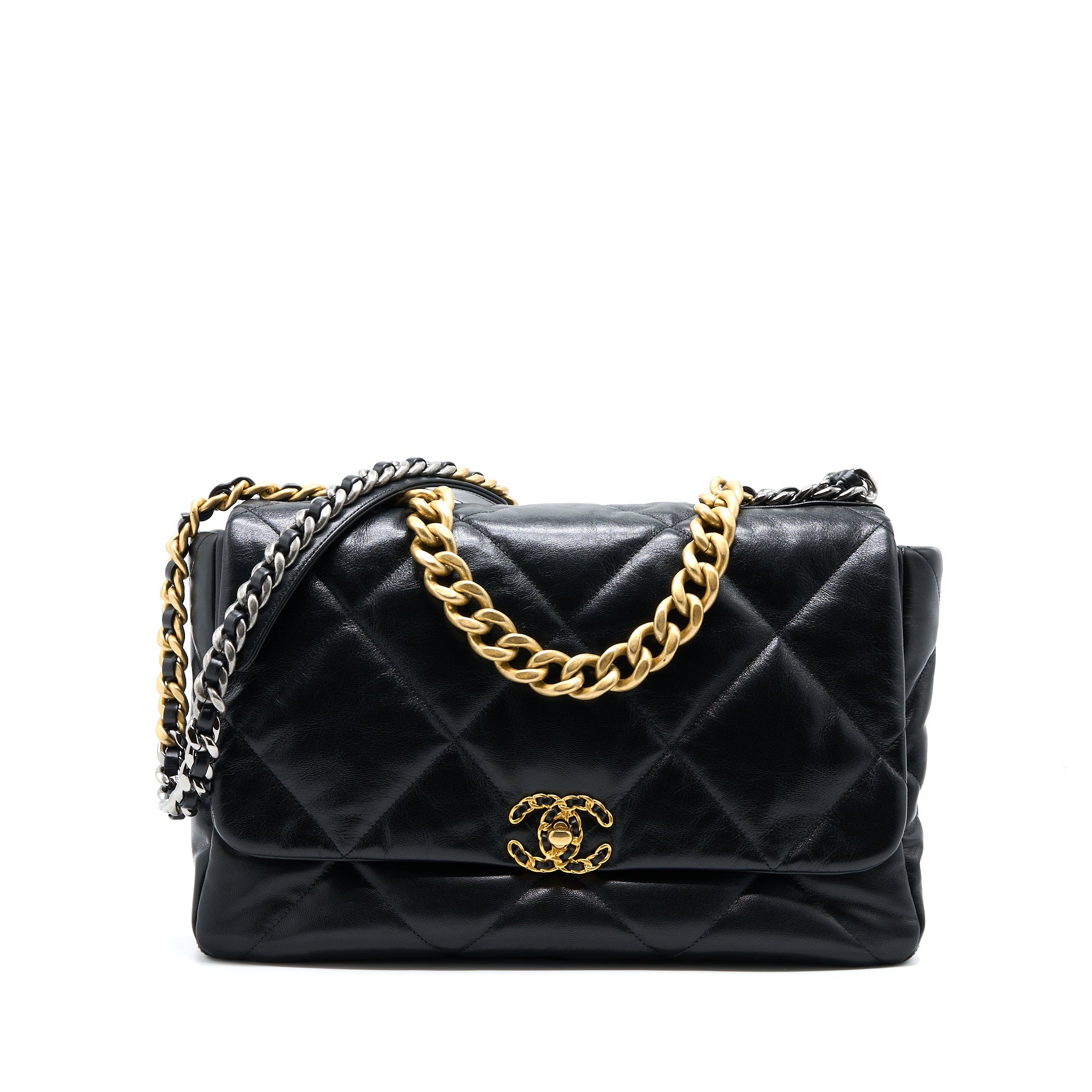 CHANEL MAXI 19 BAG GOATSKIN BLACK MULTICOLOUR HARDWARE