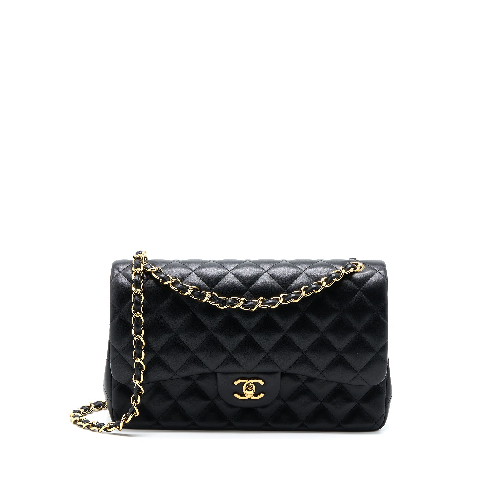 CHANEL JUMBO CLASSIC DOUBLE FLAP BAG LAMBSKIN BLACK GHW