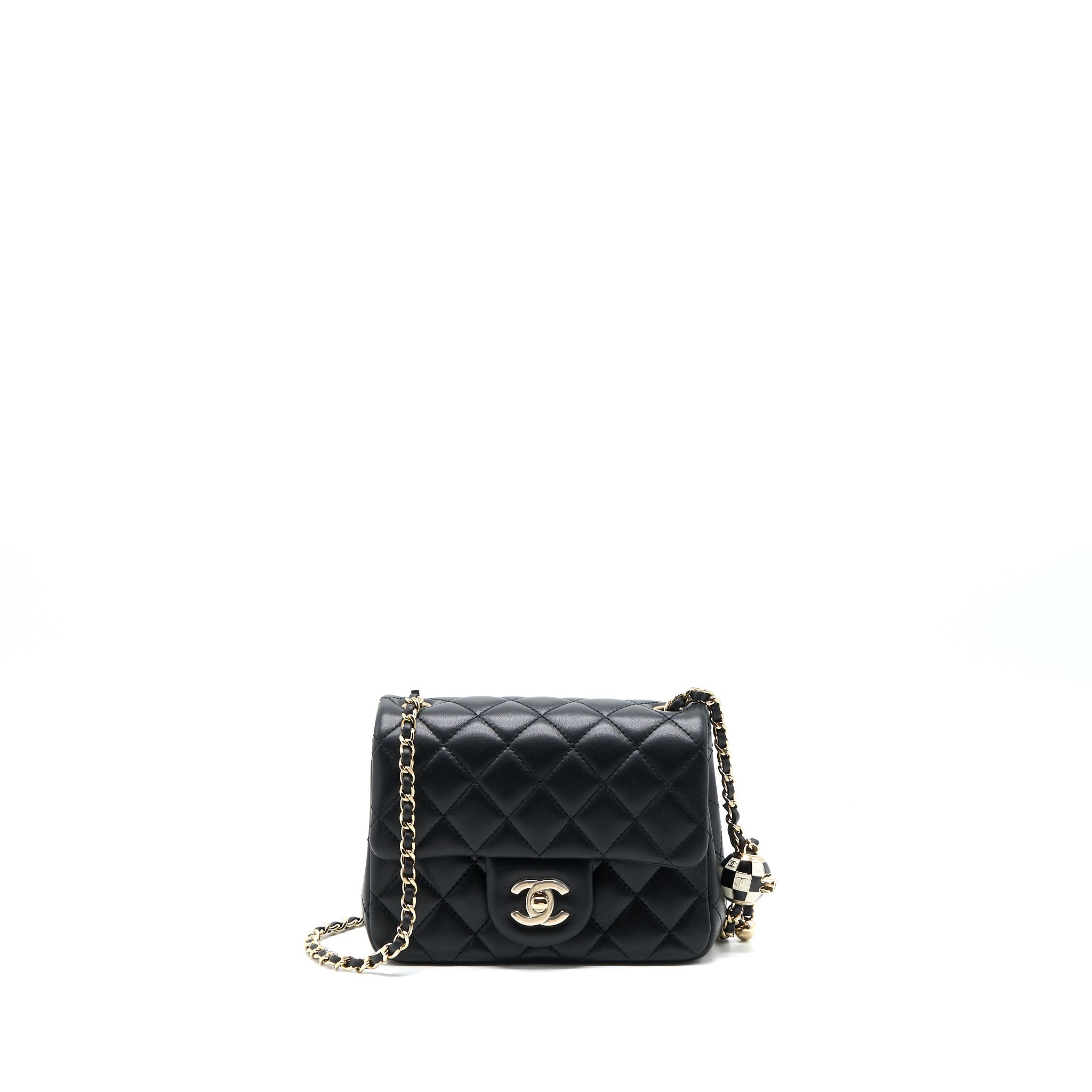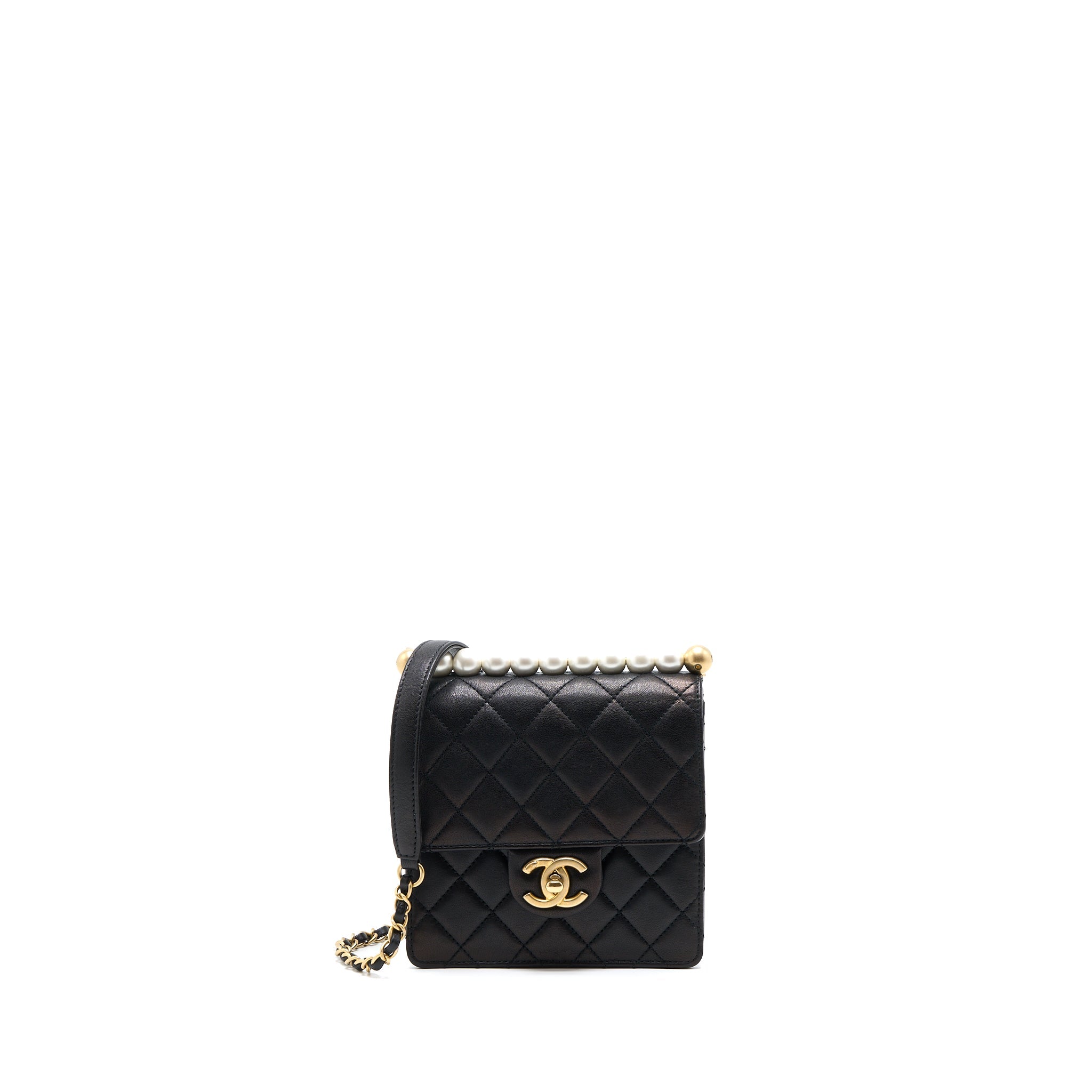 CHANEL 23C PEARL CRUSH MINI SQUARE FLAP BAG LAMBSKIN BLACK LGHW (MICROCHIP)