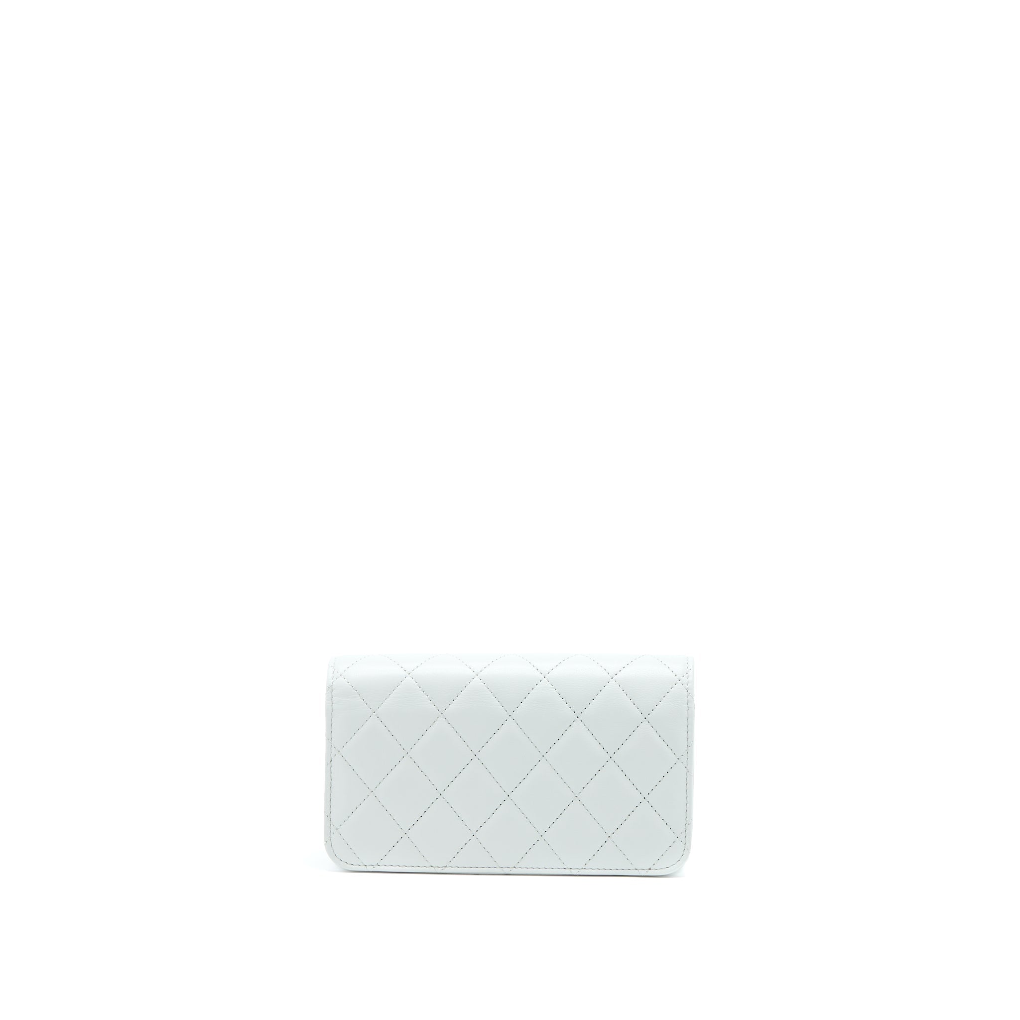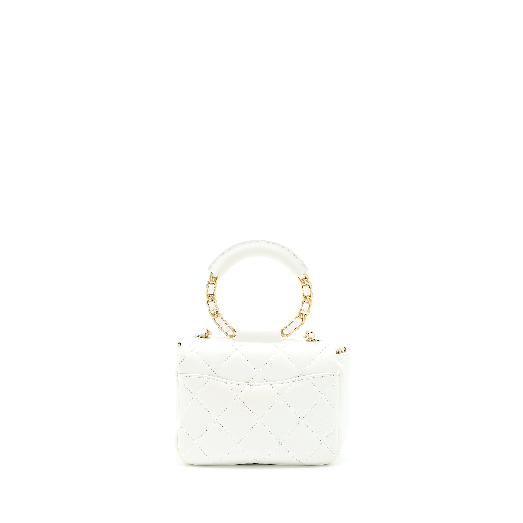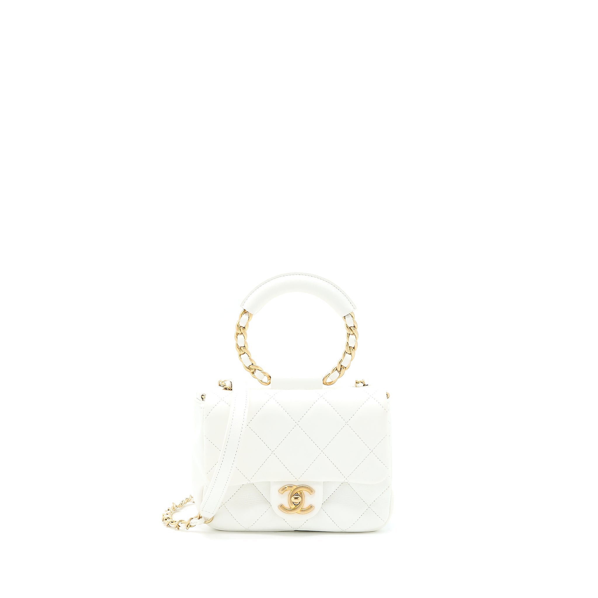 CHANEL CIRCULAR HANDLE QUILTED FLAP BAG LAMBSKIN WHITE BRUSHED GHW
