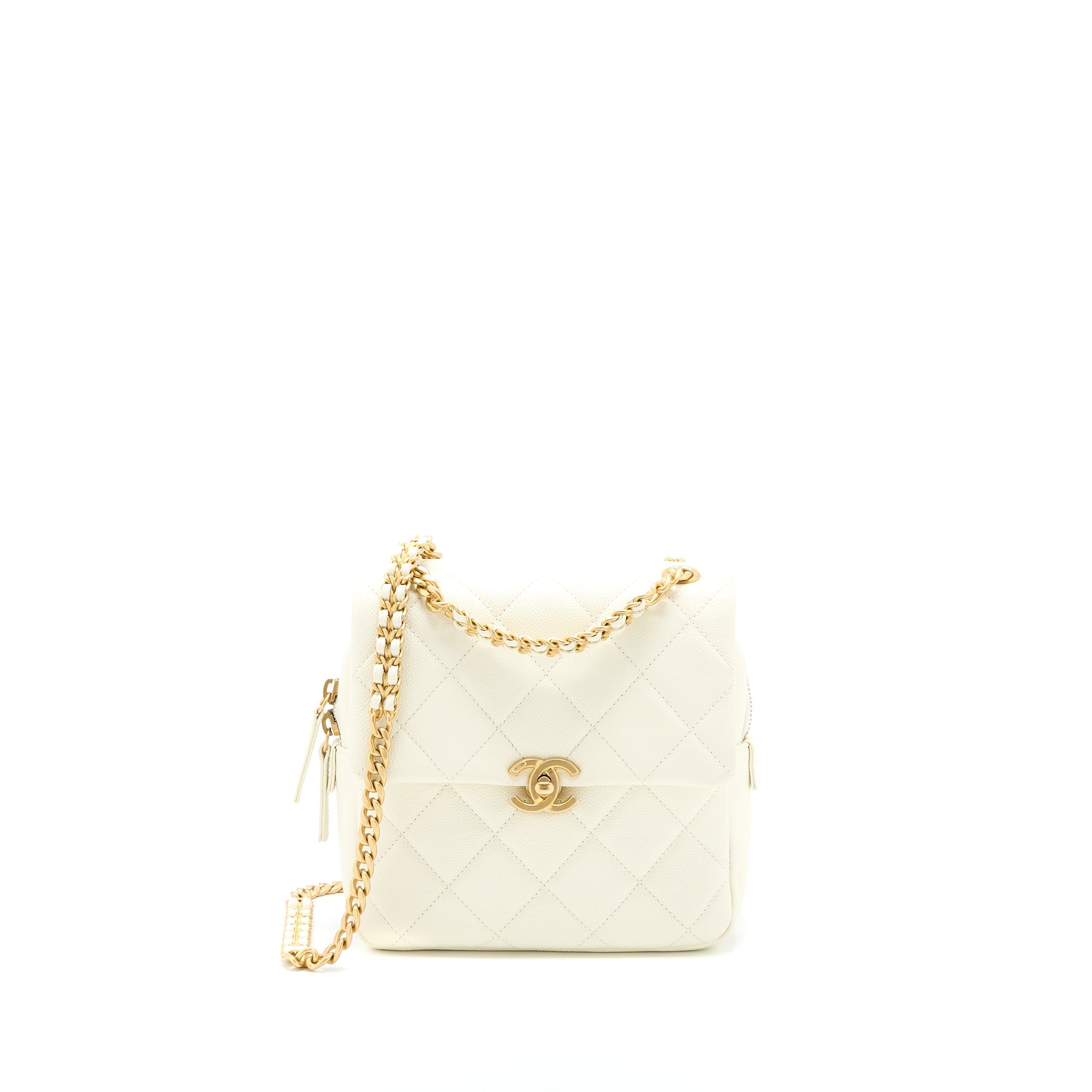 CHANEL 22P FLAP BACKPACK CAVIAR WHITE BRUSHED GHW (MICROCHIP)