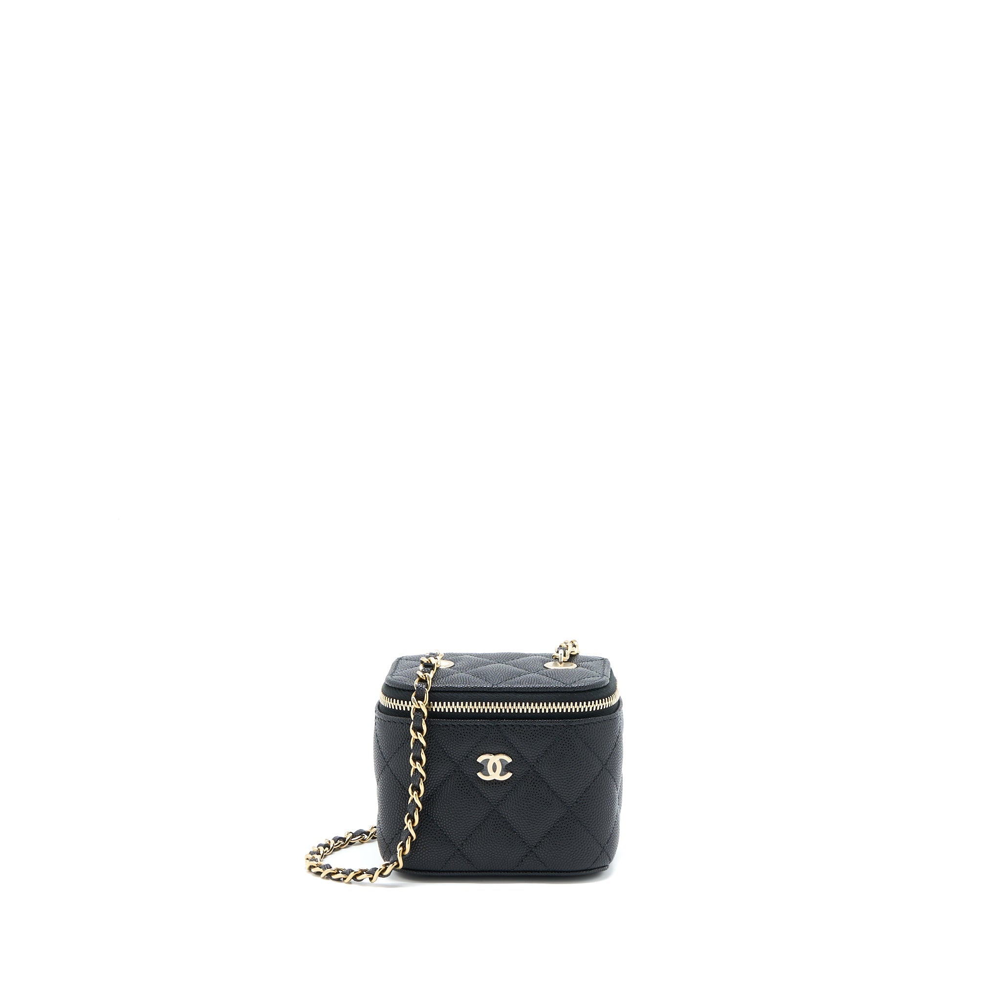 CHANEL 23C MINI VANITY WITH CHAIN CAVIAR BLACK LGHW (MICROCHIP)