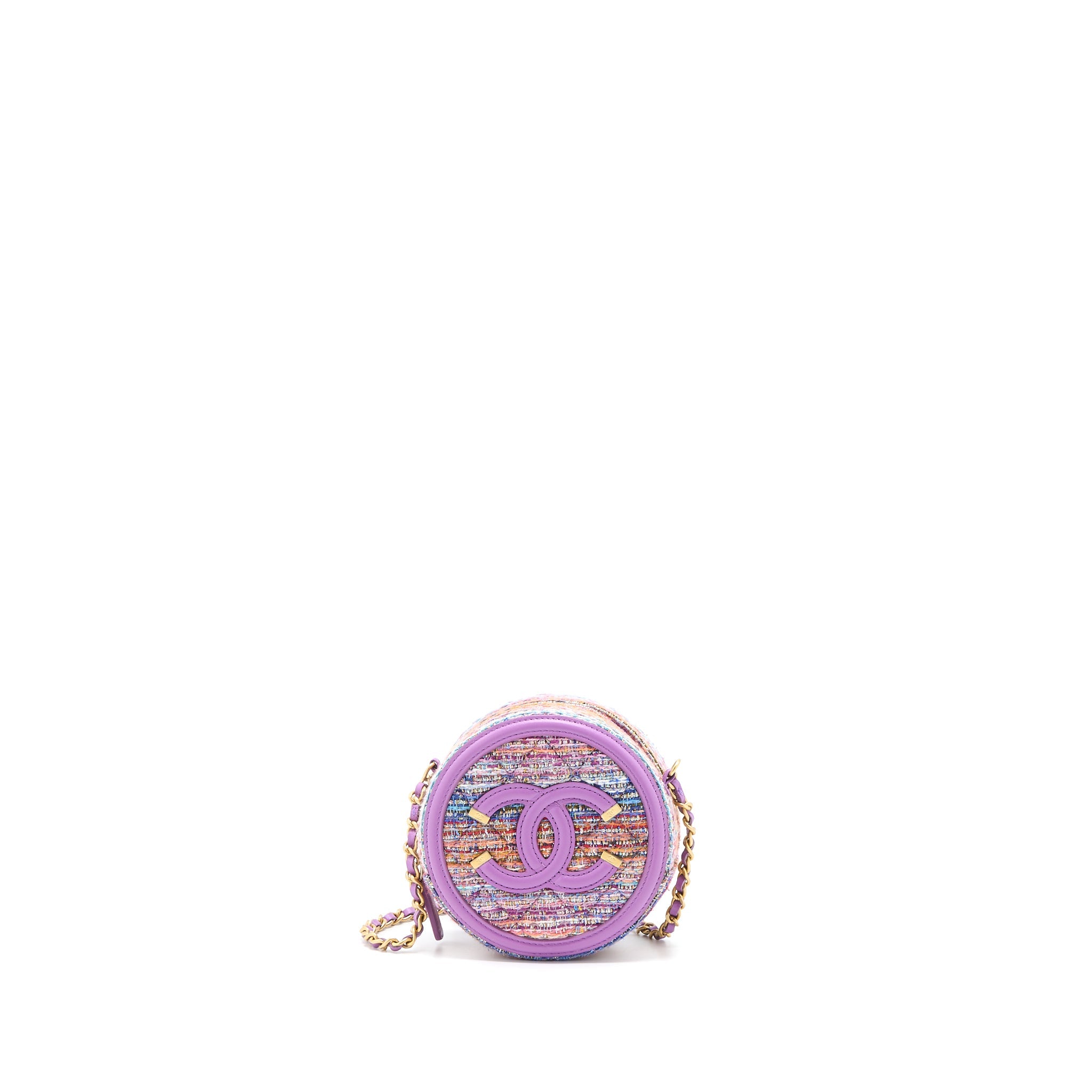 CHANEL ROUND CLUTCH WITH CHAIN LAMBSKIN/TWEED MULTICOLOUR GHW