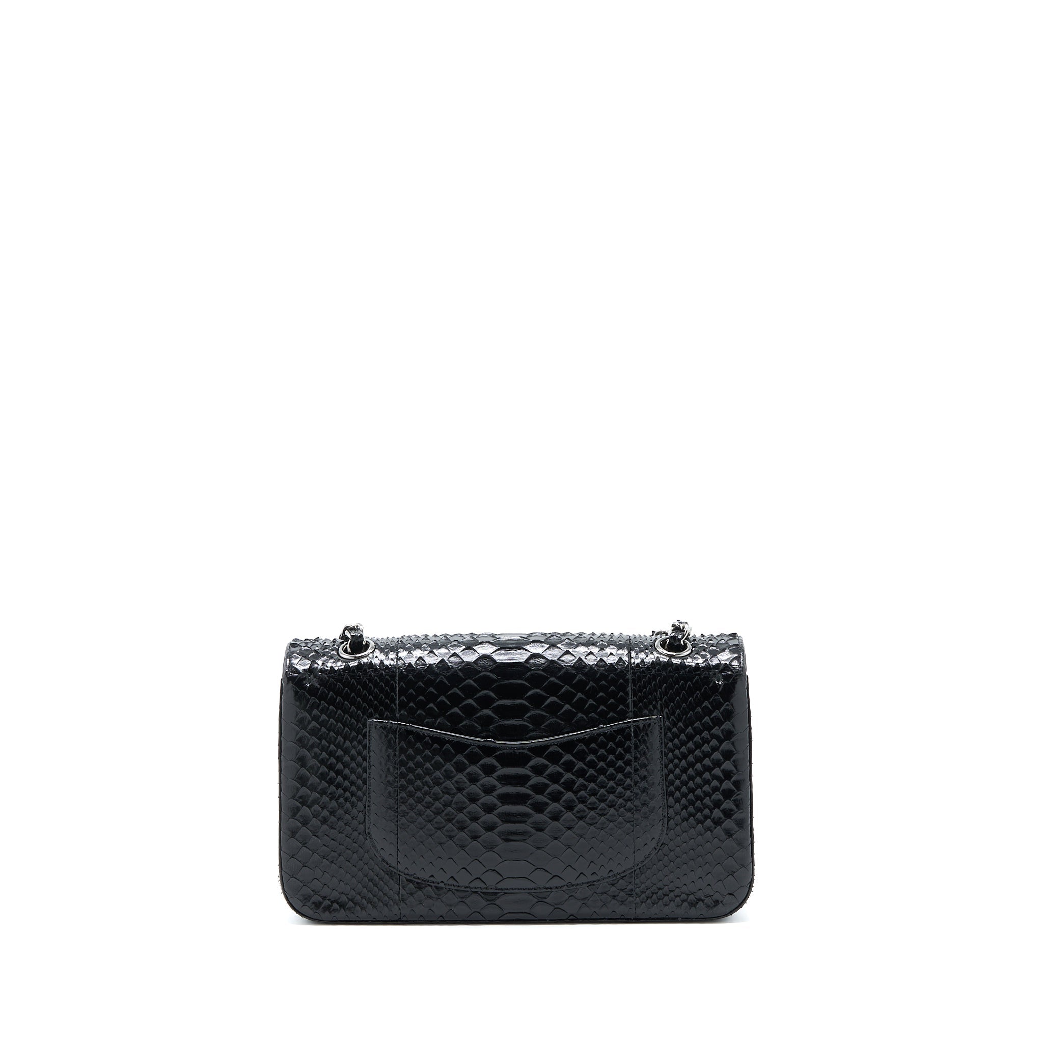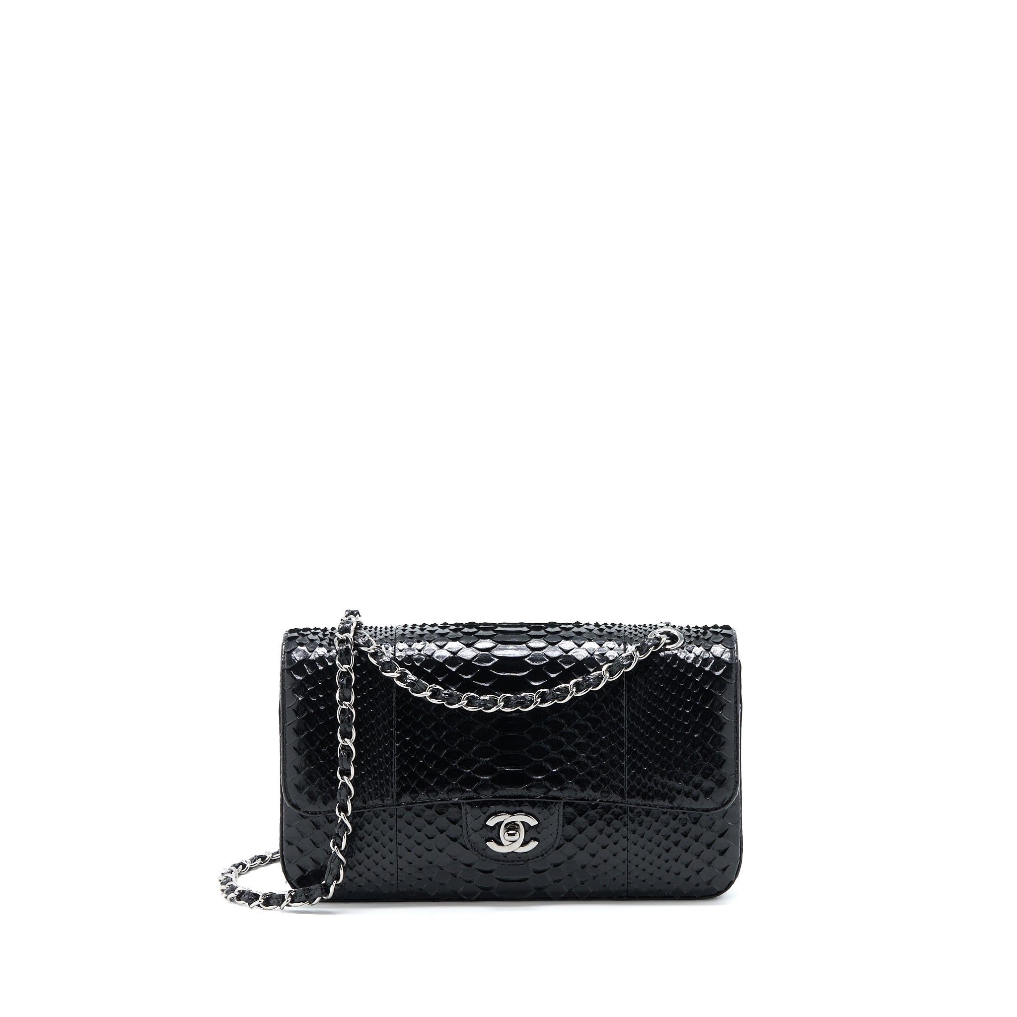 CHANEL MEDIUM CLASSIC DOUBLE FLAP BAG PYTHON BLACK SHW