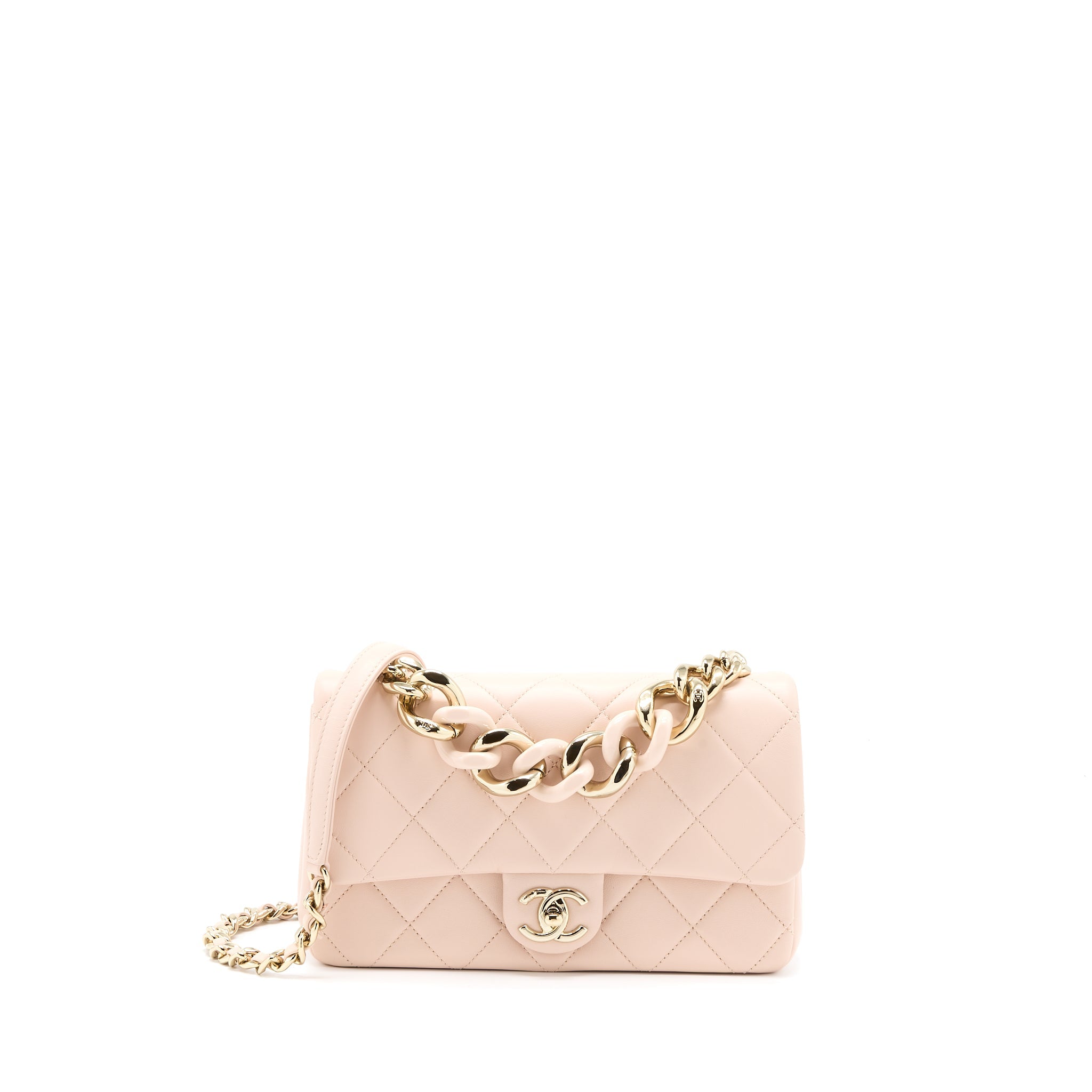 CHANEL 21P MINI RECTANGULAR FLAP BAG GRAINED LAMBSKIN GOLD LGHW