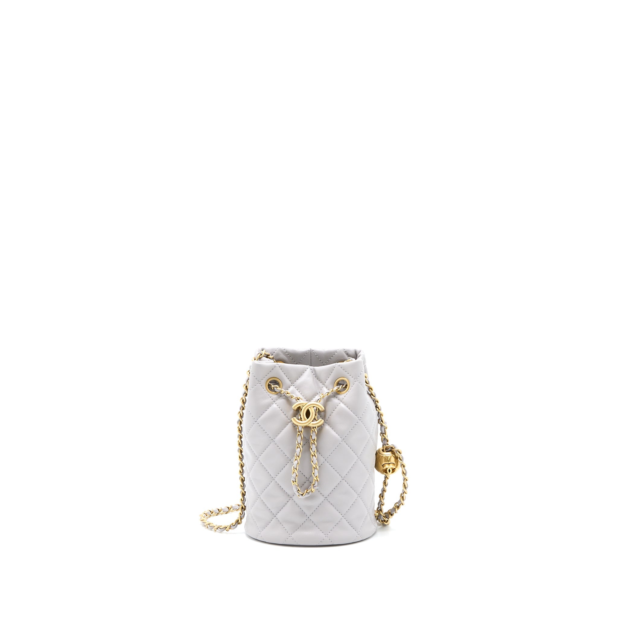 CHANEL 22B PEARL CRUSH BUCKET BAG LAMBSKIN GREY GHW (MICROCHIP)