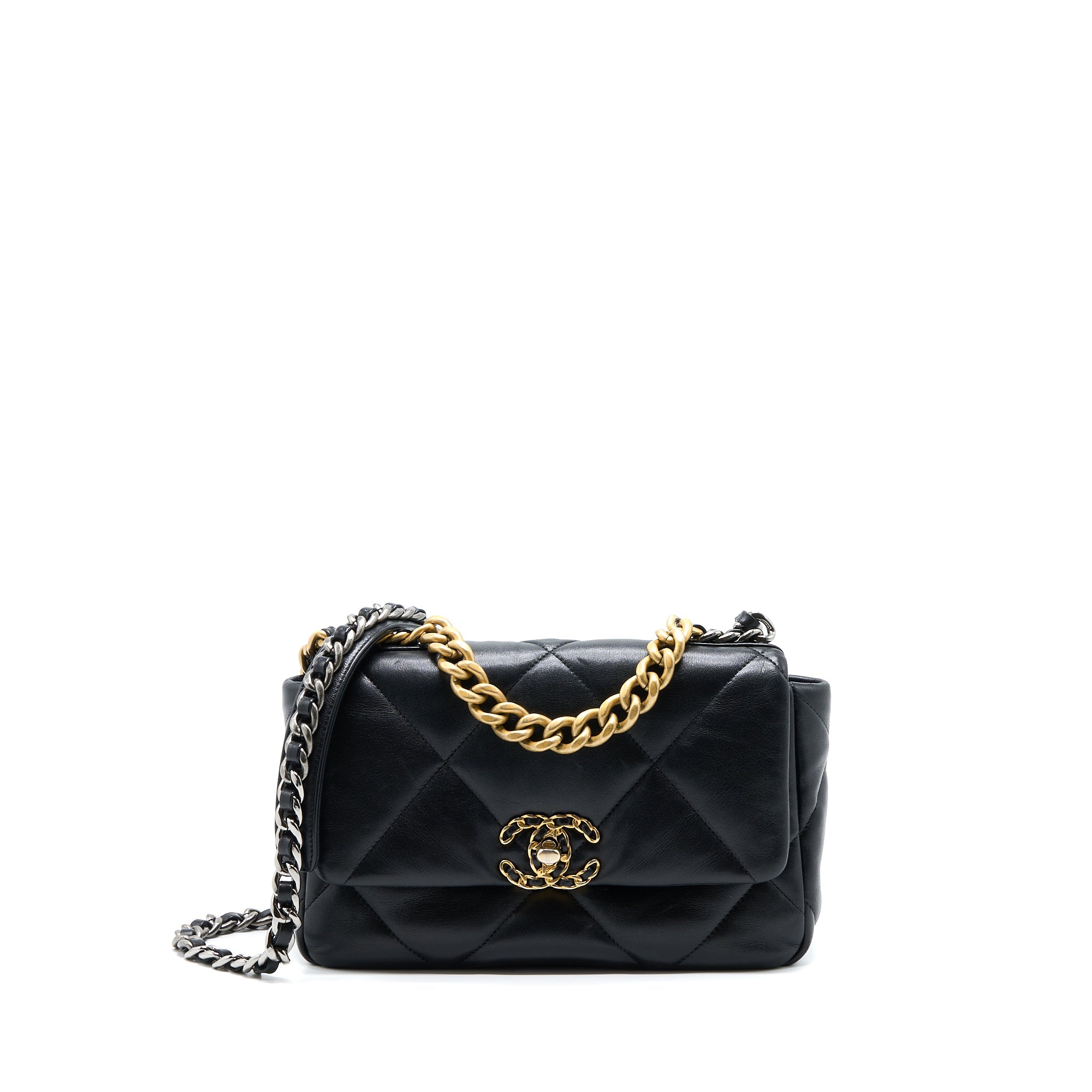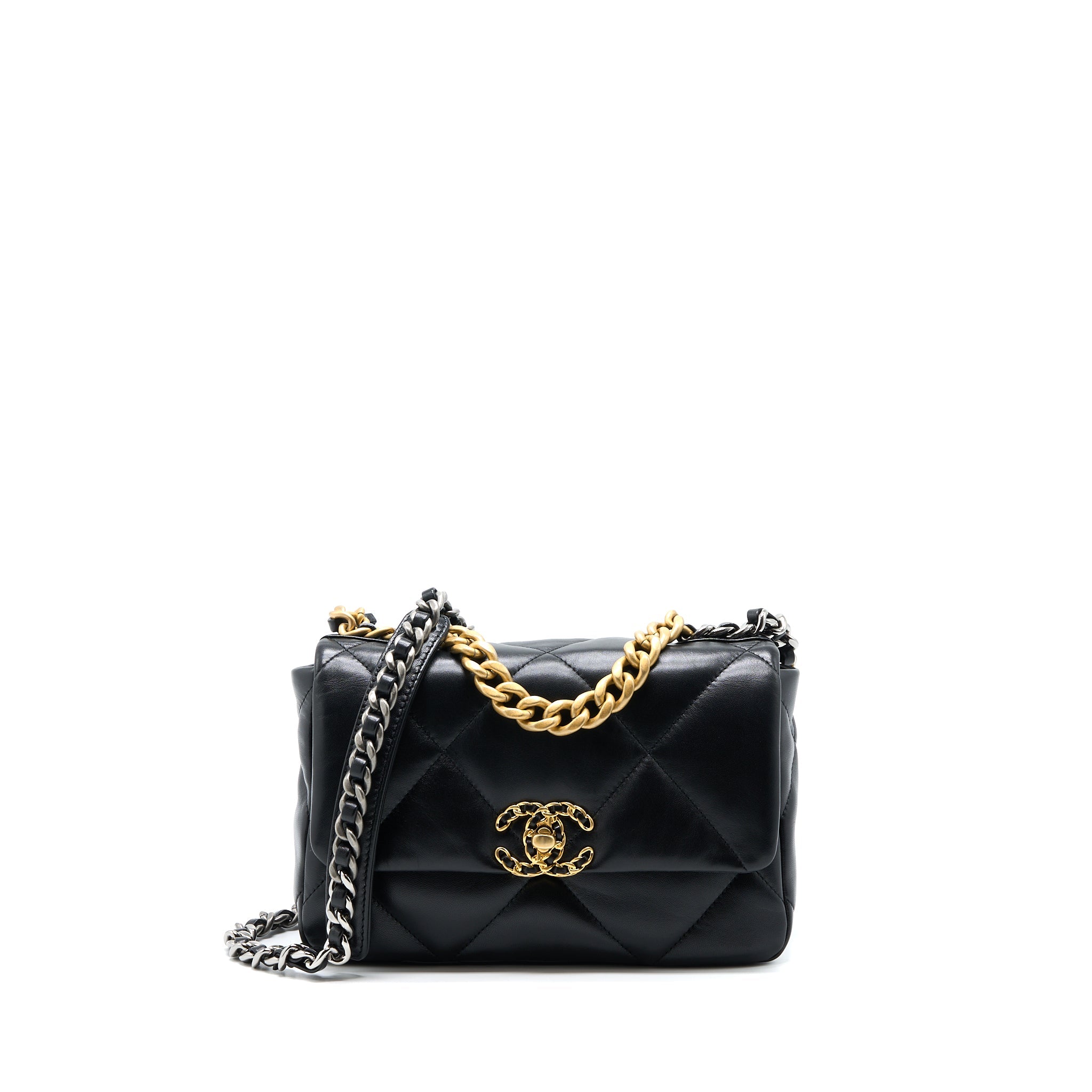CHANEL SMALL 19 BAG LAMBSKIN BLACK MULTICOLOUR HARDWARE