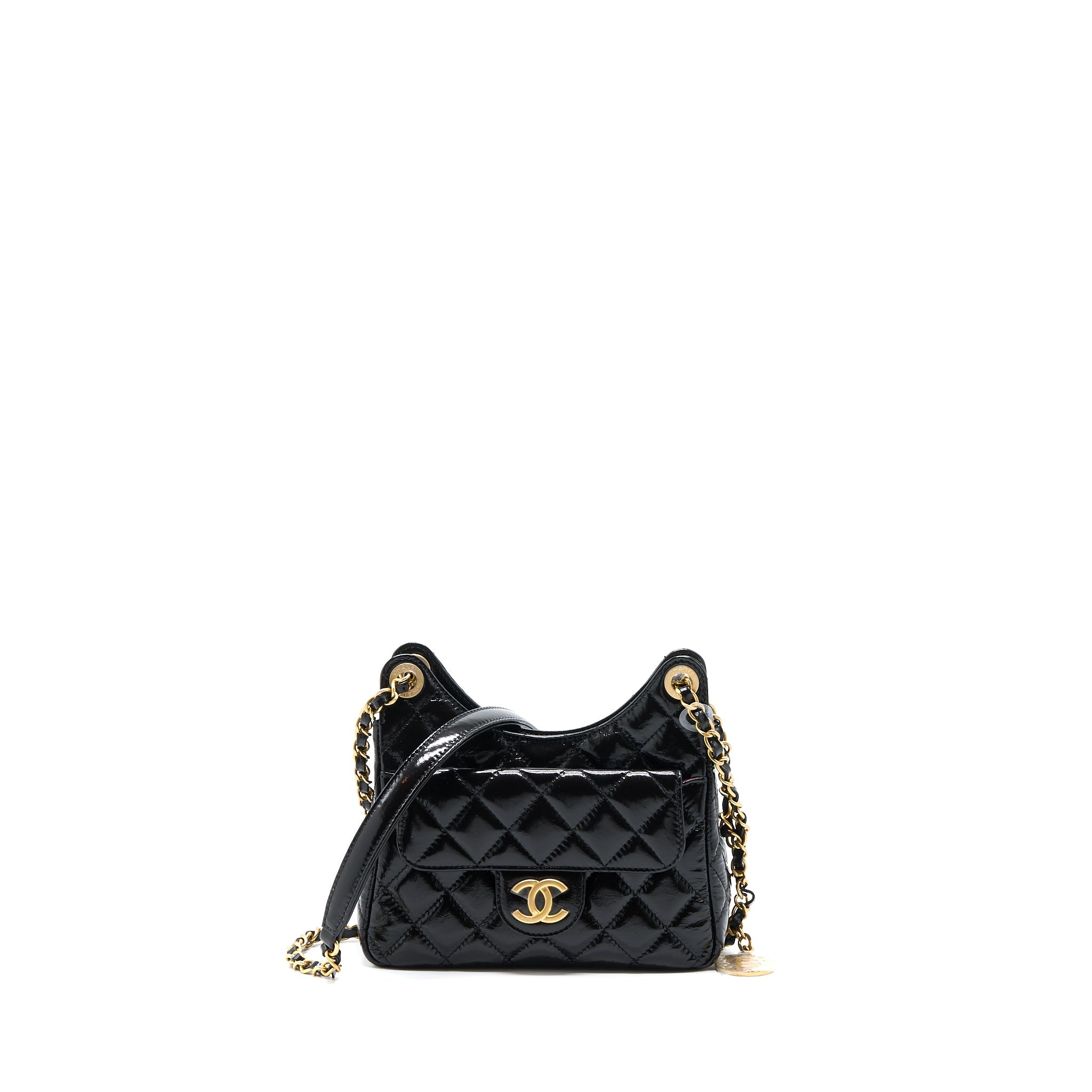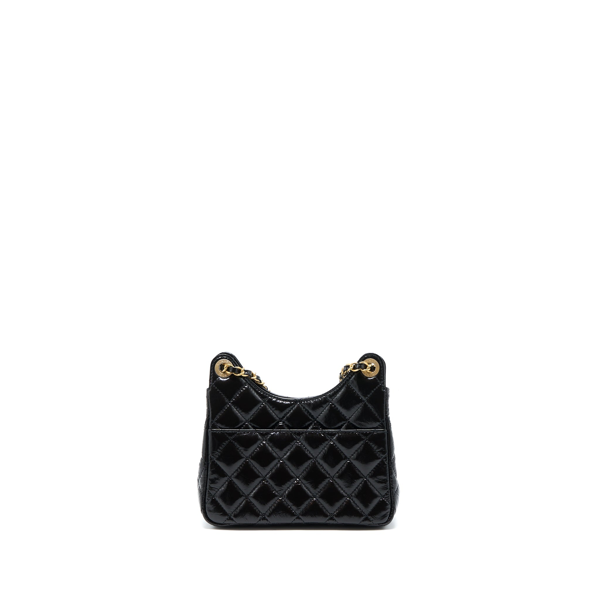 CHANEL 23C SMALL HOBO BAG SHINY CALFSKIN BLACK BRUSHED GHW (MICROCHIP)