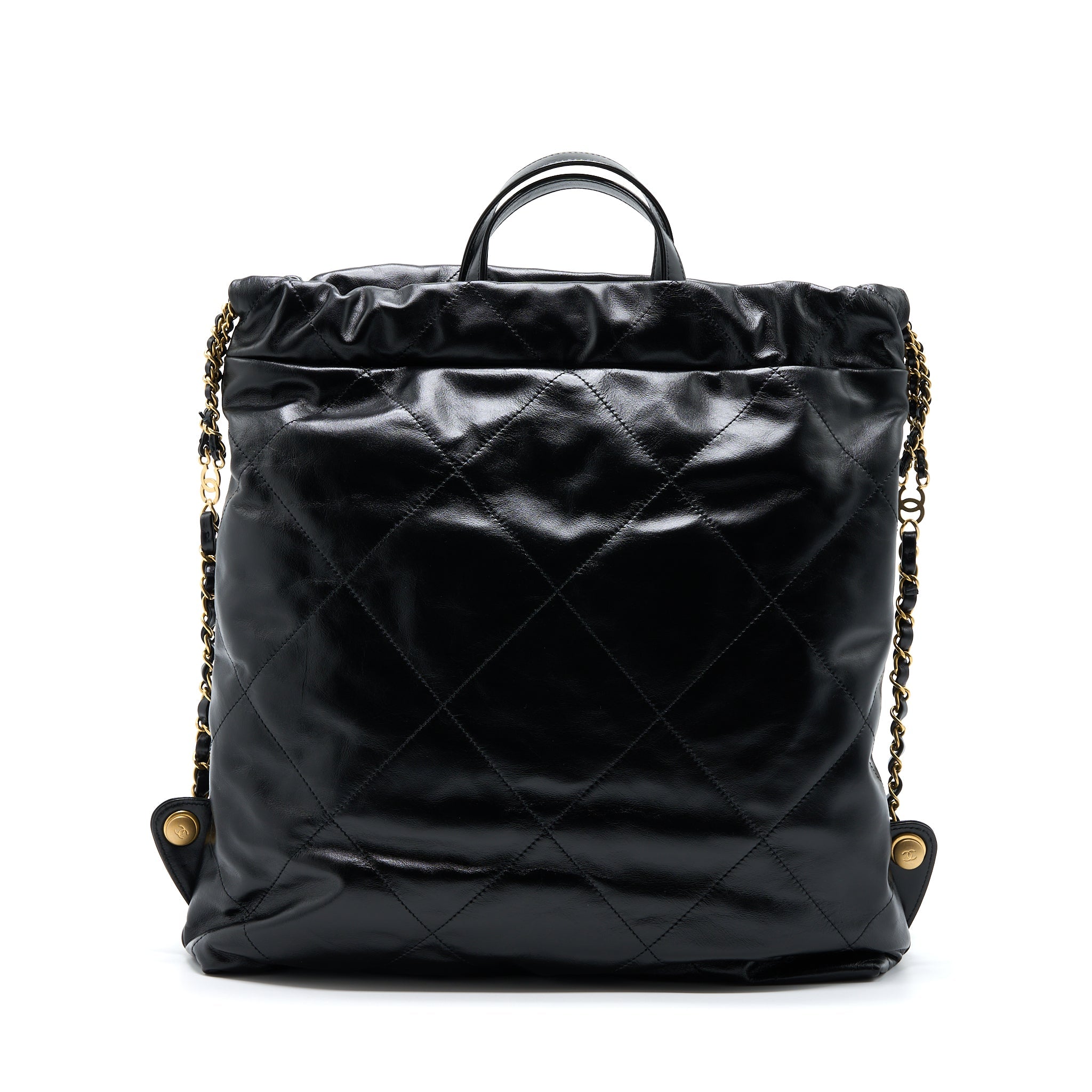 CHANEL 22 BACKPACK SHINY CALFSKIN BLACK BRUSHED GHW (MICROCHIP)