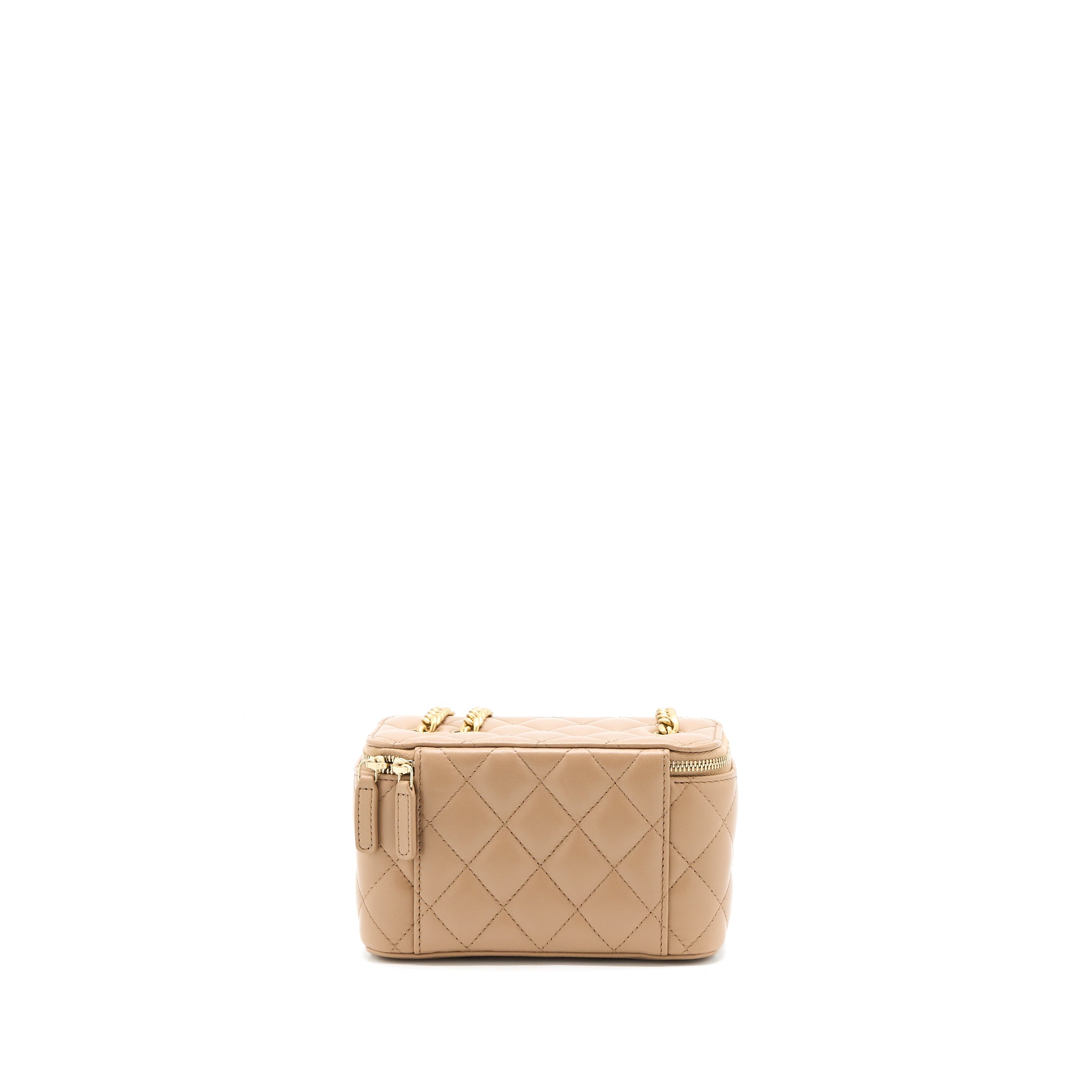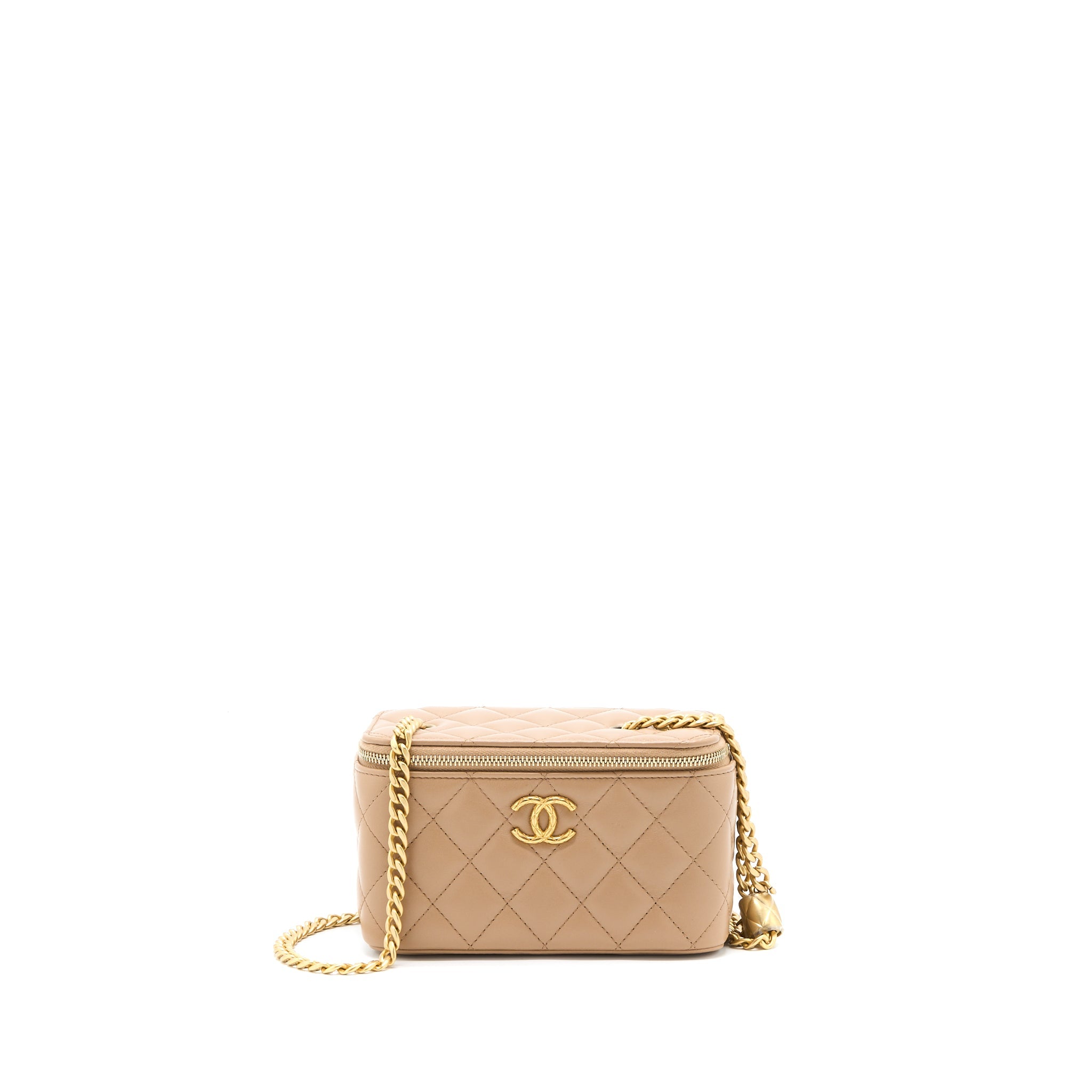 CHANEL 22K GOLD PILLAR ADJUSTABLE CHAIN LONG VANITY LAMBSKIN BEIGE BRUSHED GHW (MICROCHIP)
