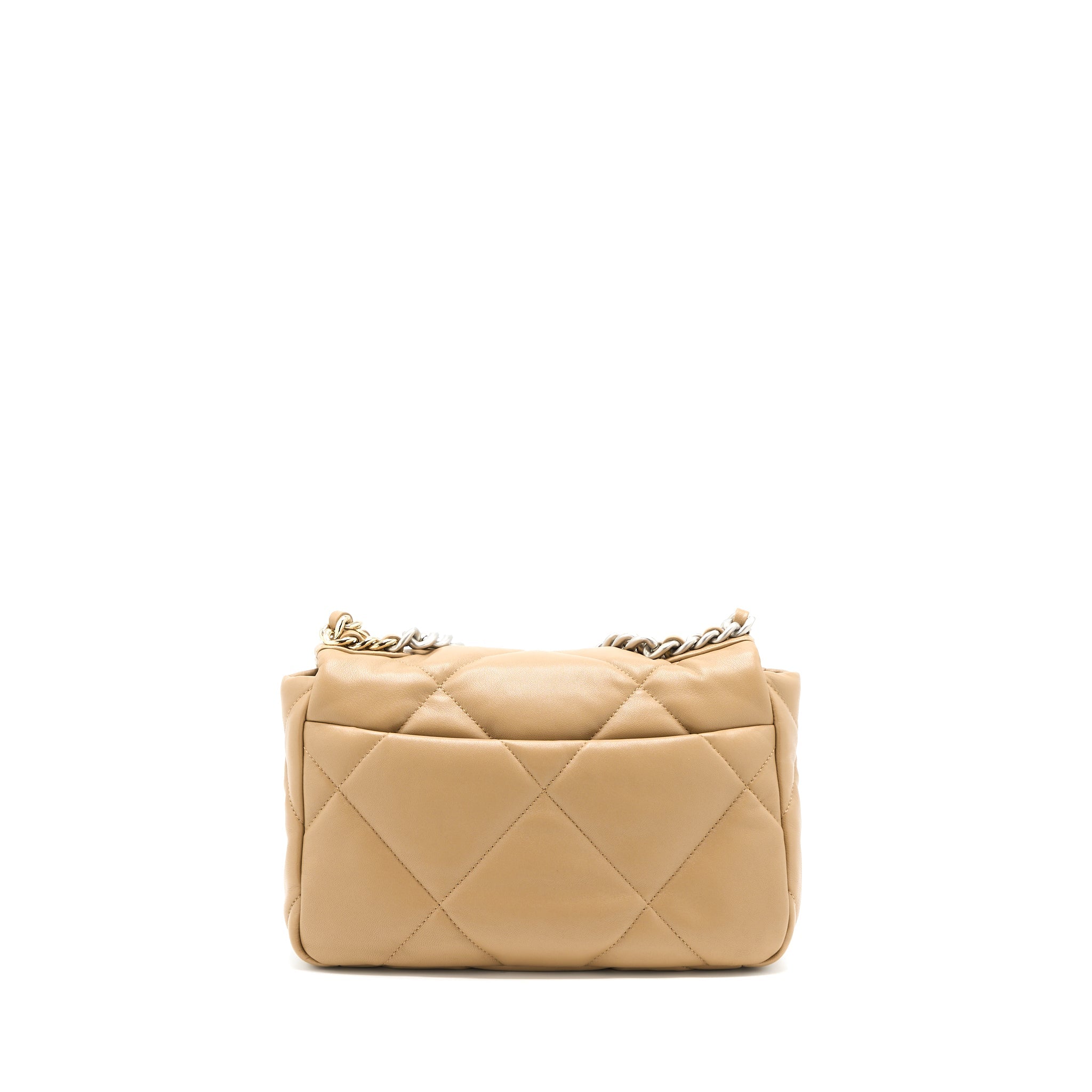 CHANEL 22B SMALL 19 BAG LAMBSKIN BEIGE MULTICOLOR HARDWARE (MICROCHIP)