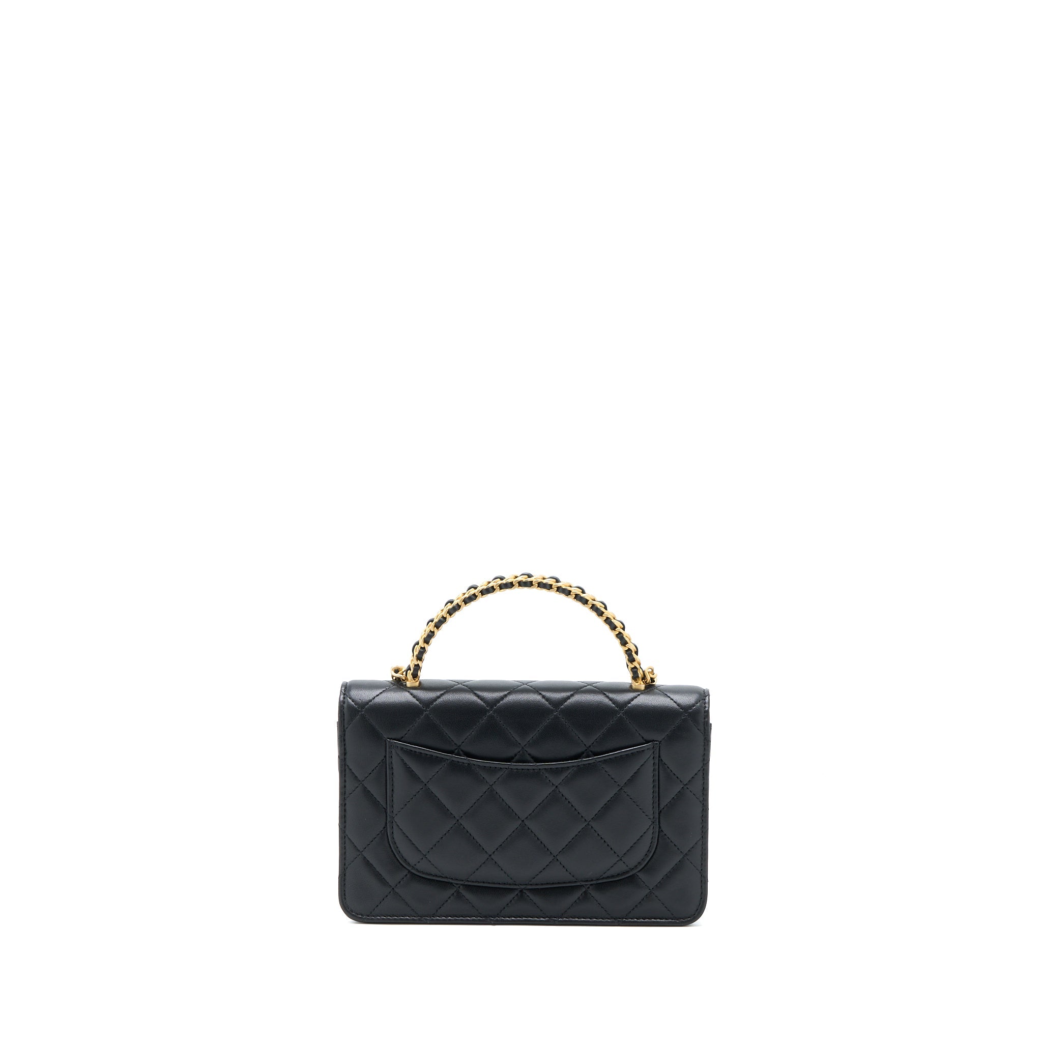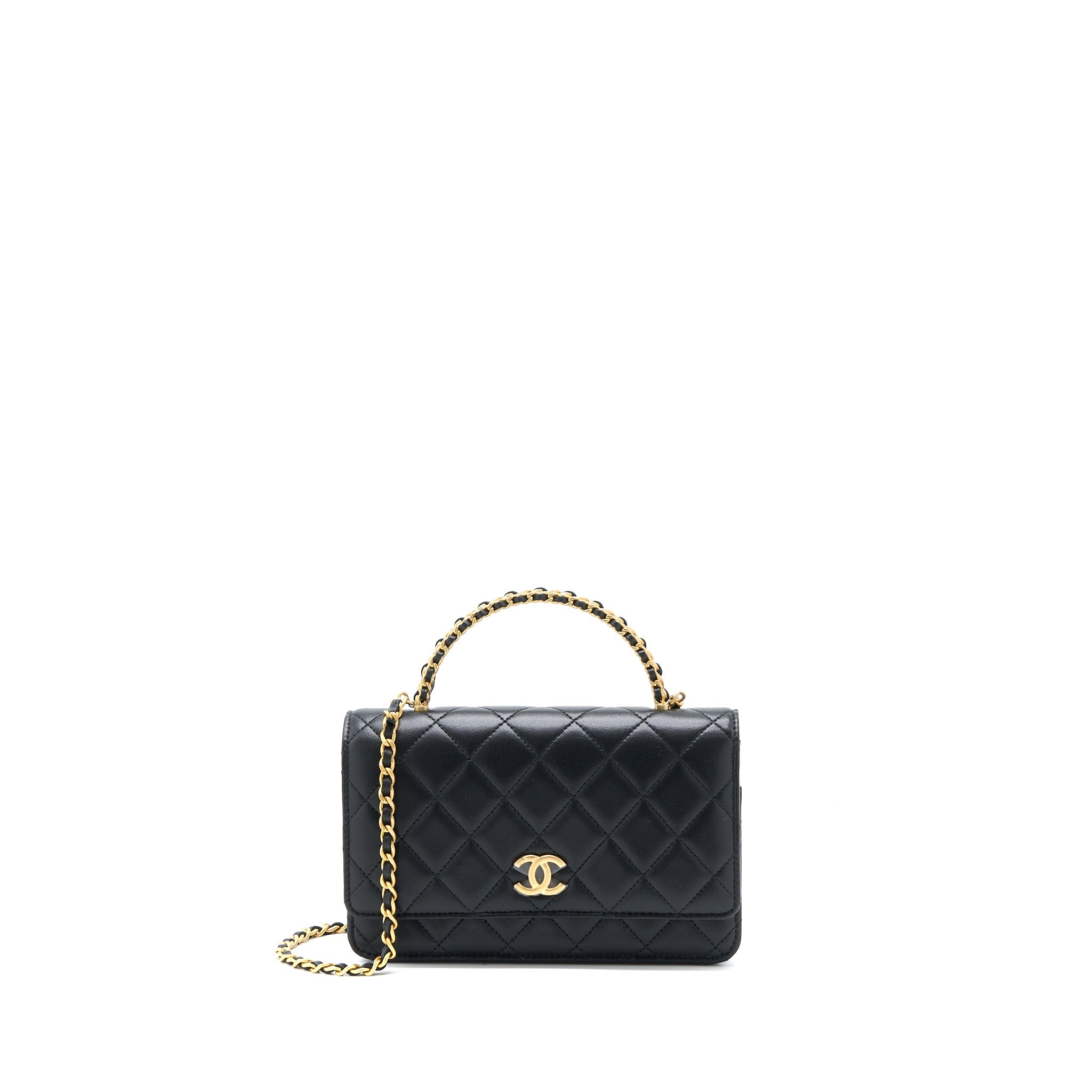 CHANEL TOP HANDLE WALLET ON CHAIN LAMBSKIN BLACK BRUSHED GHW (MICROCHIP)