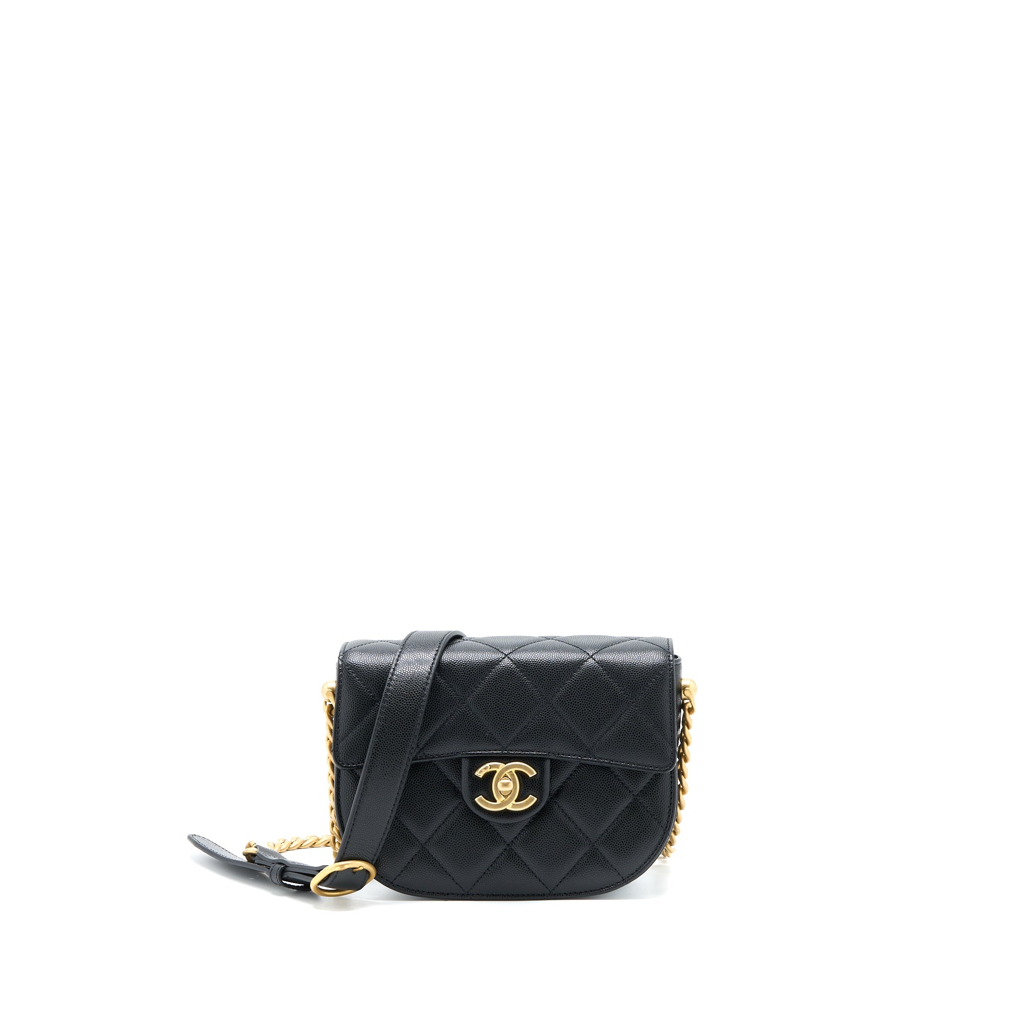 CHANEL 22B ROUND MESSENGER BAG GRAINED CALFSKIN BLACK BRUSHED GHW (MICROCHIP)