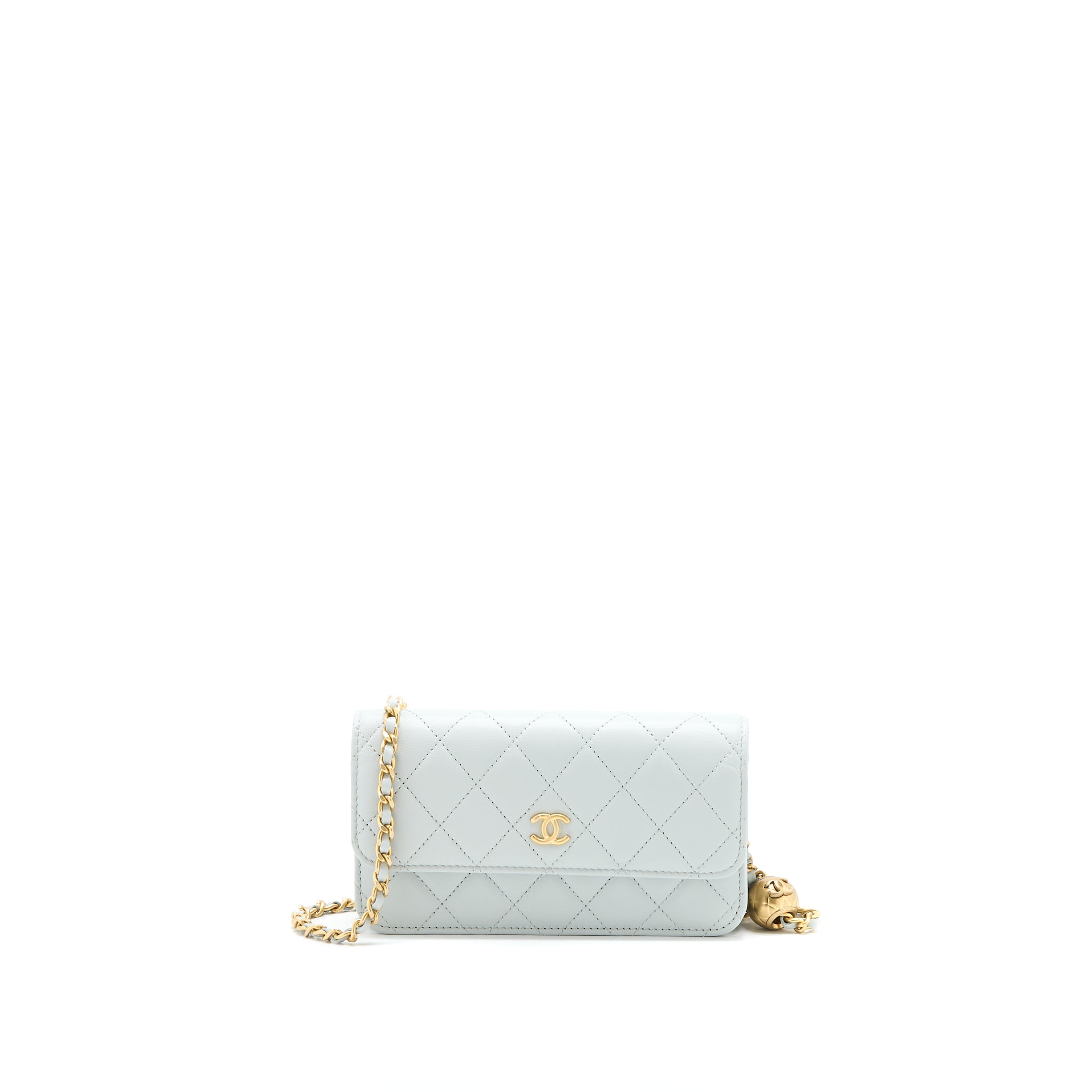 CHANEL 23C PEARL CRUSH MINI FLAP BAG LAMBSKIN LIGHT GREY BRUSHED GHW (MICROCHIP)