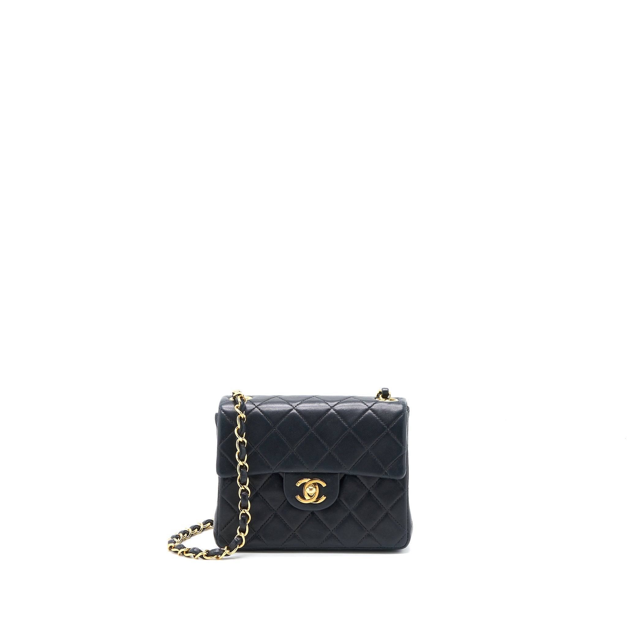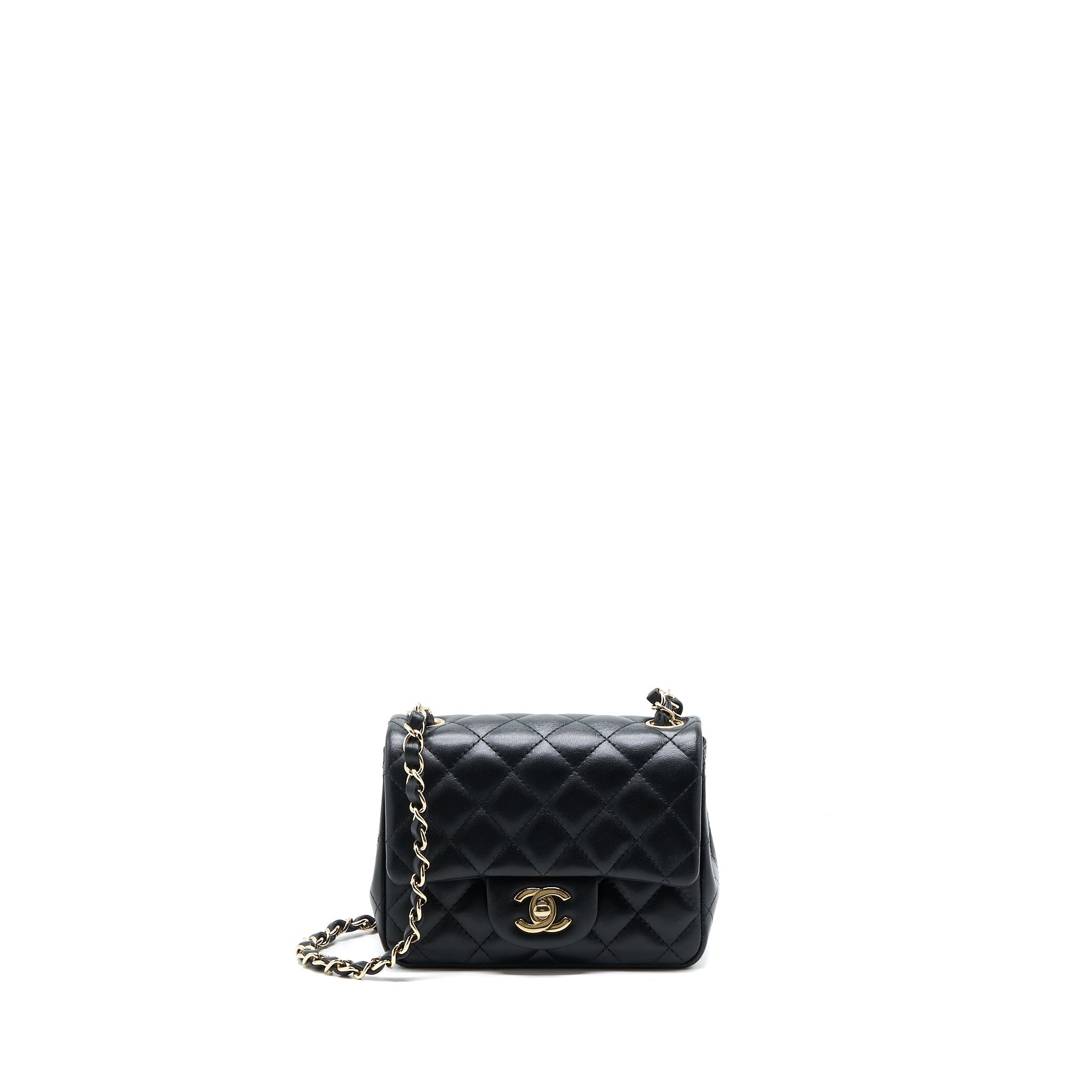 CHANEL CLASSIC MINI SQUARE FLAP BAG LAMBSKIN BLACK LGHW (MICROCHIP)