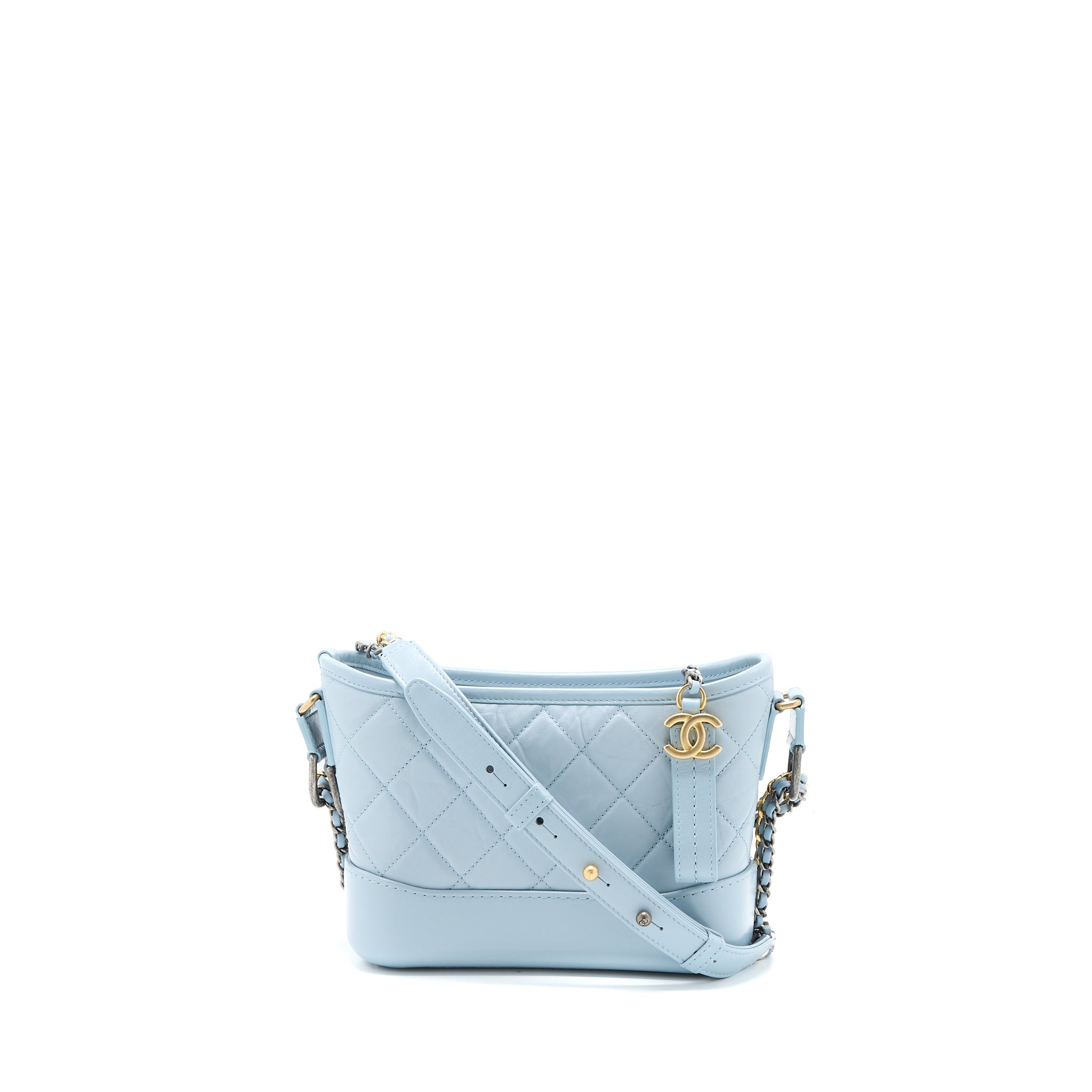 CHANEL SMALL GABRIELLE HOBO BAG LAMBSKIN LIGHT BLUE MULTICOLOUR HARDWARE