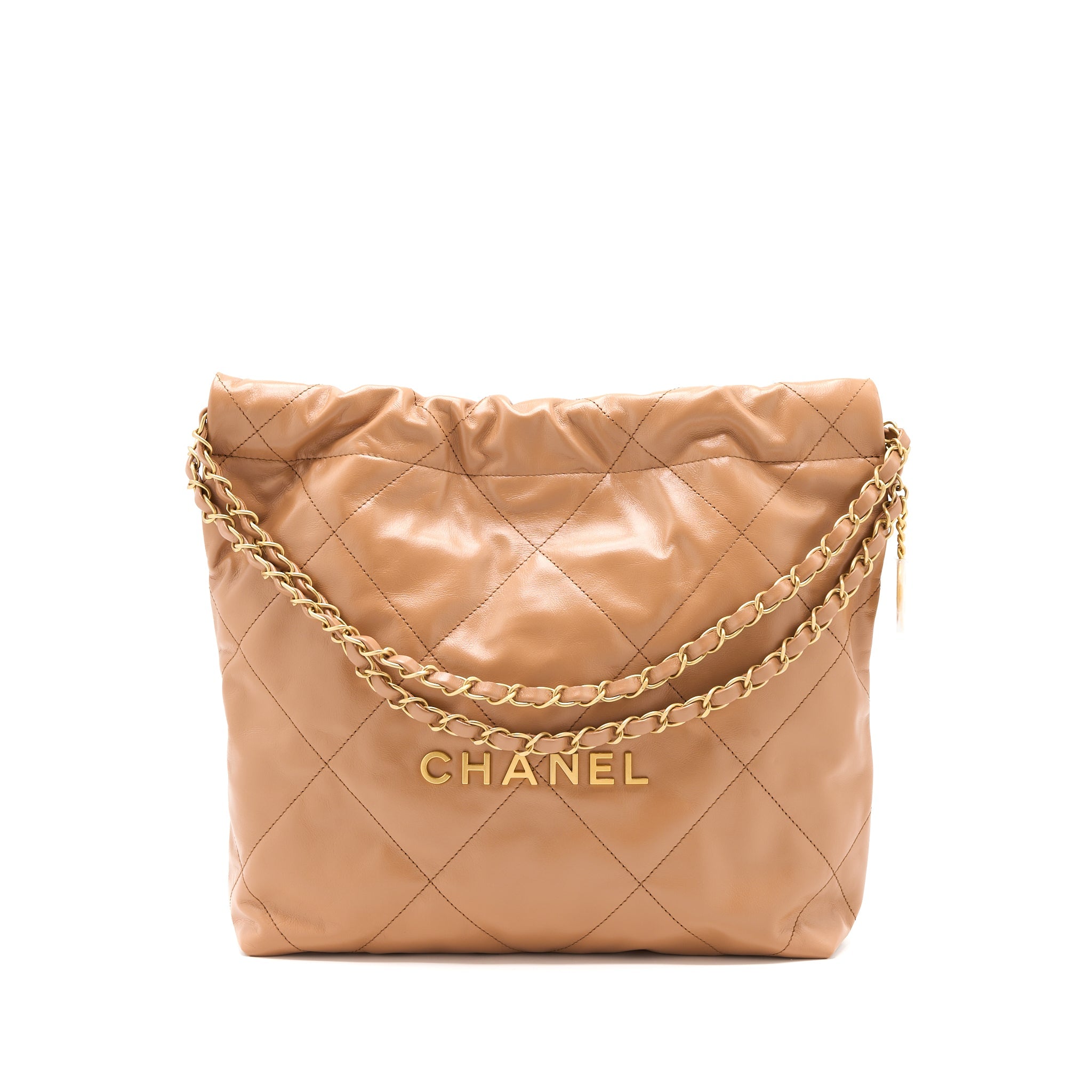 CHANEL SMALL 22 BAG SHINY CALFSKIN CARAMEL GHW (MICROCHIP)