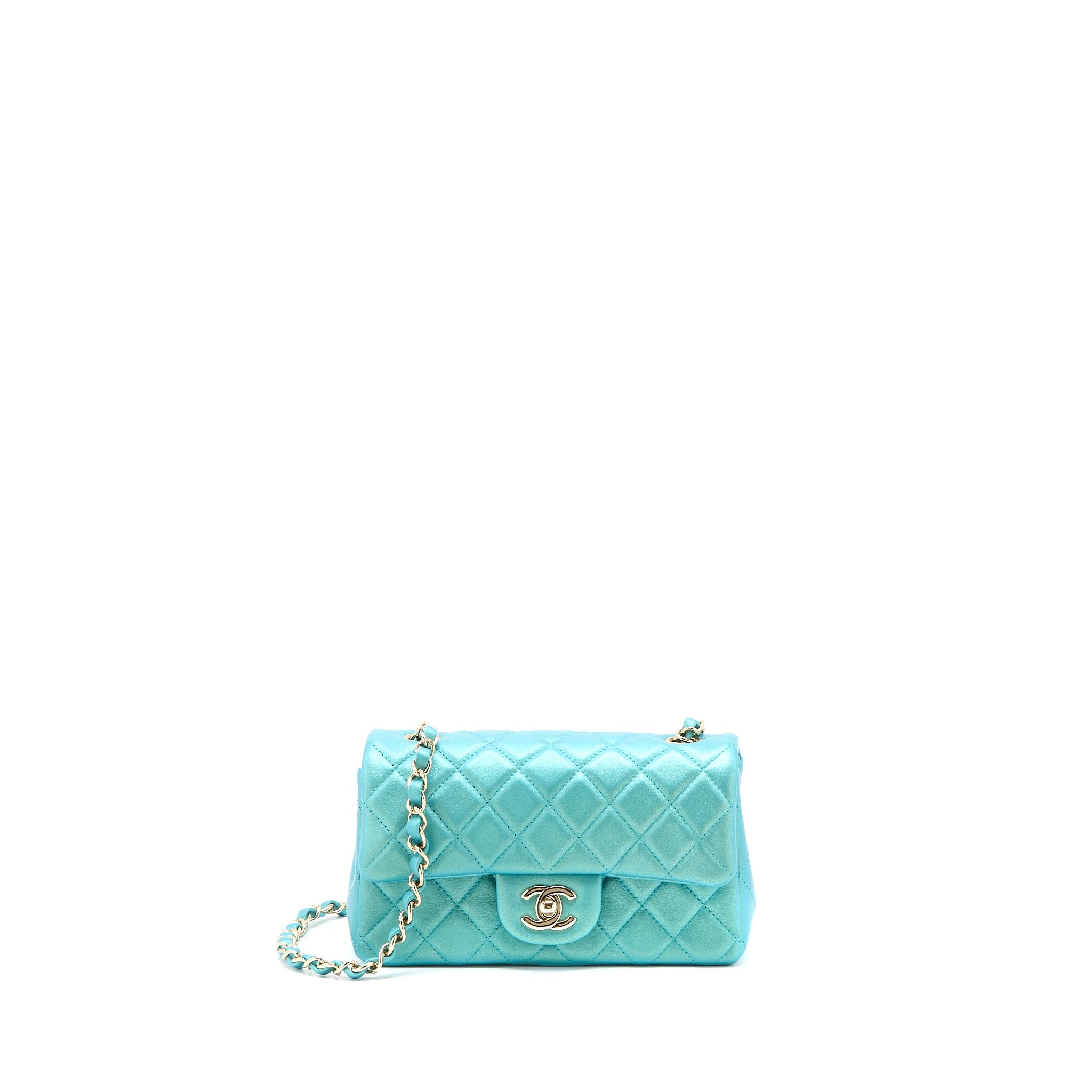 CHANEL 21S MINI RECTANGULAR FLAP BAG CALFSKIN IRIDESCENT GREEN LGHW