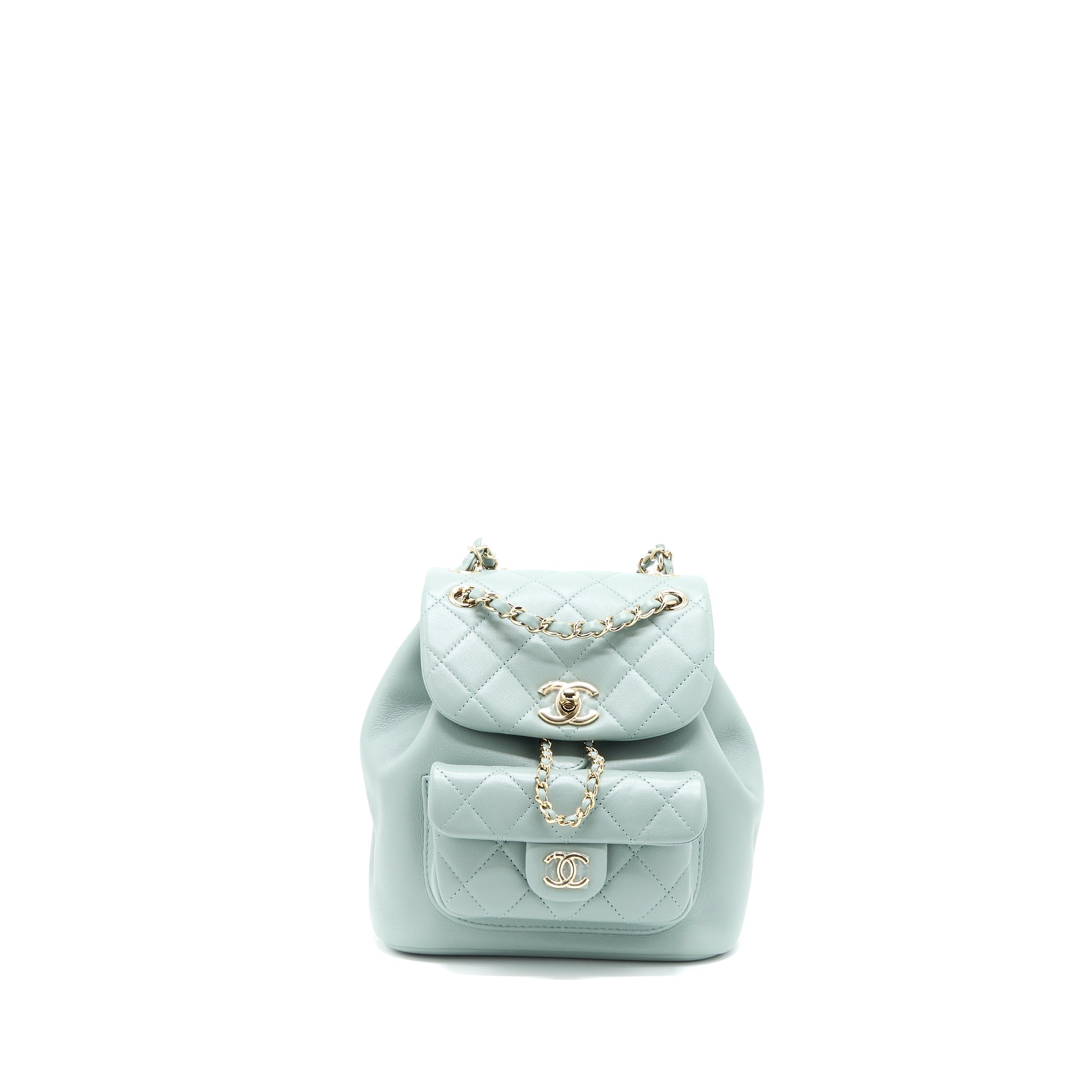 CHANEL 23C DUMA MINI BACKPACK CALFSKIN LIGHT GREY LGHW (MICROCHIP)
