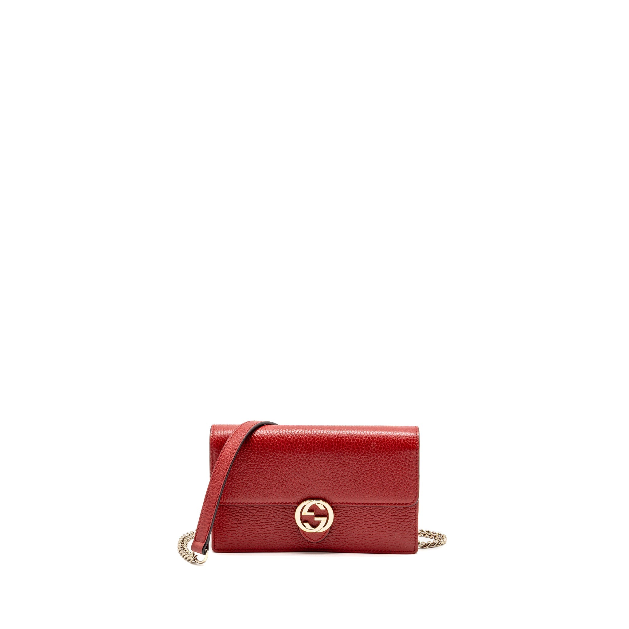 GUCCI INTERLOCKING CHAIN WALLET CALFSKIN RED GHW