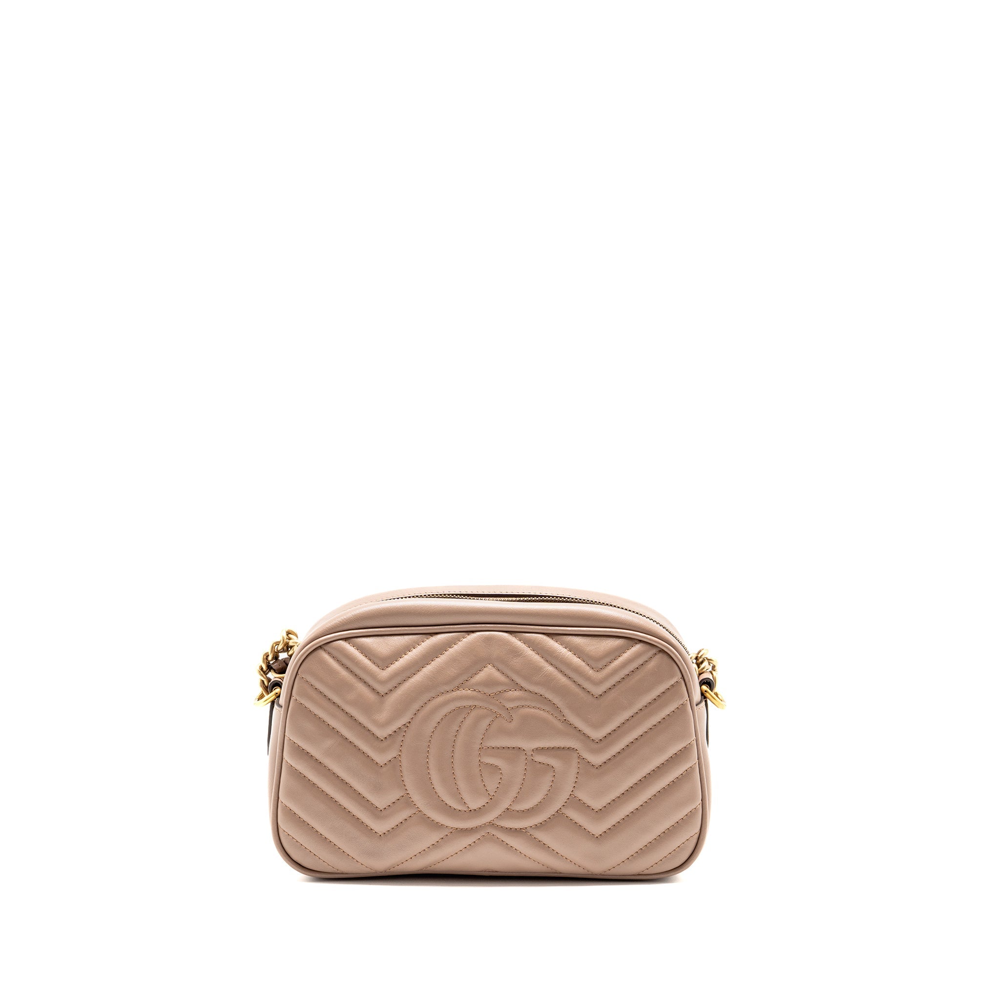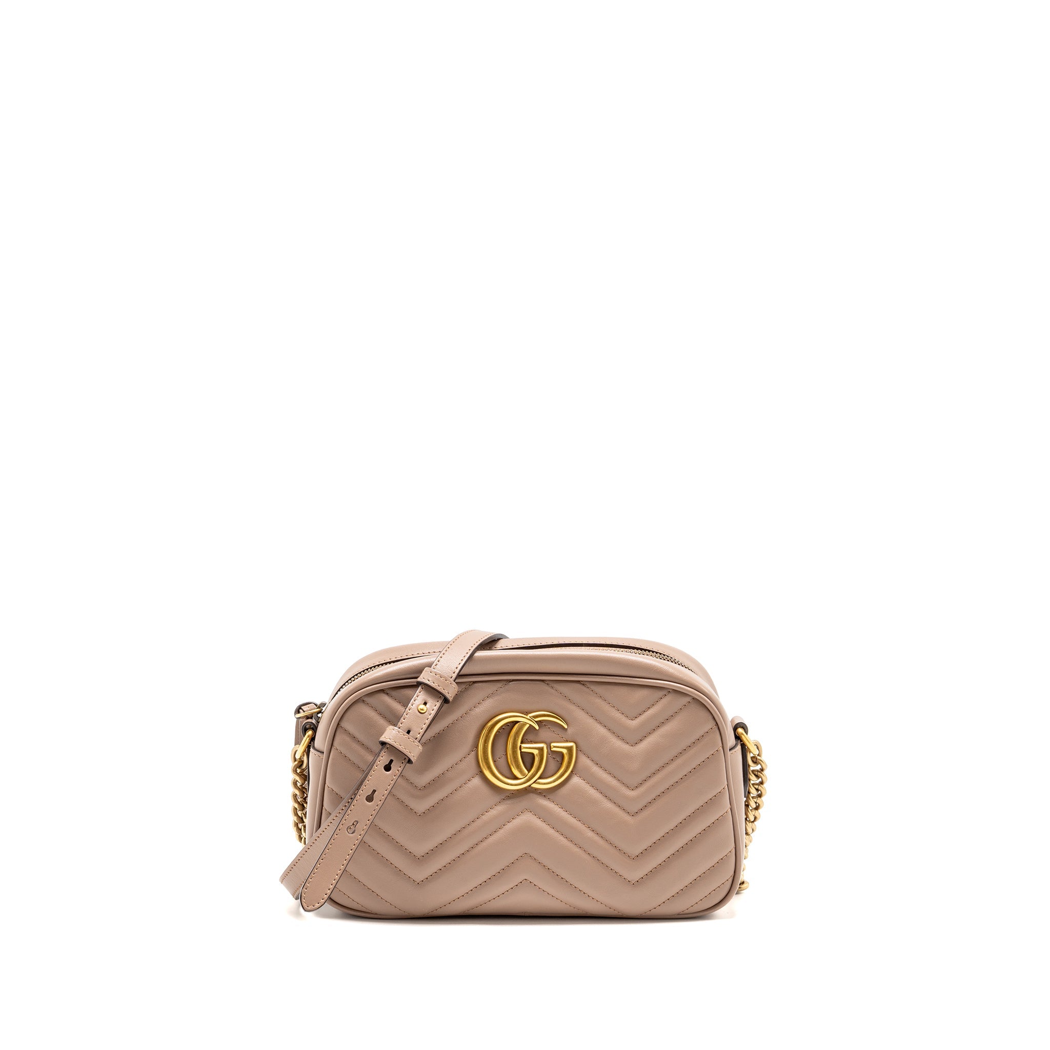 GUCCI SMALL GG MARMONT CAMERA BAG MATELASSE CHEVRON LEATHER PINK GHW
