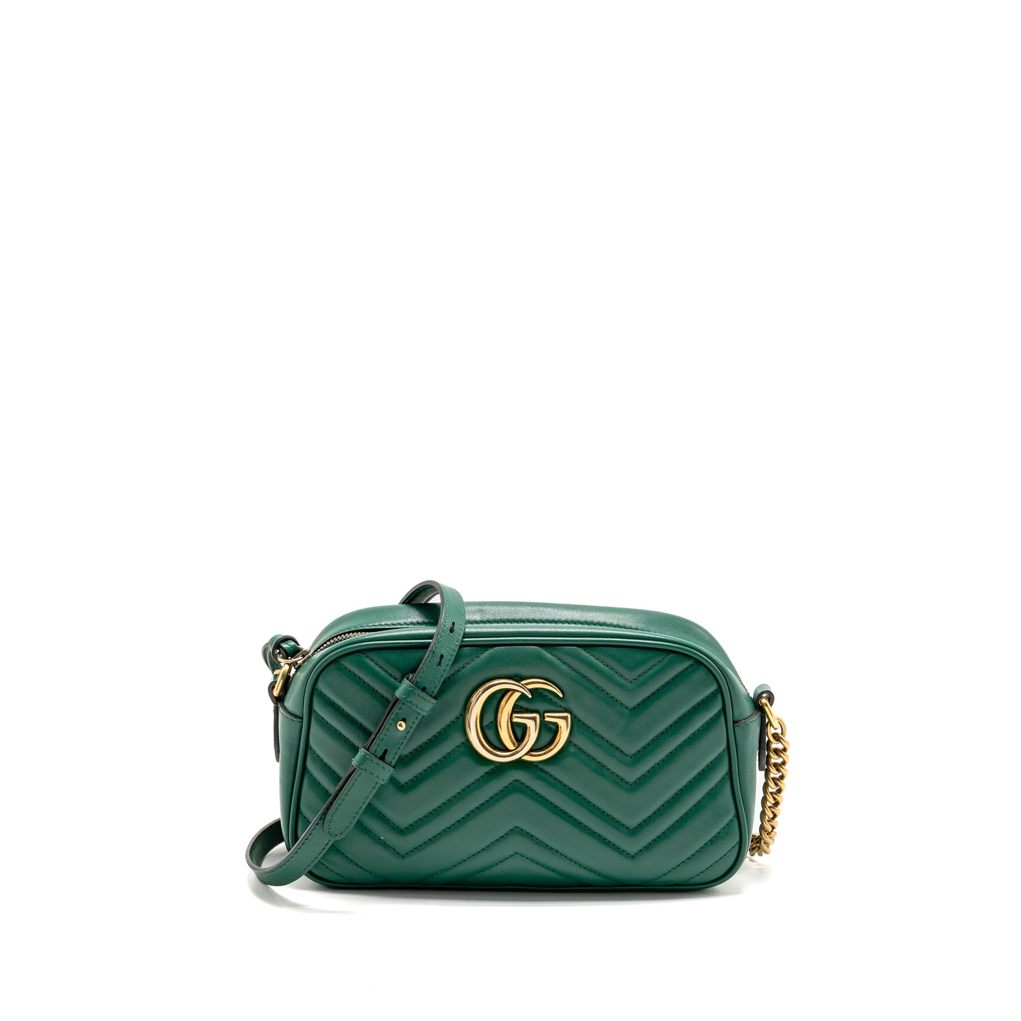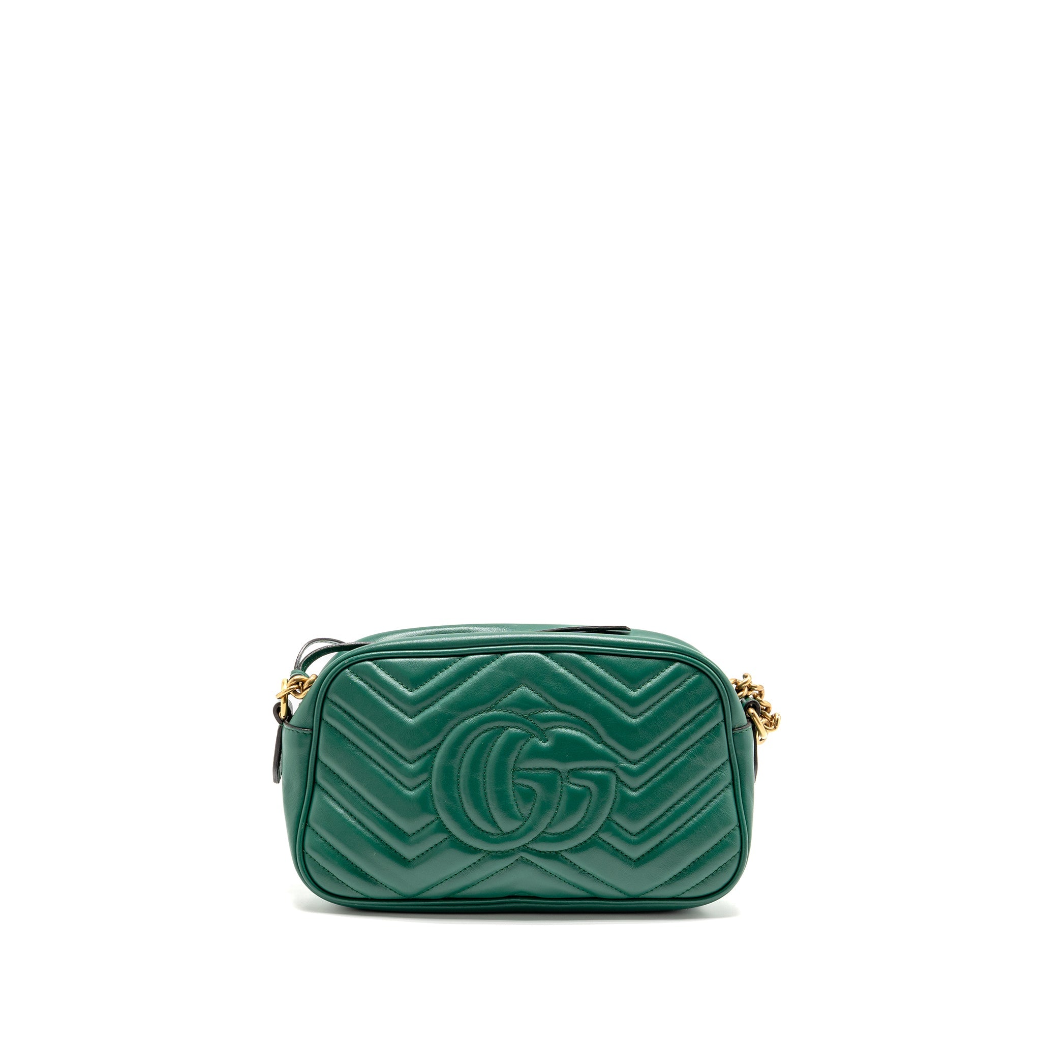 GUCCI SMALL GG MARMONT CROSSBODY CAMERA BAG CALFSKIN GREEN GHW