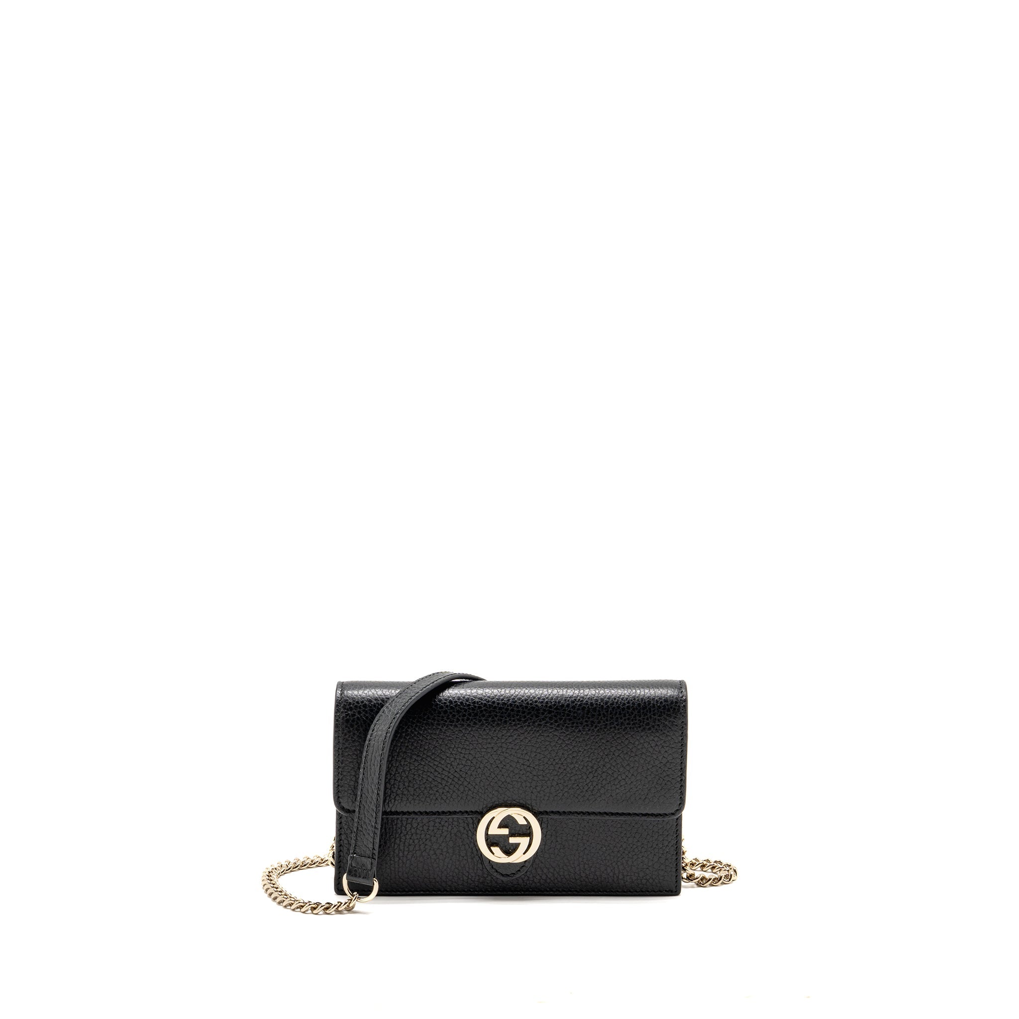 GUCCI INTERLOCKING CHAIN WALLET CALFSKIN BLACK GHW
