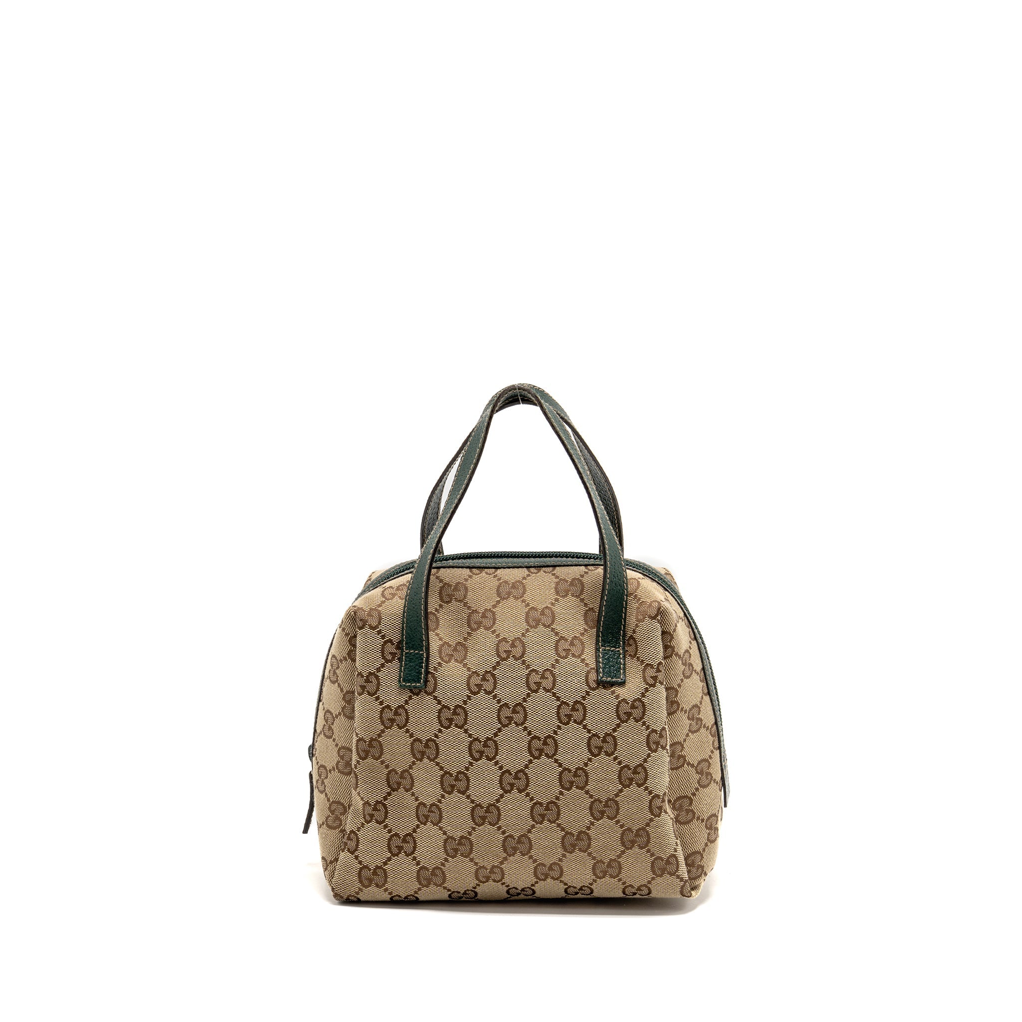 GUCCI BALTHUS TOFU HANDBAG GG CANVAS/ LEATHER BEIGE/ DARK GREEN