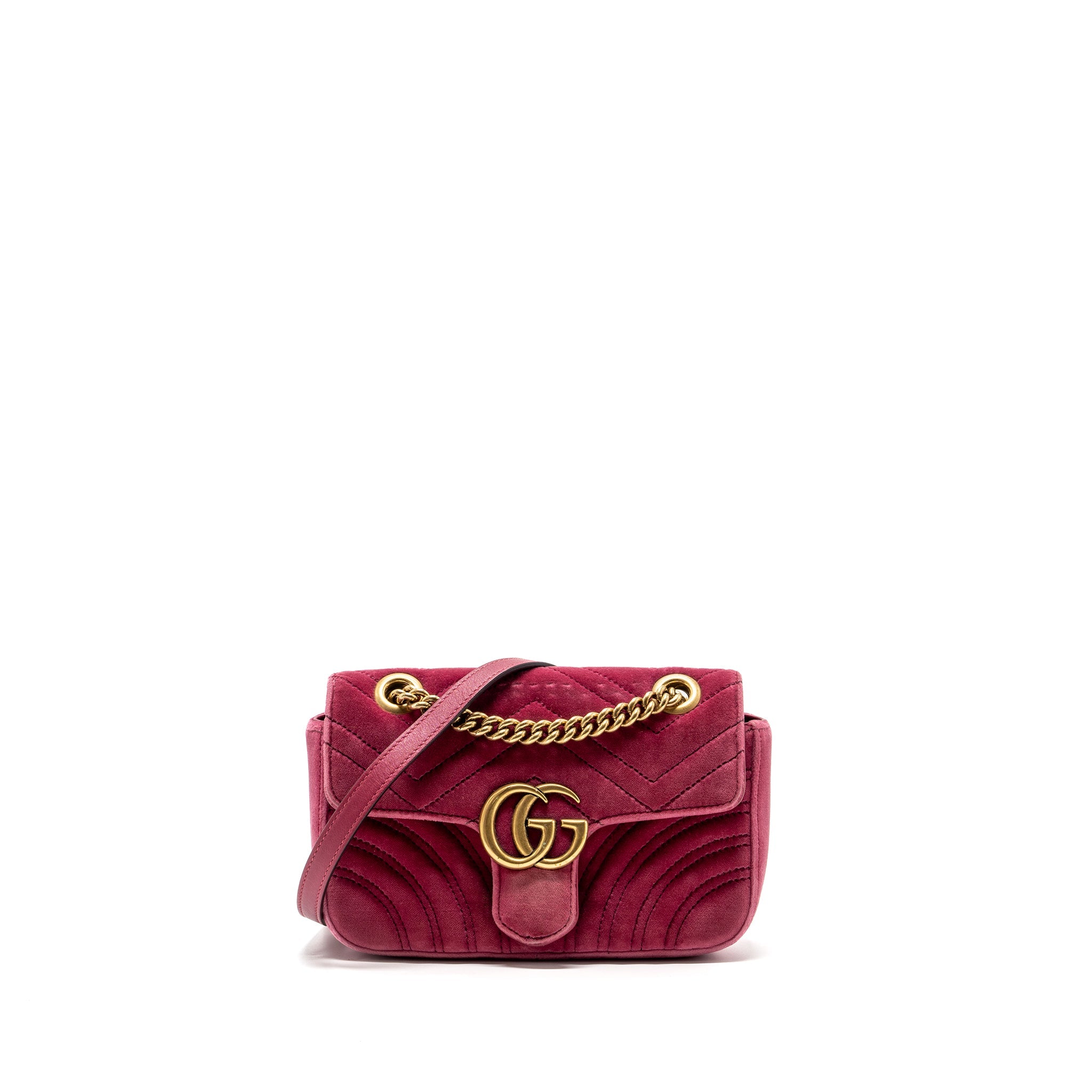 GUCCI SMALL GG MARMONT SHOULDER BAG VELVET PINK GHW