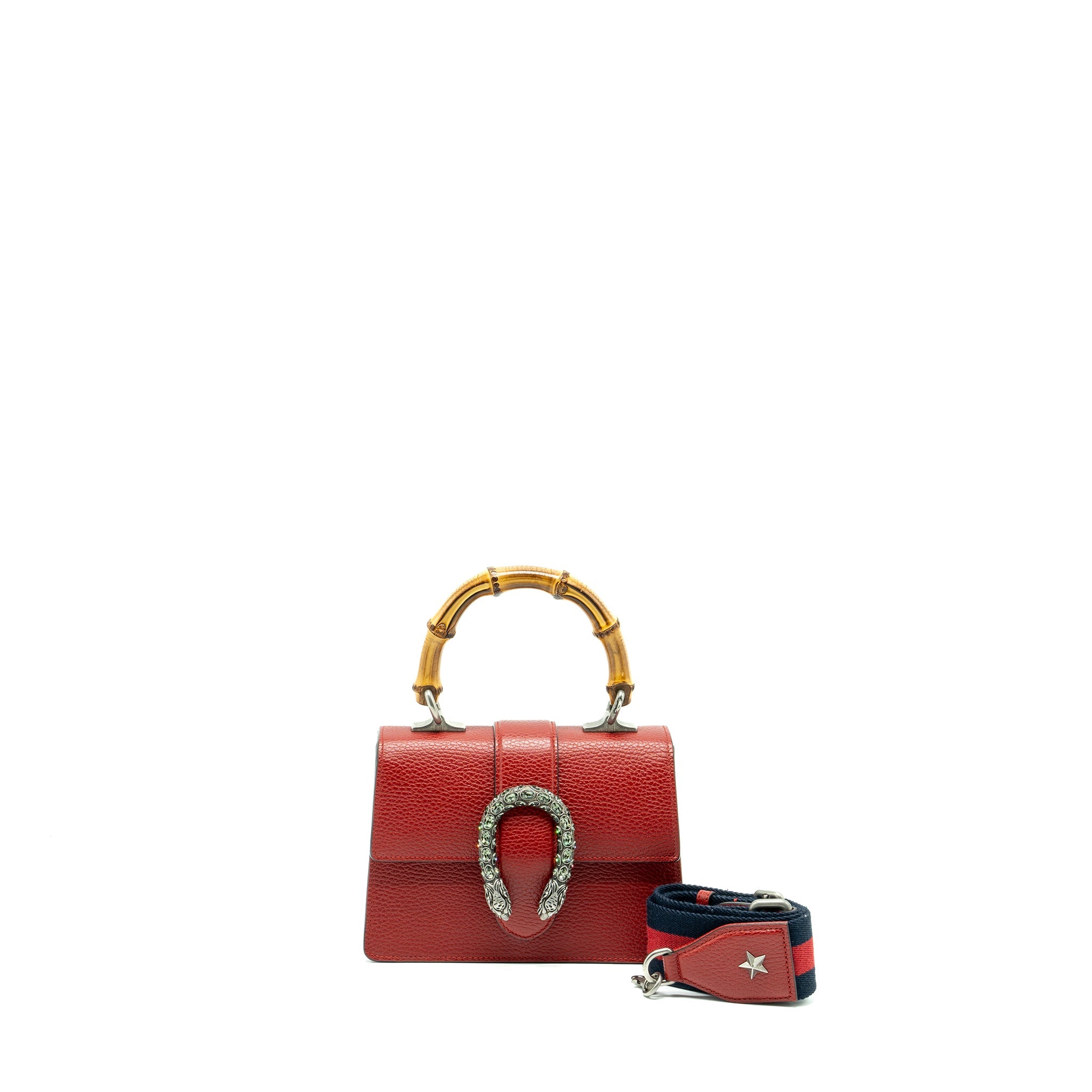 GUCCI DIONYSUS SMALL BAMBOO HANDLE BAG CALFSKIN RED SHW