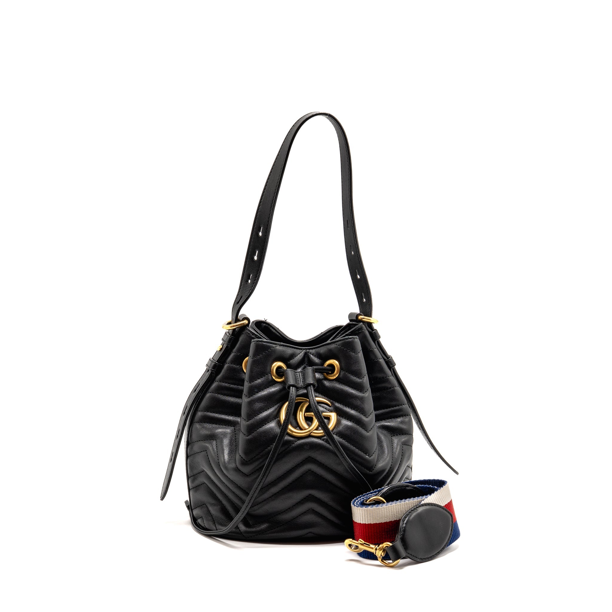 GUCCI GG MARMONT BUCKET BAG CALFSKIN BLACK GHW