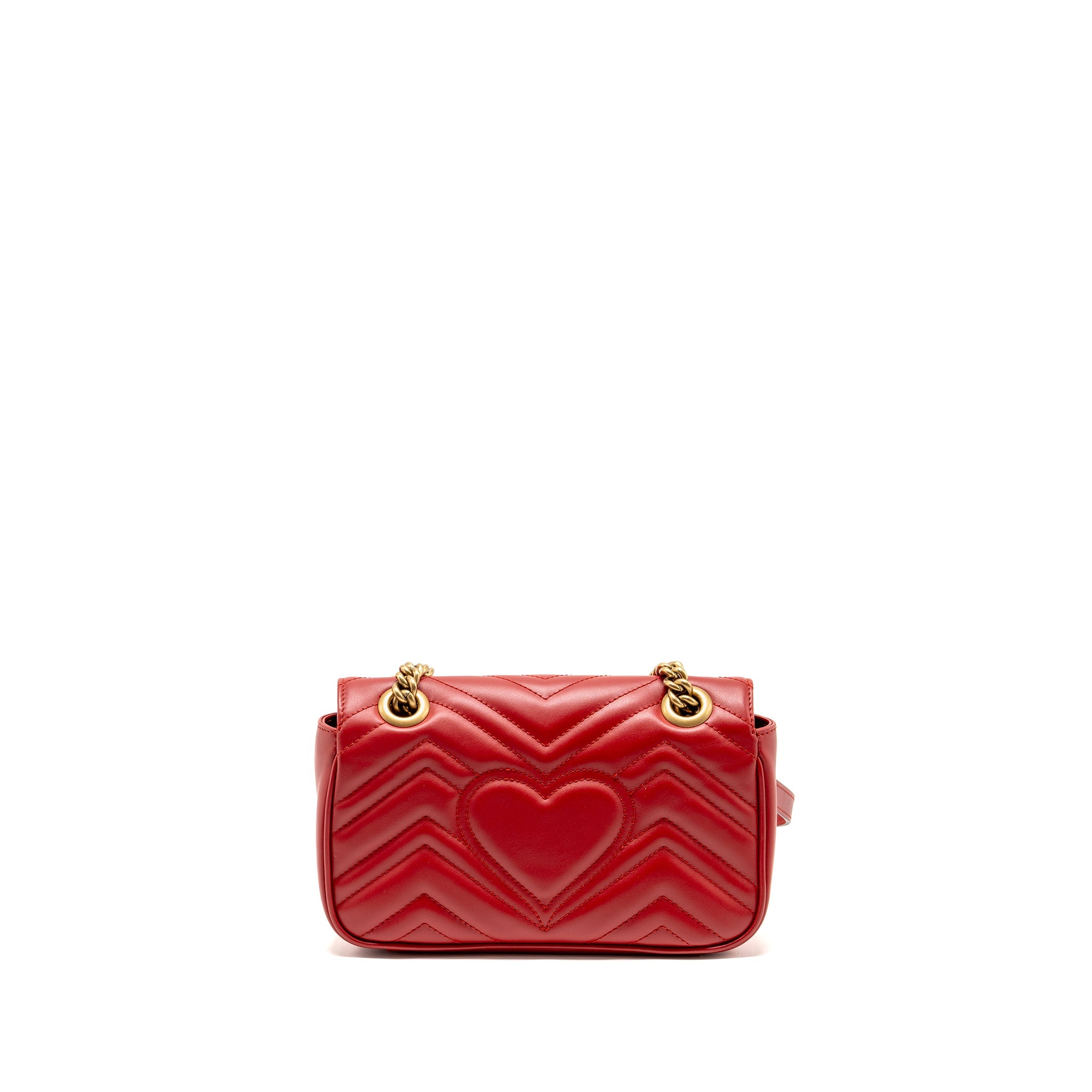 GUCCI SMALL GG MARMONT SHOULDER BAG CALFSKIN RED BRUSHED GHW