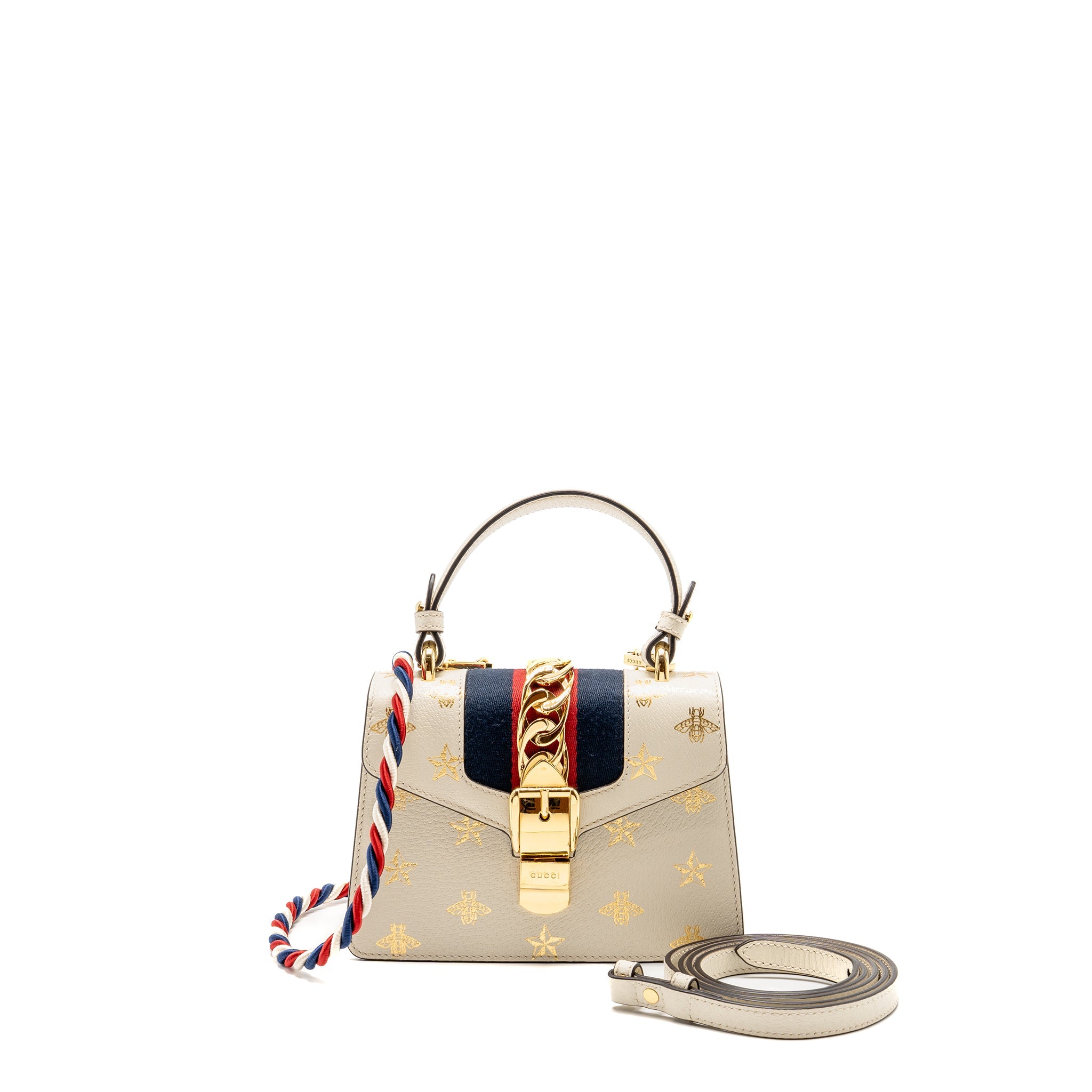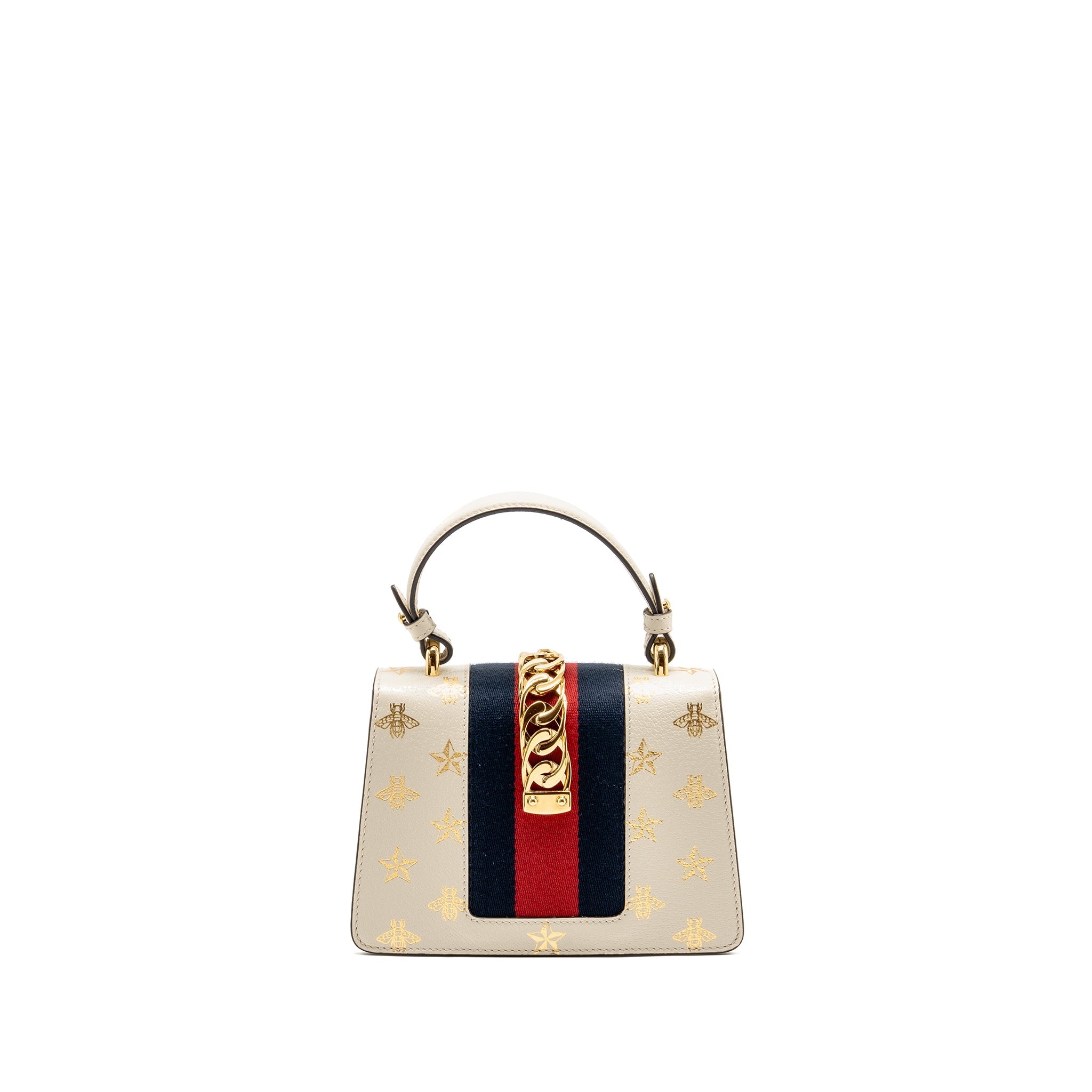 GUCCI MINI SYLVIE BEE STAR TOP HANDLE CALFSKIN WHITE/MULTICOLOUR GHW