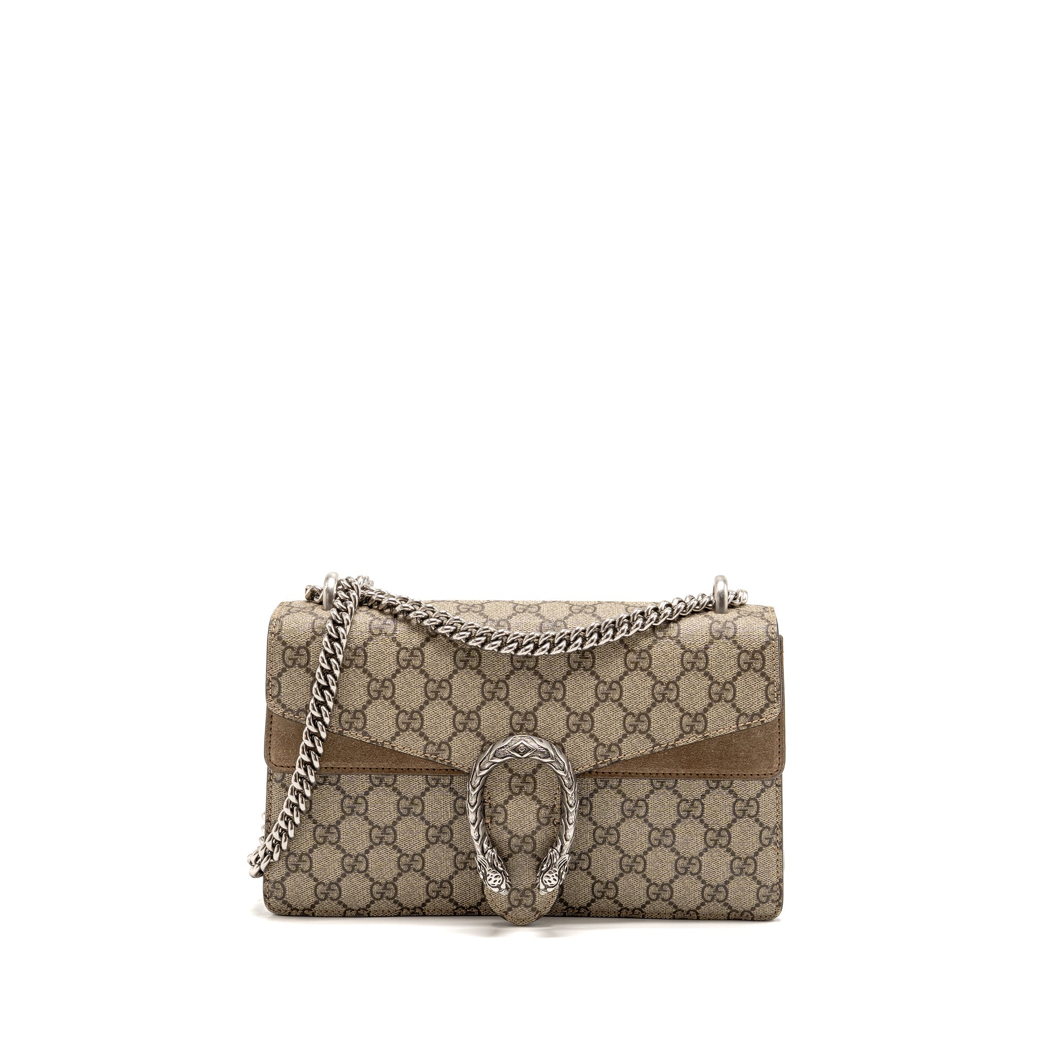 GUCCI SMALL DIONYSUS SHOULDER BAG GG SUPREME CANVAS/ SUEDE BROWN SHW