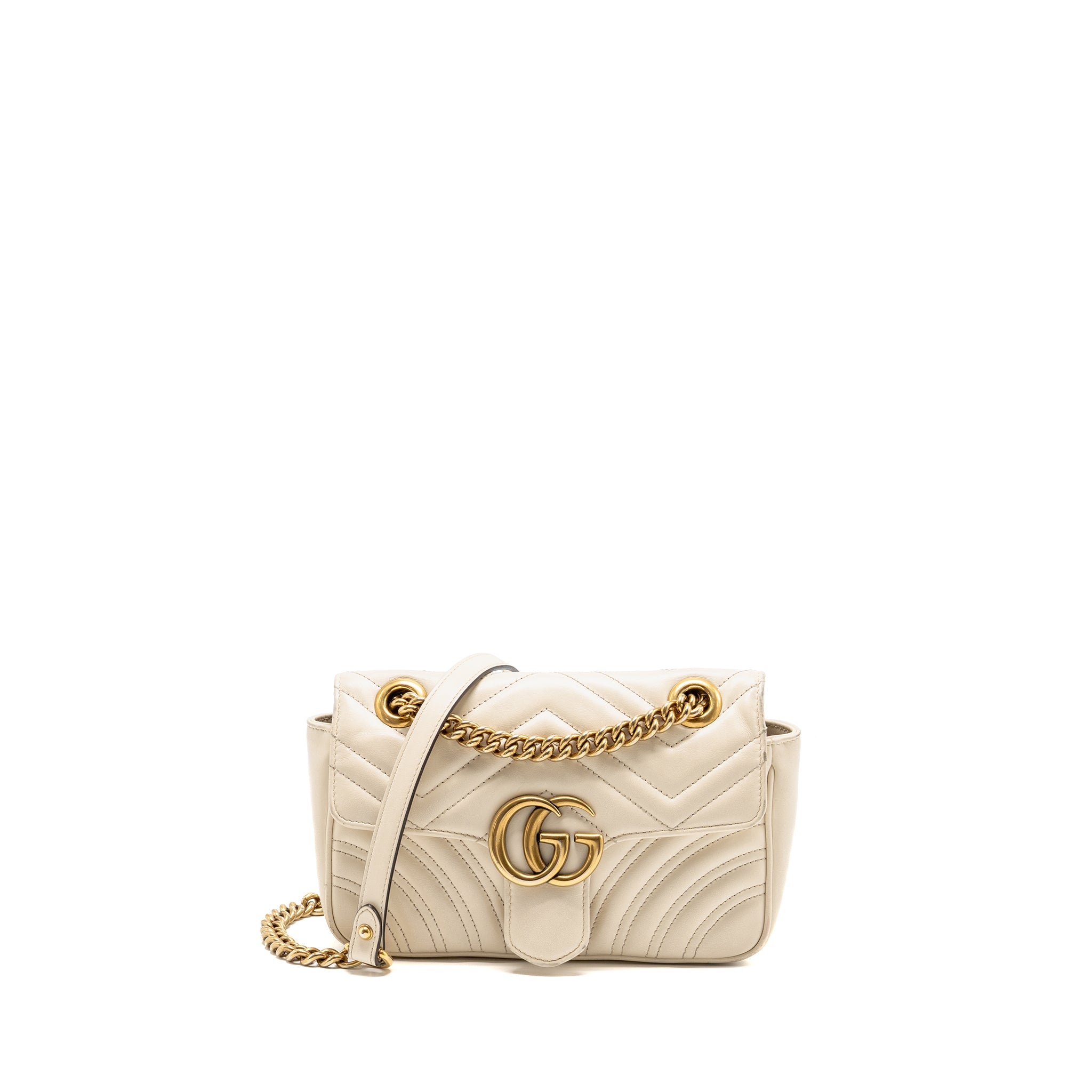 GUCCI GG MARMONT MINI BAG CHEVRON LEATHER BEIGE GHW