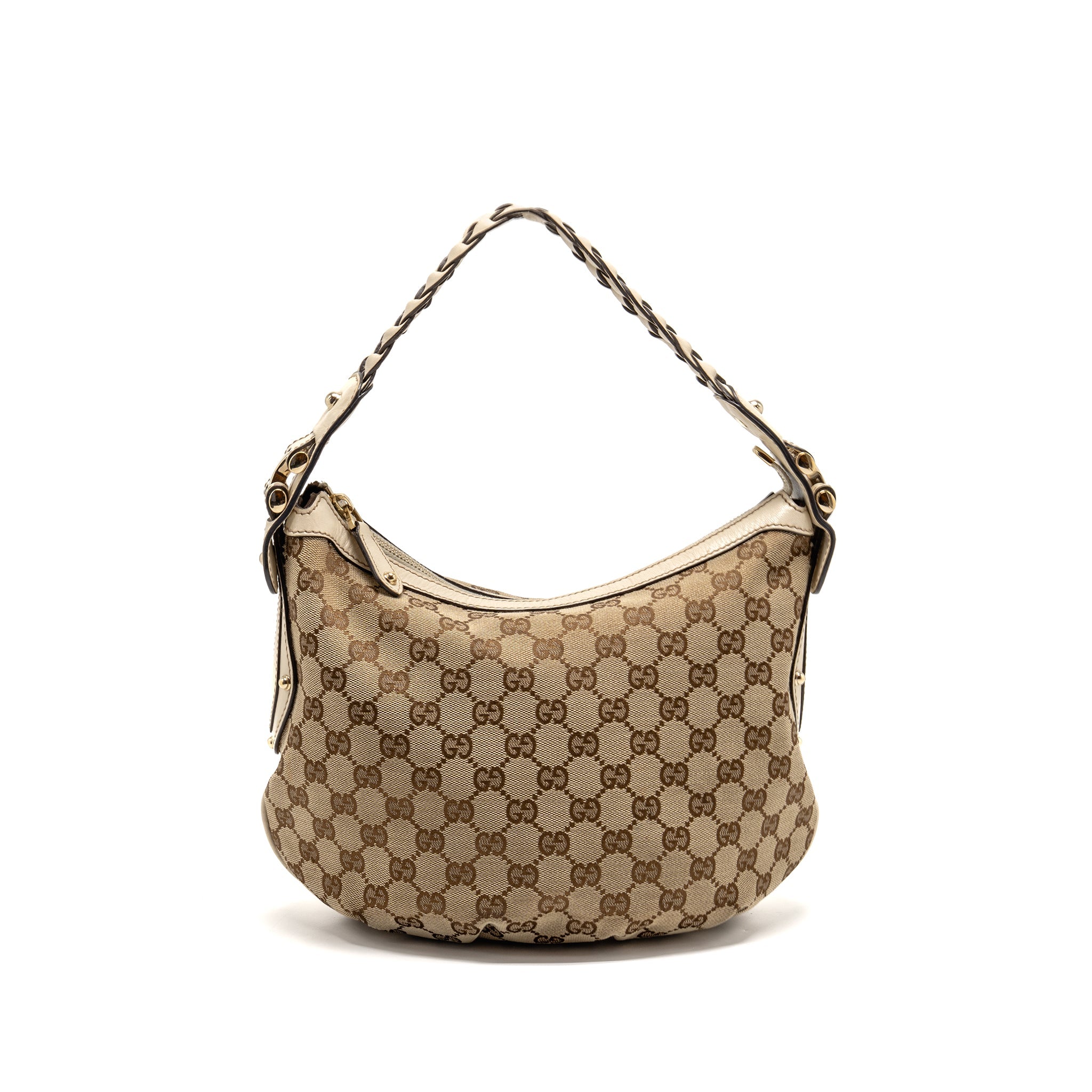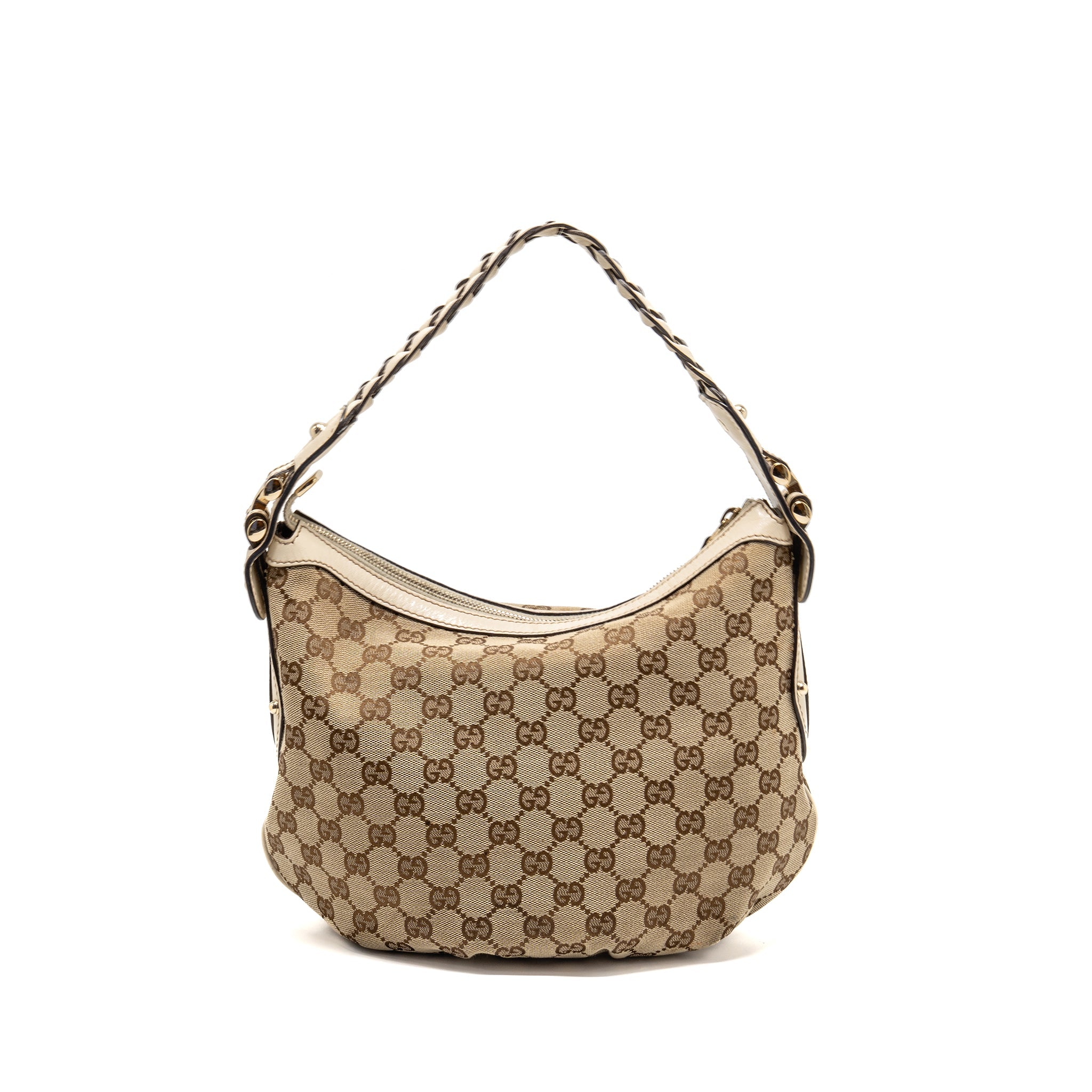 GUCCI PELHAM HOBO BAG GG CANVAS / LEATHER BEIGE/WHITE LGHW