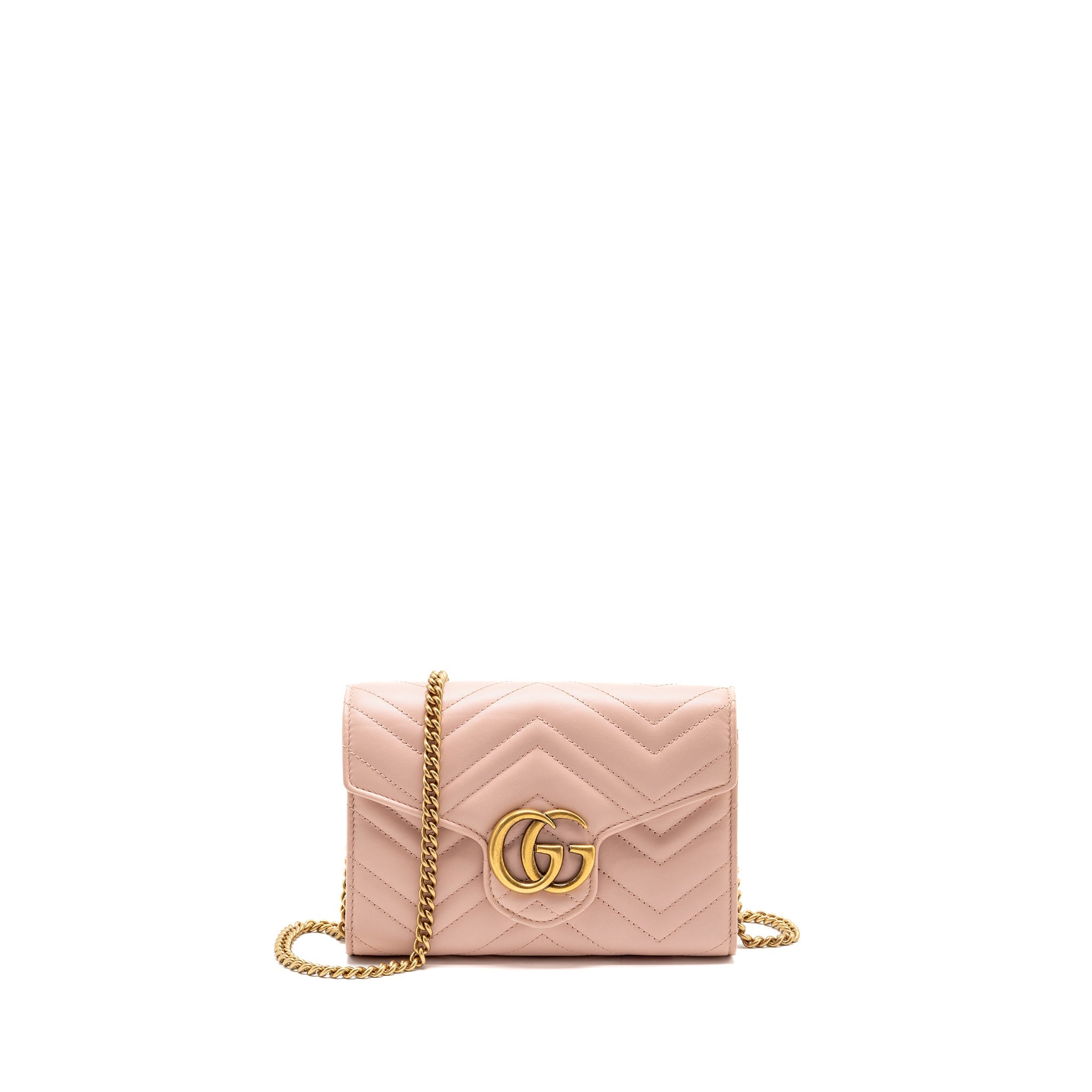 GUCCI GG MARMONT WALLET ON CHAIN CALFSKIN PINK GHW