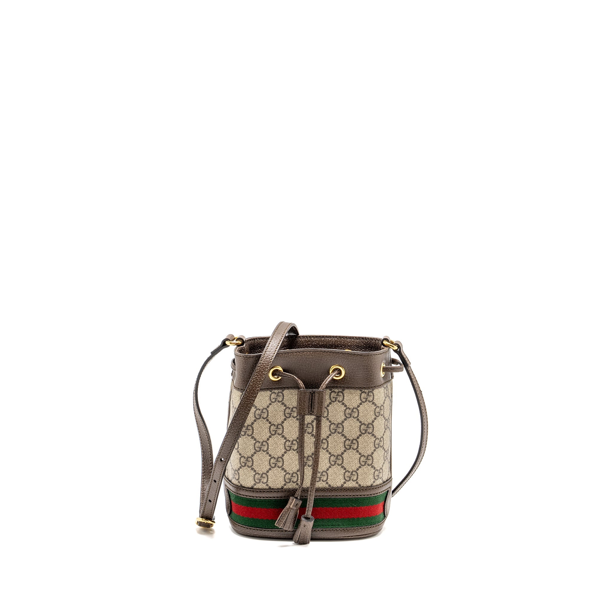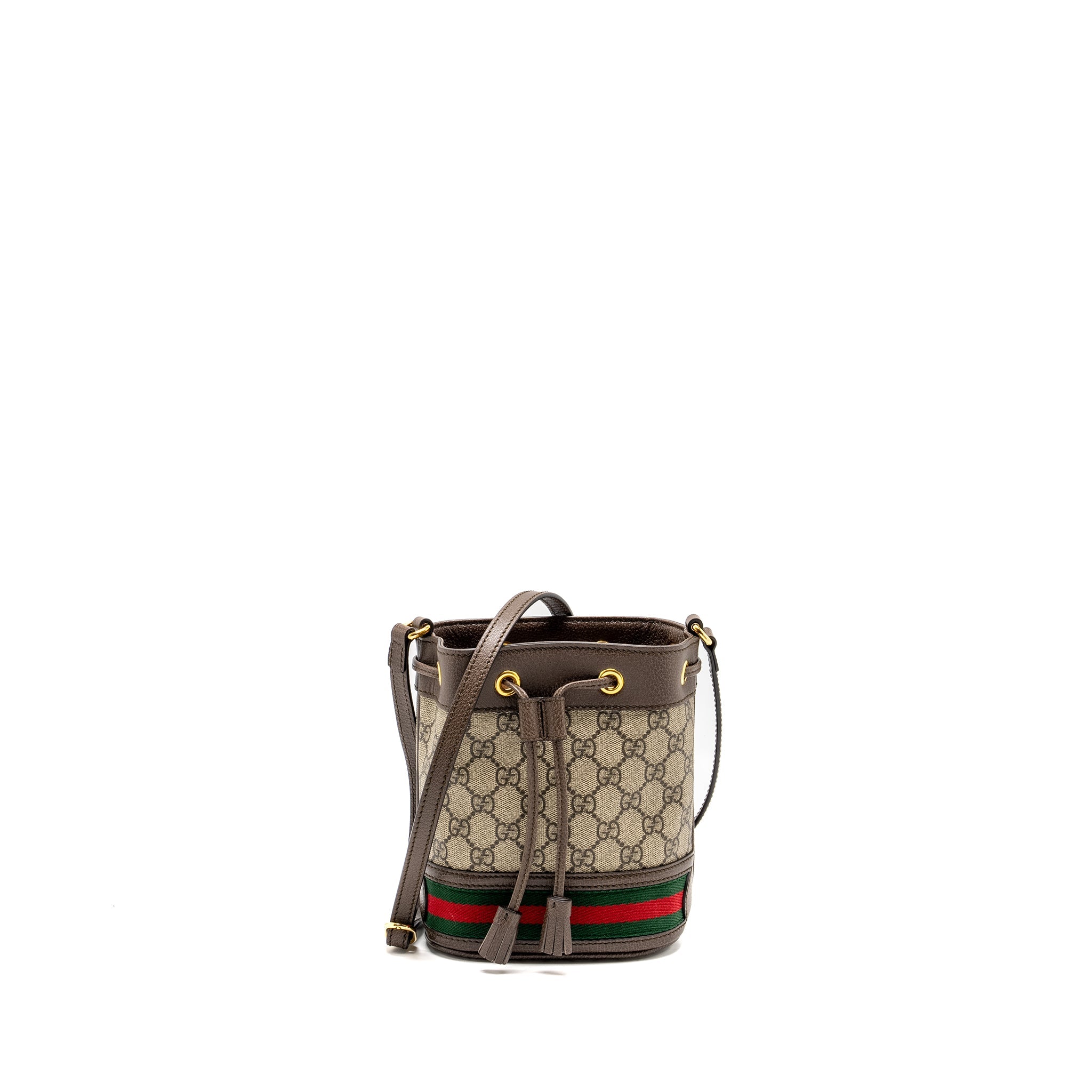 GUCCI OPHIDA MINI BUCKET BAG GG SUPREME CANVAS BEIGE / EBONY GHW